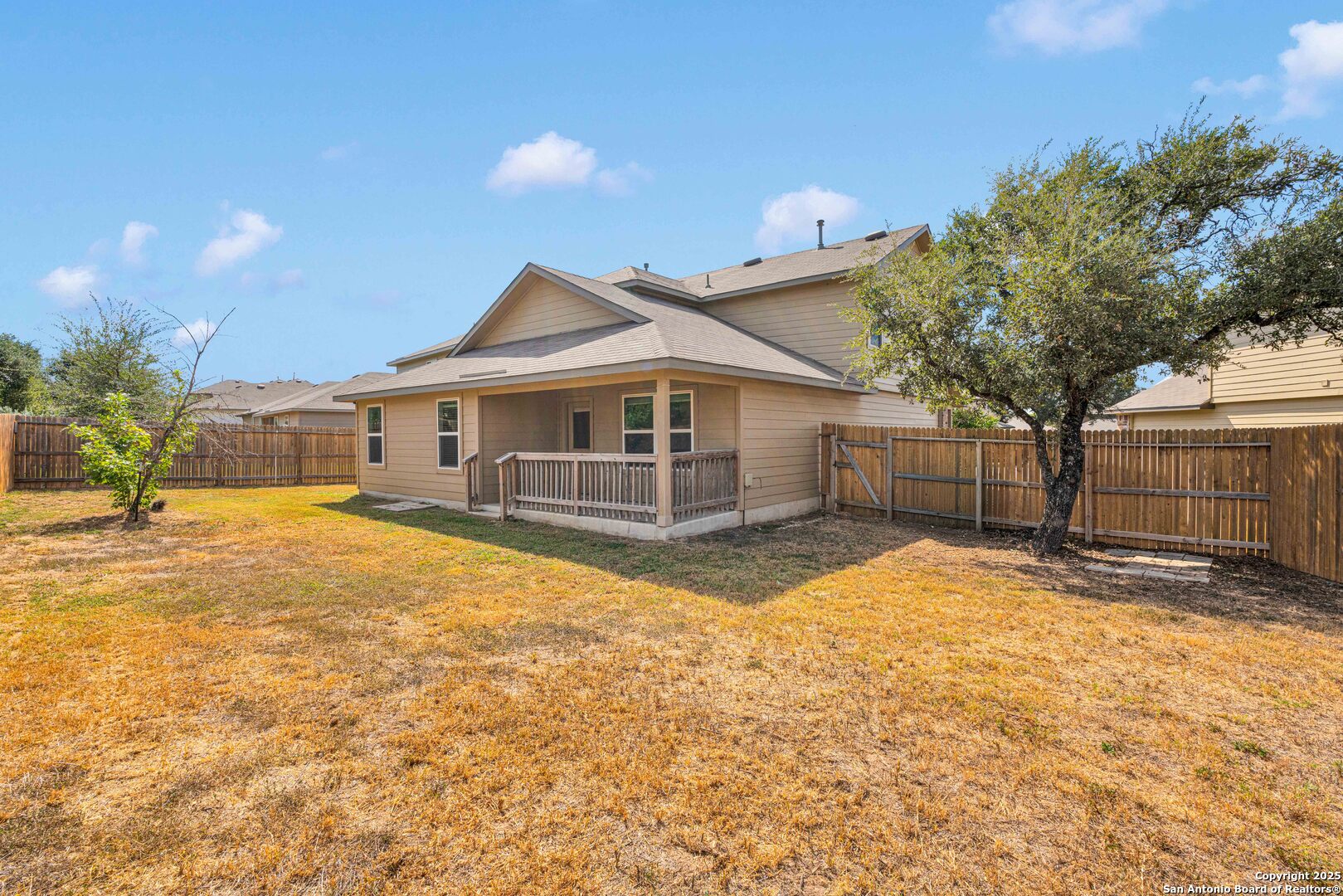 Welcome to a beautifully maintained home nestled in the sought-after Alamo Ranch community! This spacious residence offers modern comfort and timeless appeal with an open-concept floor plan, high ceilings, and abundant natural light throughout. The kitchen features granite countertops, stainless steel appliances, and a generous island perfect for casual dining or entertaining. The primary suite provides a serene retreat with a spa-like bath and walk-in closet. Step outside to a covered patio overlooking a private backyard - ideal for relaxing or hosting gatherings. Conveniently located near top-rated schools, shopping, dining, and major highways for easy commuting. Don't miss the chance to call this move-in-ready gem your new home!