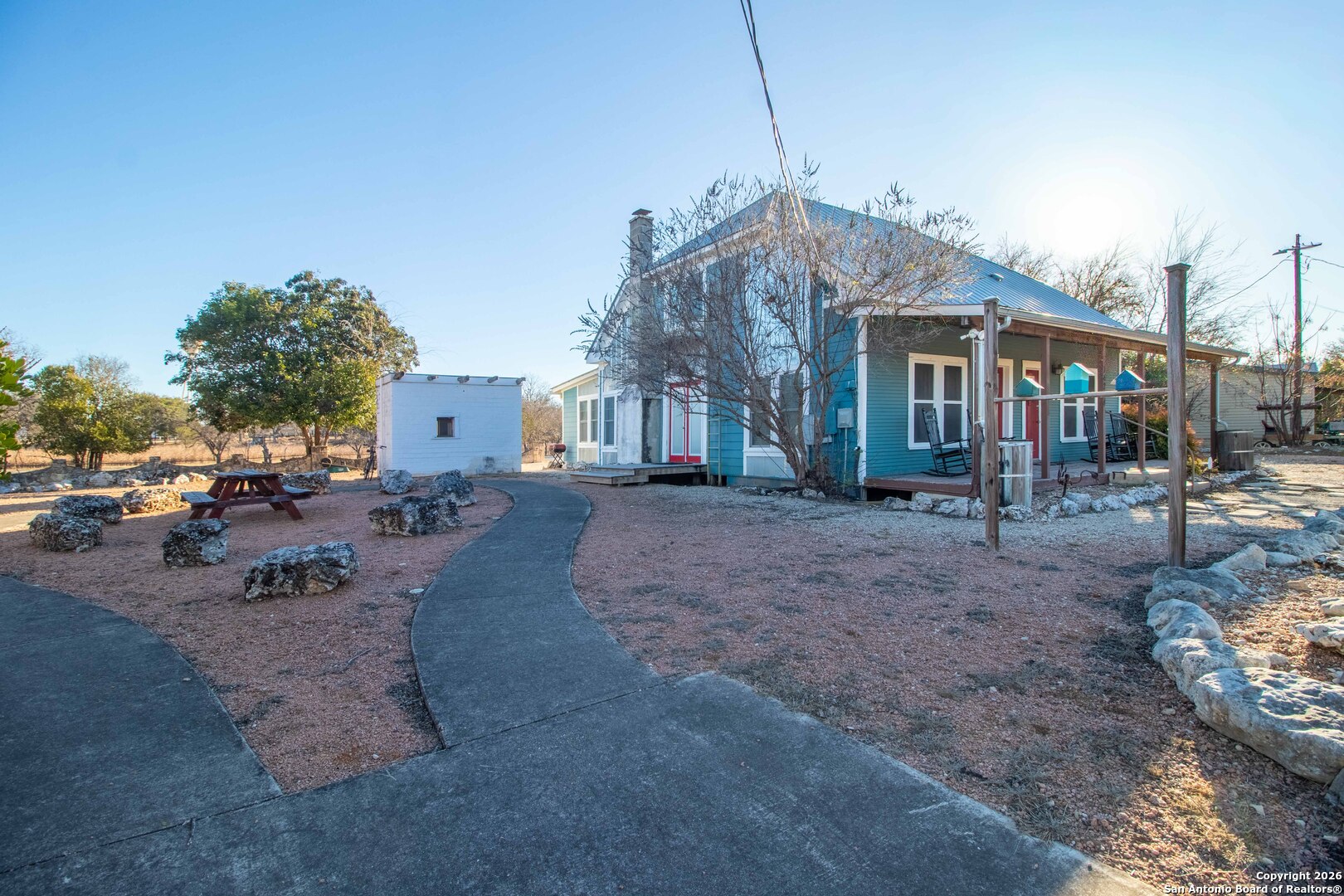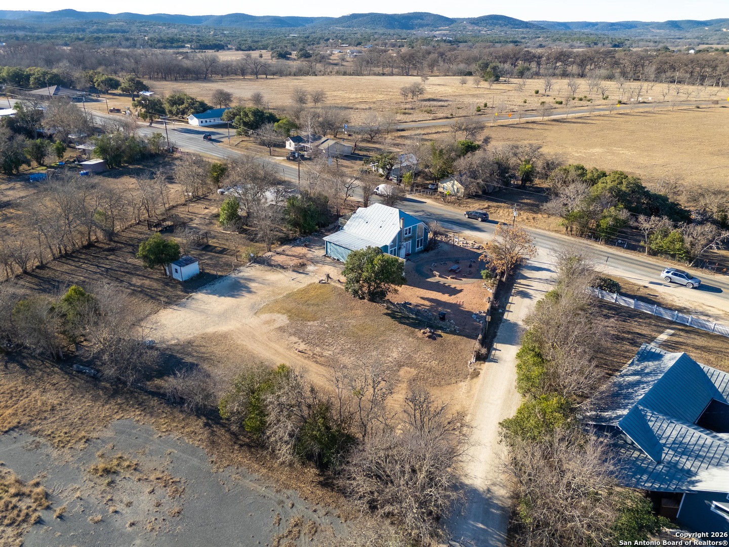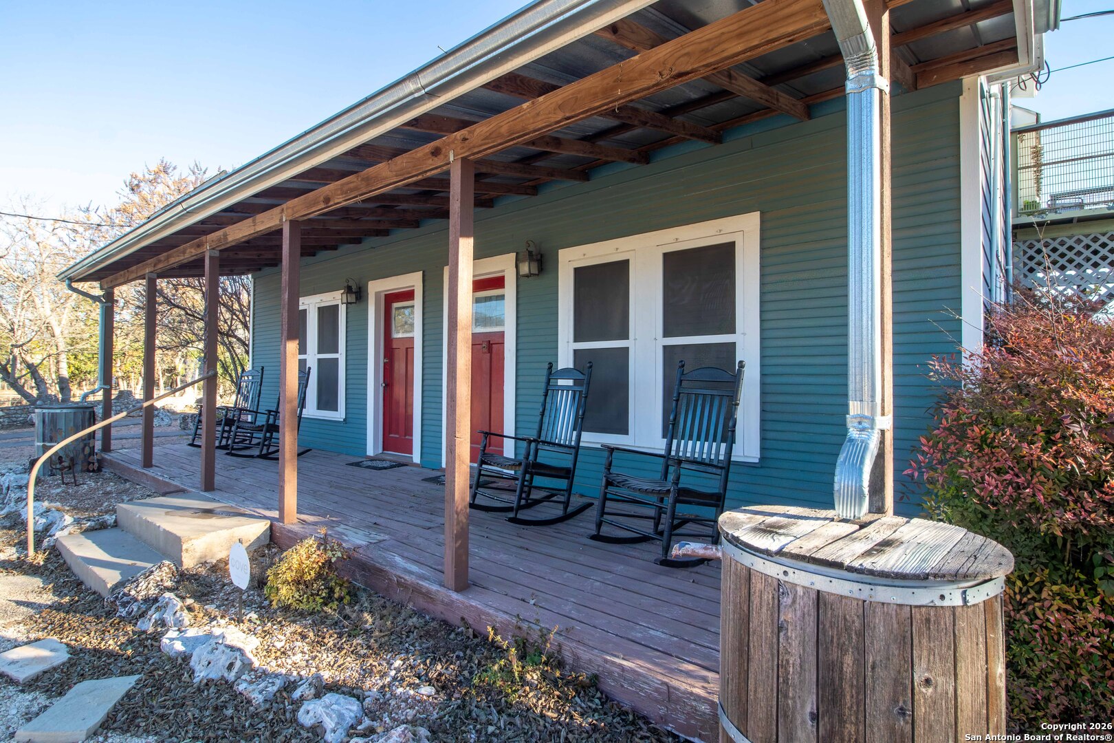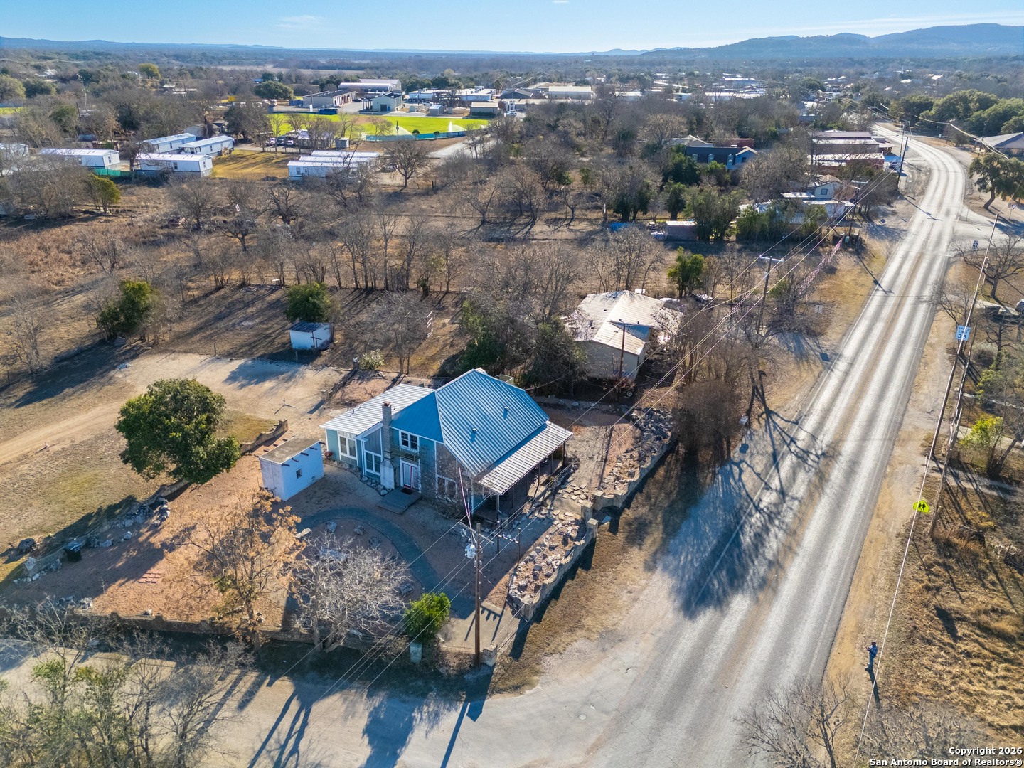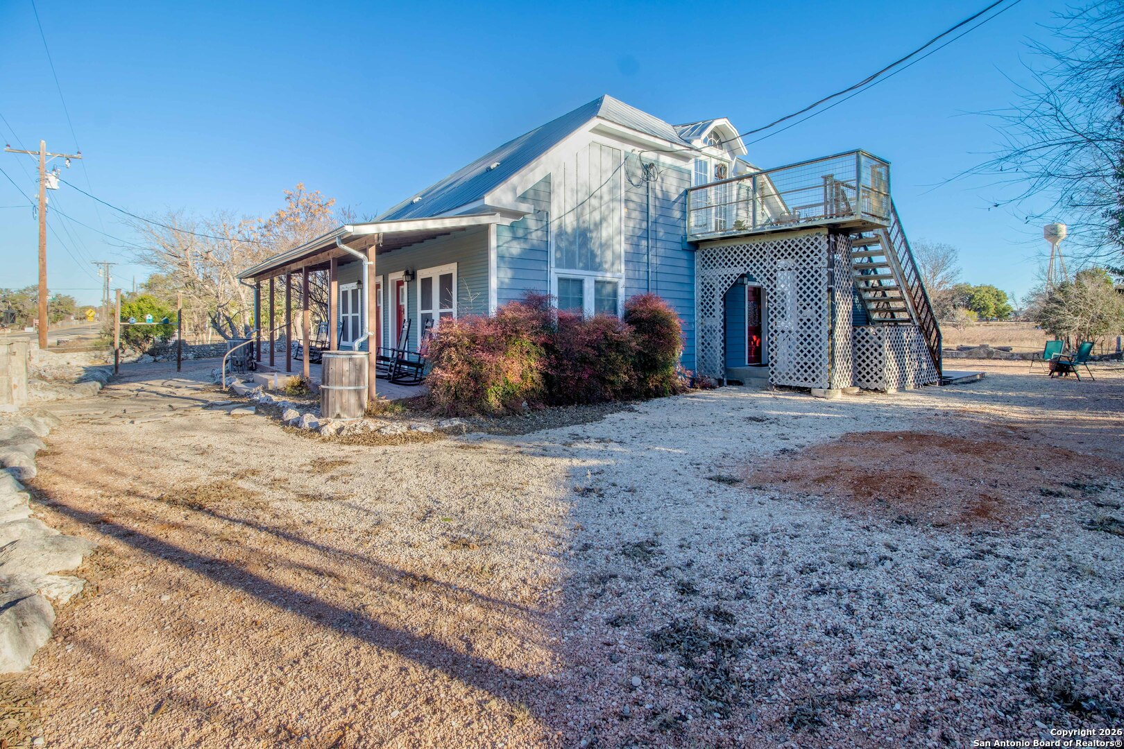 Turn-of-the-century style home in Medina, Texas, offering exceptional flexibility for residential living, income production, or commercial use. Set on .559 acres in the heart of the Hill Country, this 2,486 sq. ft. property features a 4 bedroom, 2 bath main residence plus a separate upstairs 1 bedroom, 1 bath apartment. Currently operating as a successful short-term rental, the layout also supports easy conversion into multiple income streams: the downstairs can be reconfigured into two 2-bedroom, 1-bath units, while the upstairs apartment is already independently leased. Each space can accommodate its own patio or deck, with a shared laundry room located in a separate building on site. With frontage on Highway 16 near the FM 337 intersection, the property is well positioned for business use, rental investment, or a unique live-work setup. Outdoor features include a covered front deck, side patio with Trex decking, and low-maintenance crushed granite landscaping. The expansive backyard offers room to add RV rental sites, a workshop, or space for animals, with an existing pad already in place and electric run to it. Inside the main level, high ceilings, wood floors, French doors, recessed lighting, and multiple entry points create both charm and functionality. Bathrooms feature ceramic tile and glass-enclosed showers. An iron staircase leads to the upstairs apartment, where a landing patio captures open Hill Country views. The apartment includes vaulted ceilings, stainless steel appliances, and exposed stainless steel ductwork for a modern industrial touch. This is a rare opportunity to own a character-rich property with proven income history and strong potential for expansion, business use, or multi-unit rental in one of Medina's most visible and versatile locations.