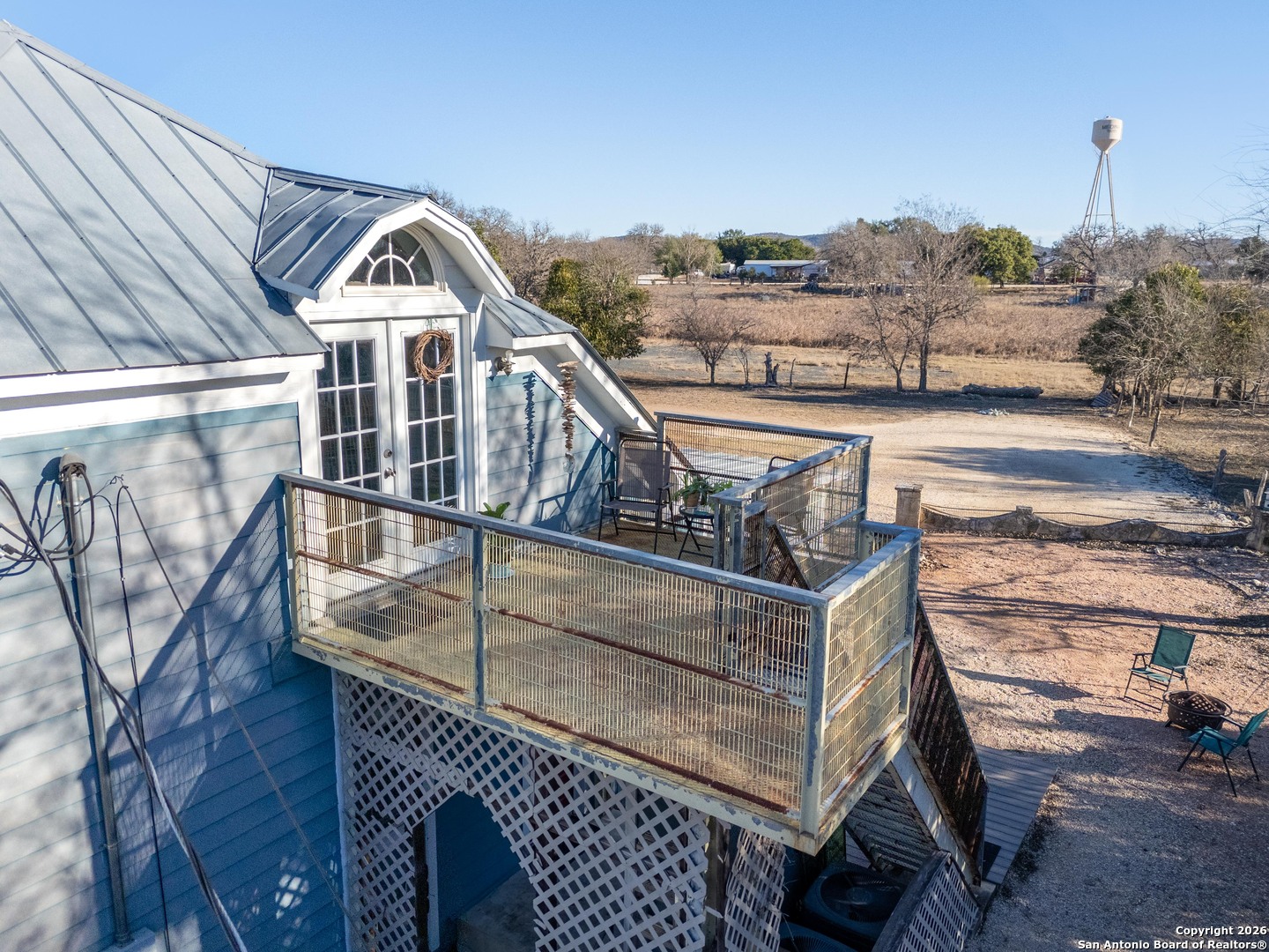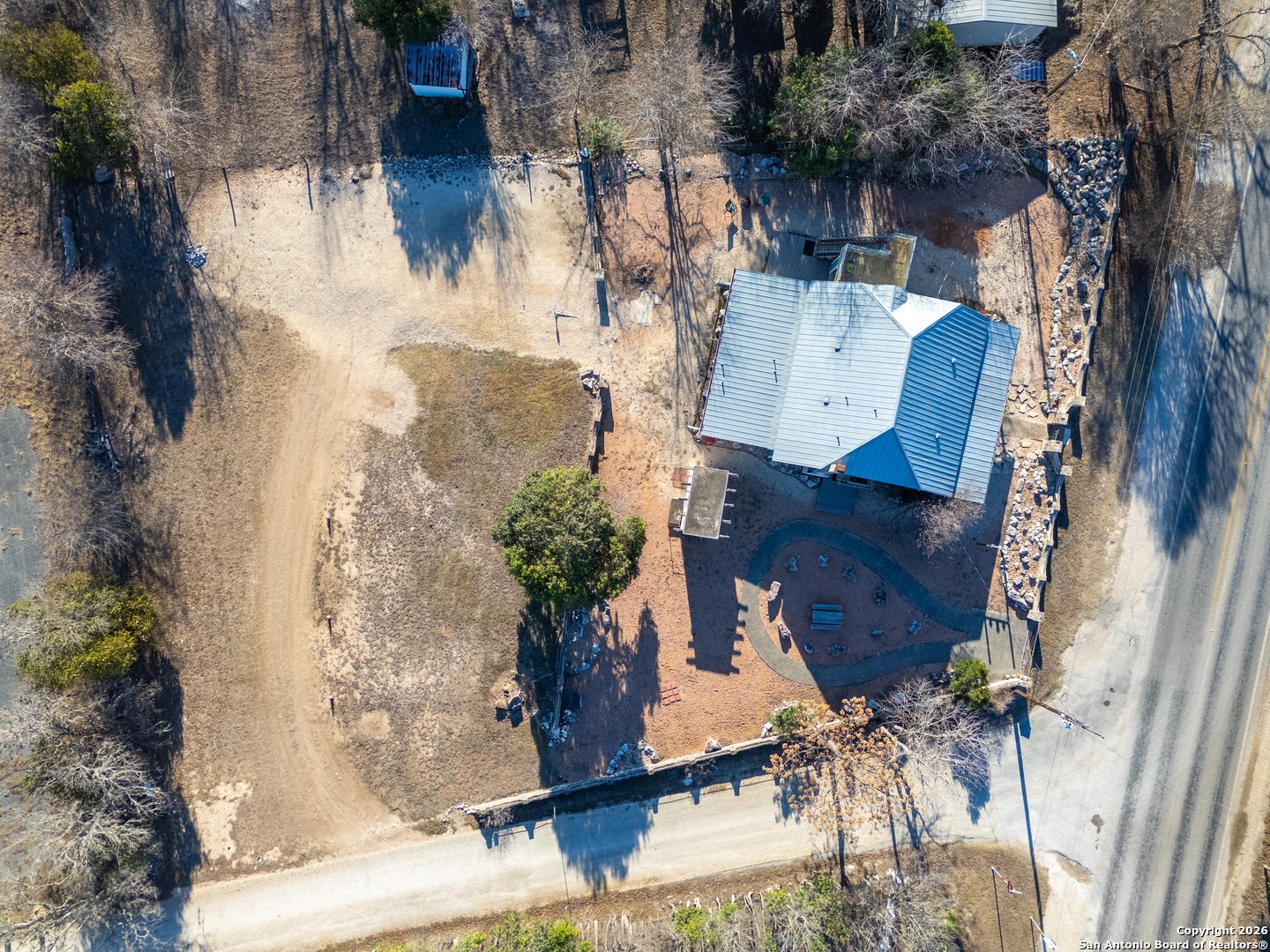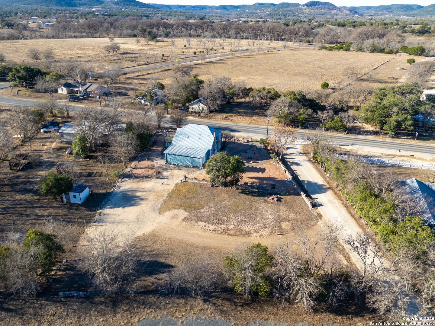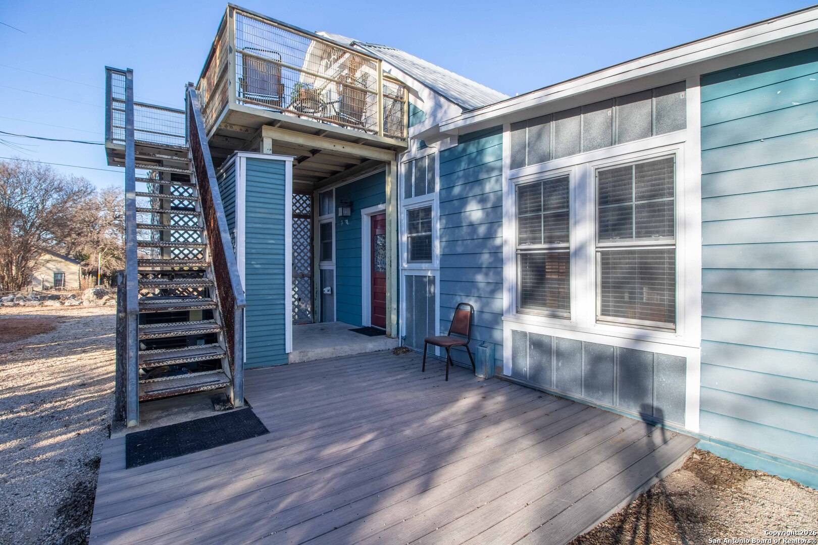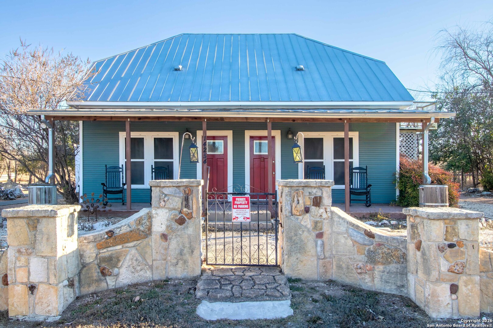 Turn-of-the-century style home in Medina, Texas, offering exceptional flexibility for residential living, income production, or commercial use. Set on .559 acres in the heart of the Hill Country, this 2,486 sq. ft. property features a 4 bedroom, 2 bath main residence plus a separate upstairs 1 bedroom, 1 bath apartment. Currently operating as a successful short-term rental, the layout also supports easy conversion into multiple income streams: the downstairs can be reconfigured into two 2-bedroom, 1-bath units, while the upstairs apartment is already independently leased. Each space can accommodate its own patio or deck, with a shared laundry room located in a separate building on site. With frontage on Highway 16 near the FM 337 intersection, the property is well positioned for business use, rental investment, or a unique live-work setup. Outdoor features include a covered front deck, side patio with Trex decking, and low-maintenance crushed granite landscaping. The expansive backyard offers room to add RV rental sites, a workshop, or space for animals, with an existing pad already in place and electric run to it. Inside the main level, high ceilings, wood floors, French doors, recessed lighting, and multiple entry points create both charm and functionality. Bathrooms feature ceramic tile and glass-enclosed showers. An iron staircase leads to the upstairs apartment, where a landing patio captures open Hill Country views. The apartment includes vaulted ceilings, stainless steel appliances, and exposed stainless steel ductwork for a modern industrial touch. This is a rare opportunity to own a character-rich property with proven income history and strong potential for expansion, business use, or multi-unit rental in one of Medina's most visible and versatile locations.