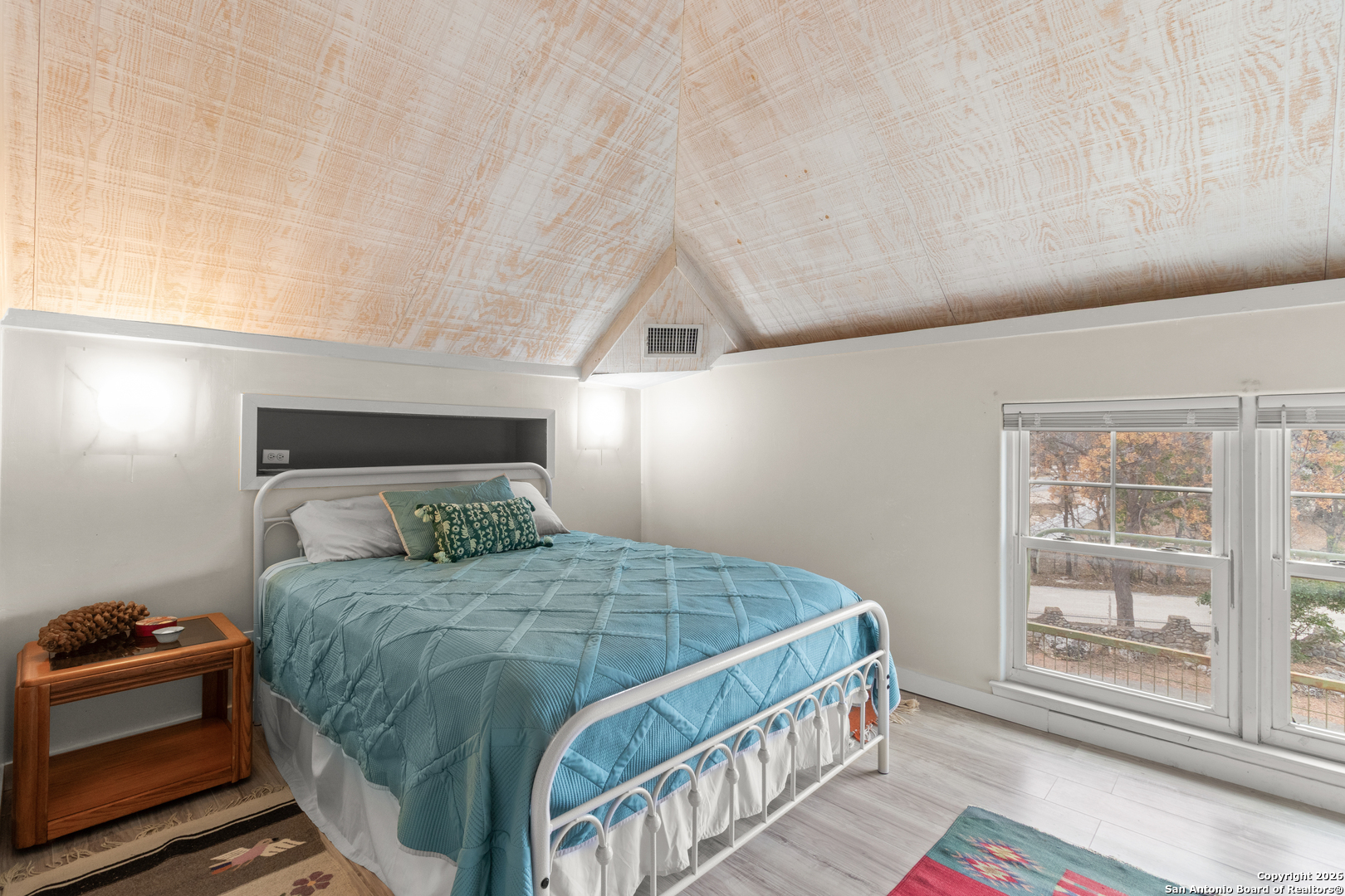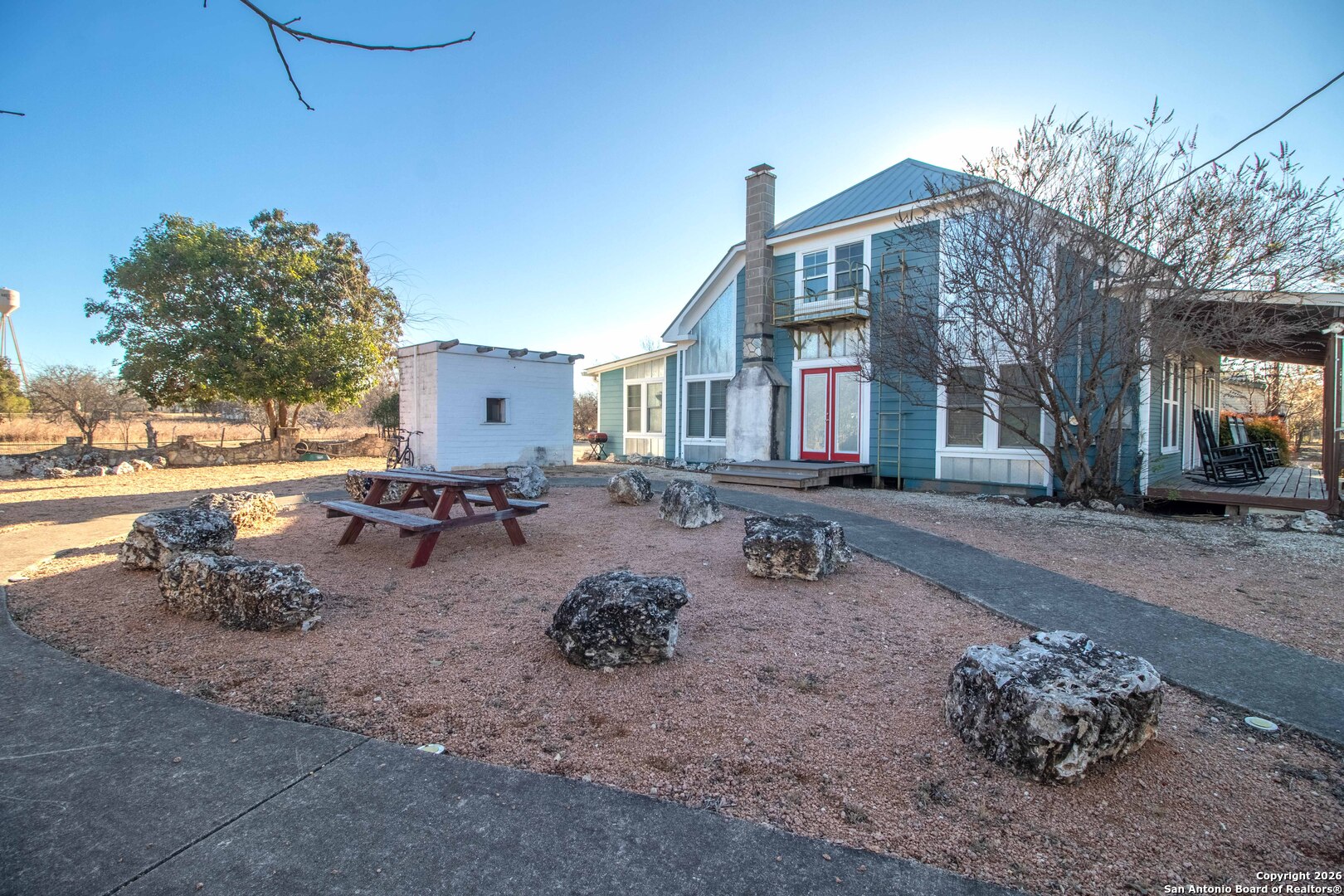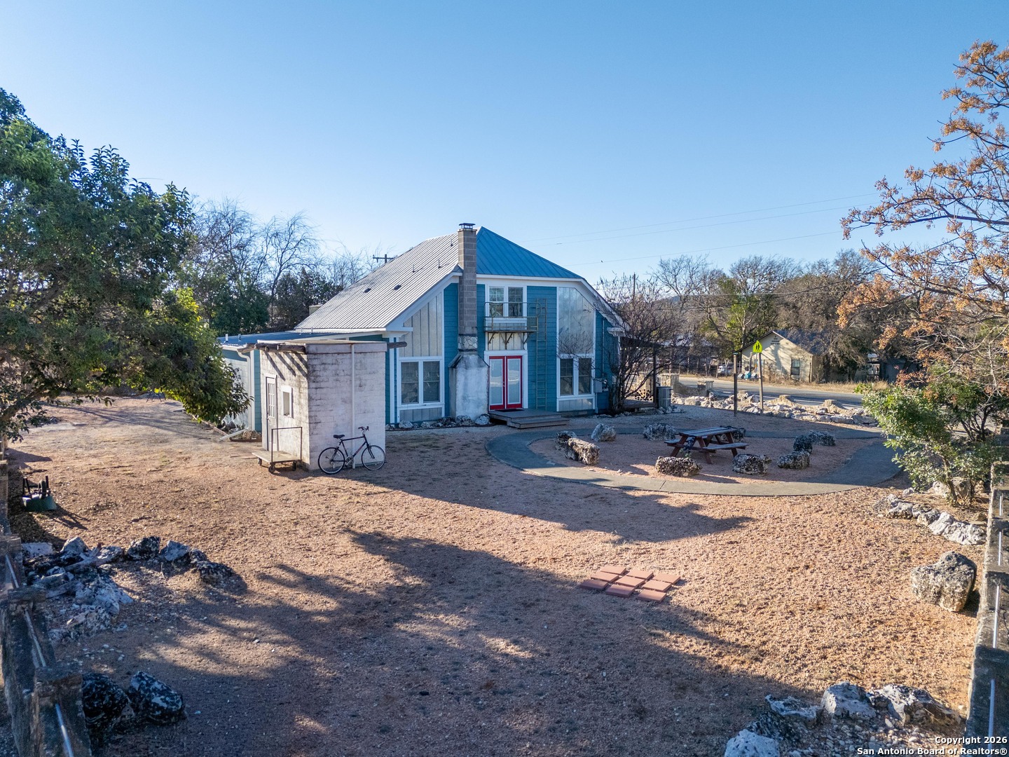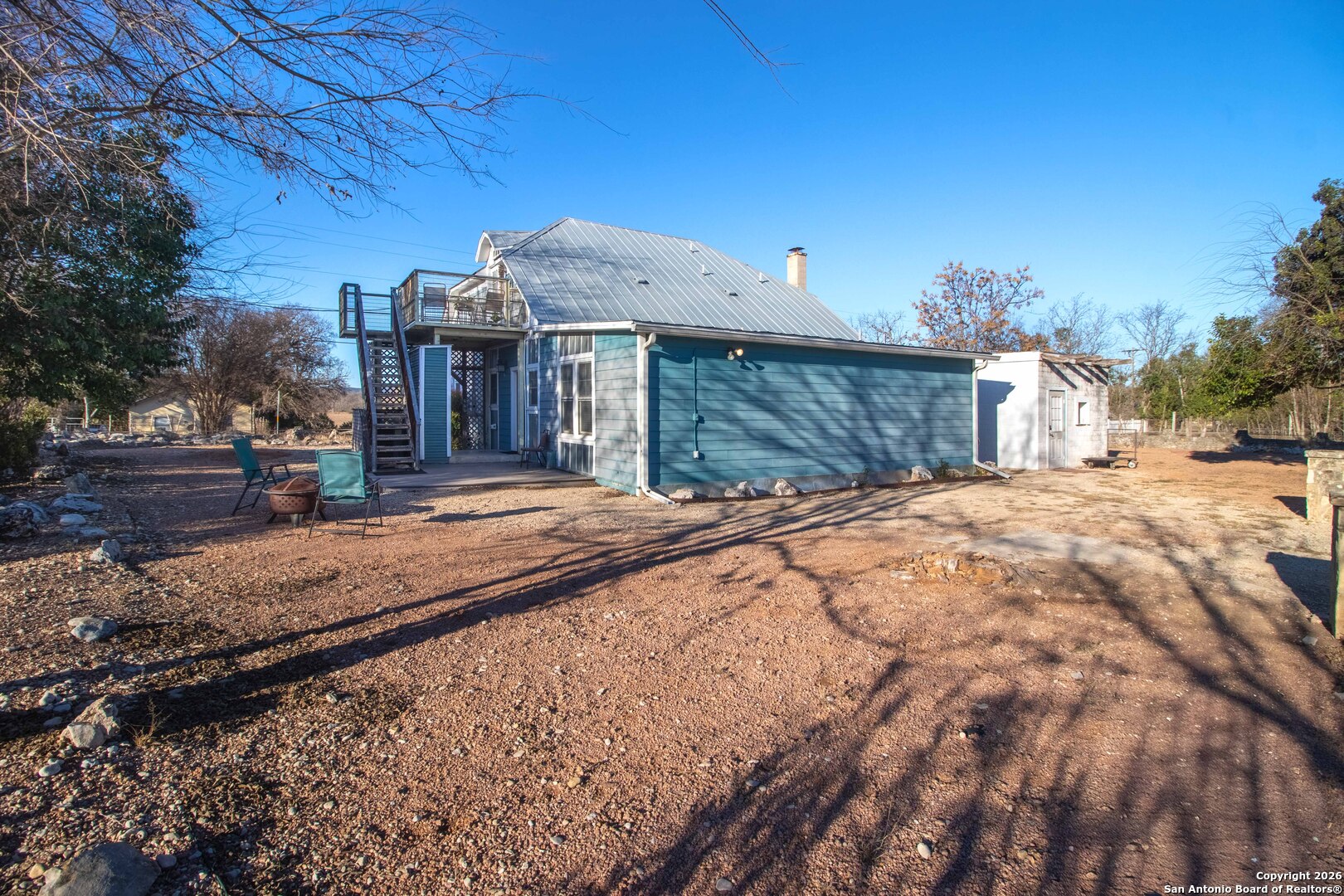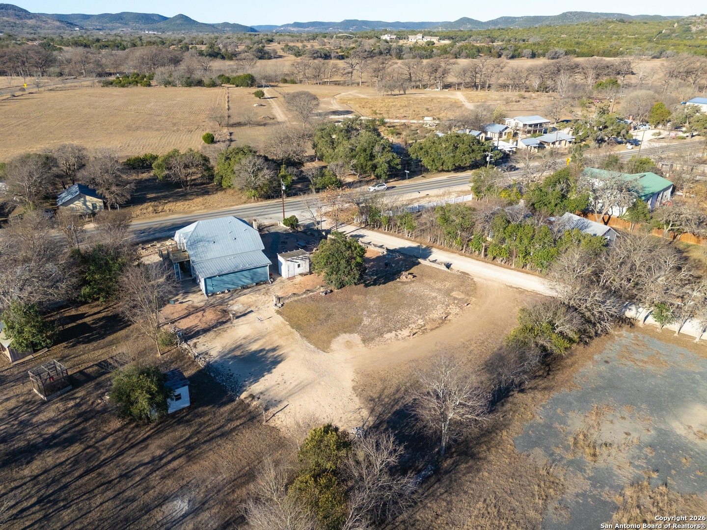 Turn-of-the-century style home in Medina, Texas, offering exceptional flexibility for residential living, income production, or commercial use. Set on .559 acres in the heart of the Hill Country, this 2,486 sq. ft. property features a 4 bedroom, 2 bath main residence plus a separate upstairs 1 bedroom, 1 bath apartment. Currently operating as a successful short-term rental, the layout also supports easy conversion into multiple income streams: the downstairs can be reconfigured into two 2-bedroom, 1-bath units, while the upstairs apartment is already independently leased. Each space can accommodate its own patio or deck, with a shared laundry room located in a separate building on site. With frontage on Highway 16 near the FM 337 intersection, the property is well positioned for business use, rental investment, or a unique live-work setup. Outdoor features include a covered front deck, side patio with Trex decking, and low-maintenance crushed granite landscaping. The expansive backyard offers room to add RV rental sites, a workshop, or space for animals, with an existing pad already in place and electric run to it. Inside the main level, high ceilings, wood floors, French doors, recessed lighting, and multiple entry points create both charm and functionality. Bathrooms feature ceramic tile and glass-enclosed showers. An iron staircase leads to the upstairs apartment, where a landing patio captures open Hill Country views. The apartment includes vaulted ceilings, stainless steel appliances, and exposed stainless steel ductwork for a modern industrial touch. This is a rare opportunity to own a character-rich property with proven income history and strong potential for expansion, business use, or multi-unit rental in one of Medina's most visible and versatile locations.