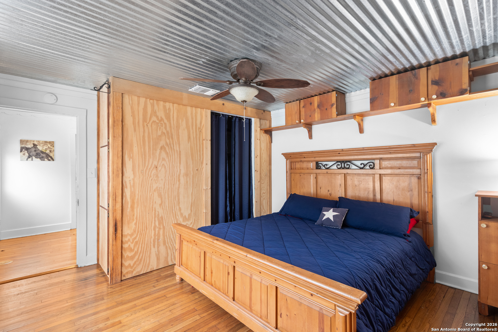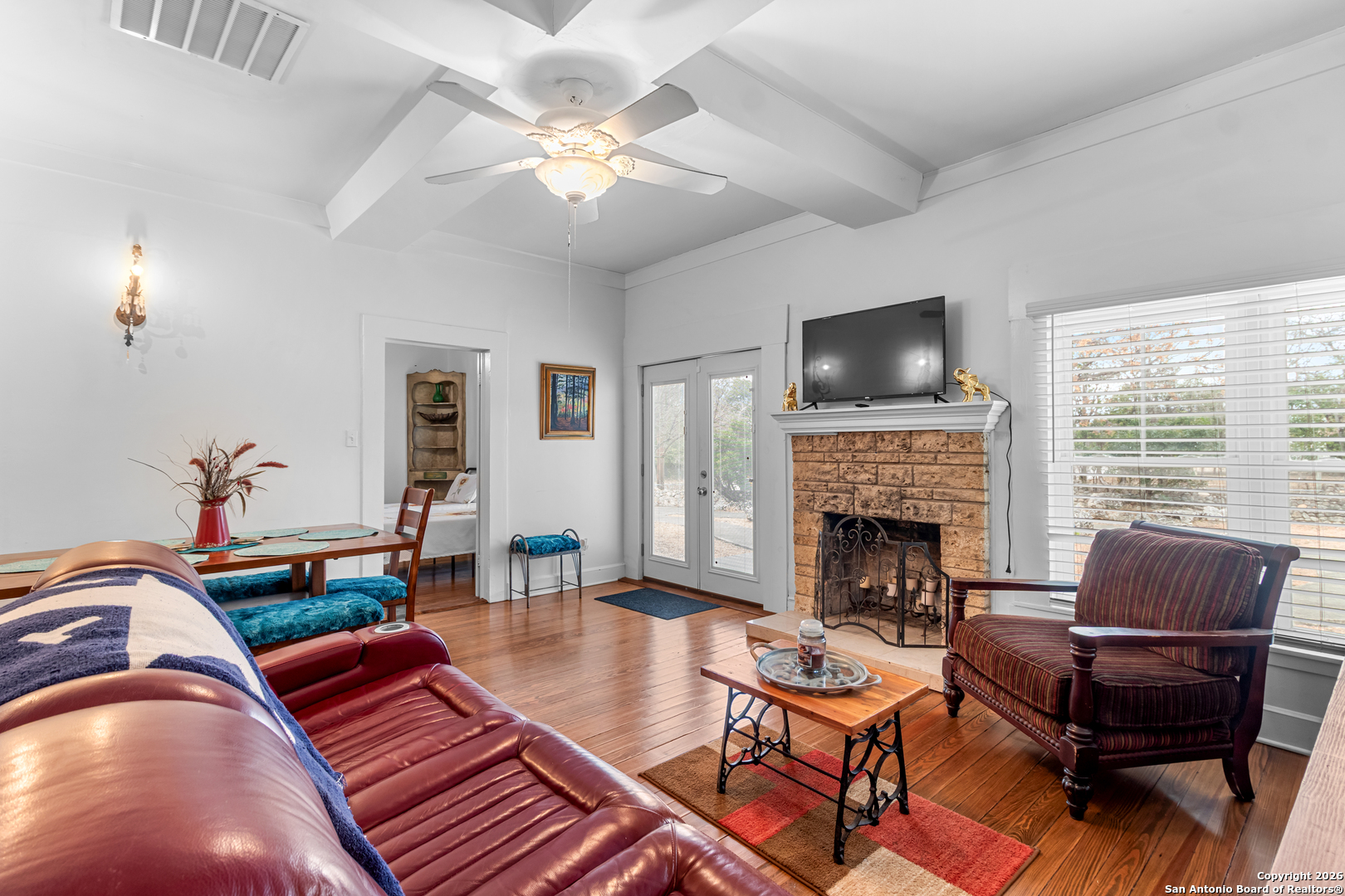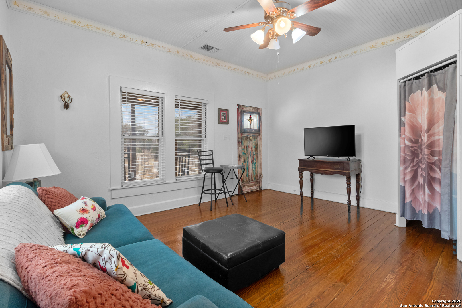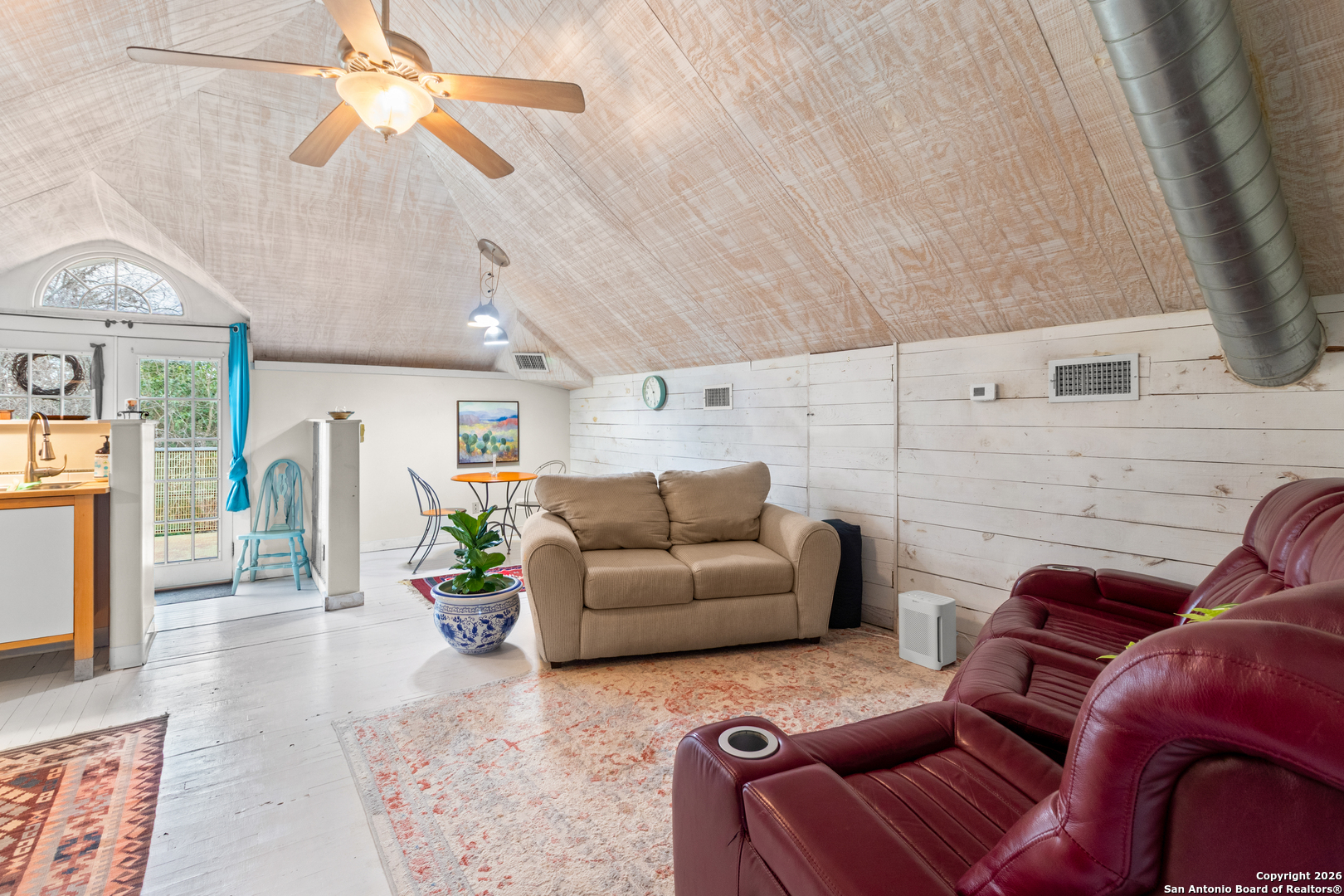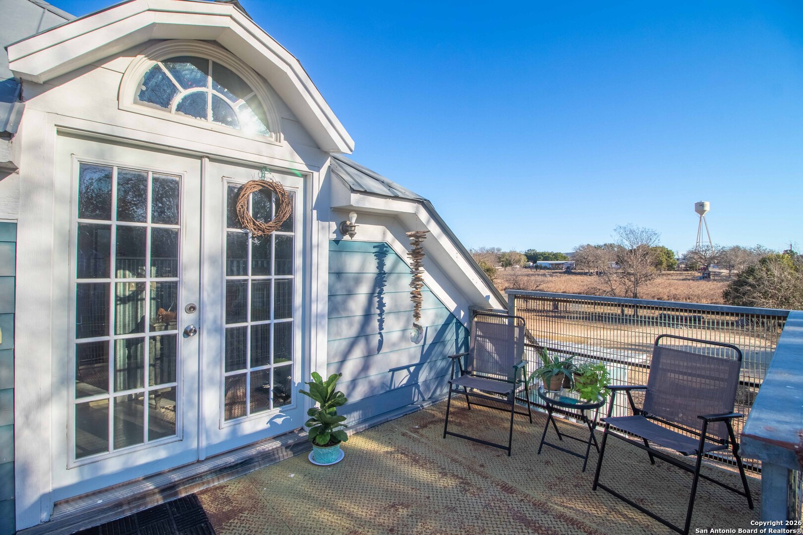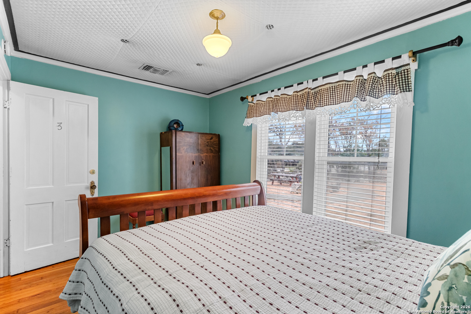 Turn-of-the-century style home in Medina, Texas, offering exceptional flexibility for residential living, income production, or commercial use. Set on .559 acres in the heart of the Hill Country, this 2,486 sq. ft. property features a 4 bedroom, 2 bath main residence plus a separate upstairs 1 bedroom, 1 bath apartment. Currently operating as a successful short-term rental, the layout also supports easy conversion into multiple income streams: the downstairs can be reconfigured into two 2-bedroom, 1-bath units, while the upstairs apartment is already independently leased. Each space can accommodate its own patio or deck, with a shared laundry room located in a separate building on site. With frontage on Highway 16 near the FM 337 intersection, the property is well positioned for business use, rental investment, or a unique live-work setup. Outdoor features include a covered front deck, side patio with Trex decking, and low-maintenance crushed granite landscaping. The expansive backyard offers room to add RV rental sites, a workshop, or space for animals, with an existing pad already in place and electric run to it. Inside the main level, high ceilings, wood floors, French doors, recessed lighting, and multiple entry points create both charm and functionality. Bathrooms feature ceramic tile and glass-enclosed showers. An iron staircase leads to the upstairs apartment, where a landing patio captures open Hill Country views. The apartment includes vaulted ceilings, stainless steel appliances, and exposed stainless steel ductwork for a modern industrial touch. This is a rare opportunity to own a character-rich property with proven income history and strong potential for expansion, business use, or multi-unit rental in one of Medina's most visible and versatile locations.