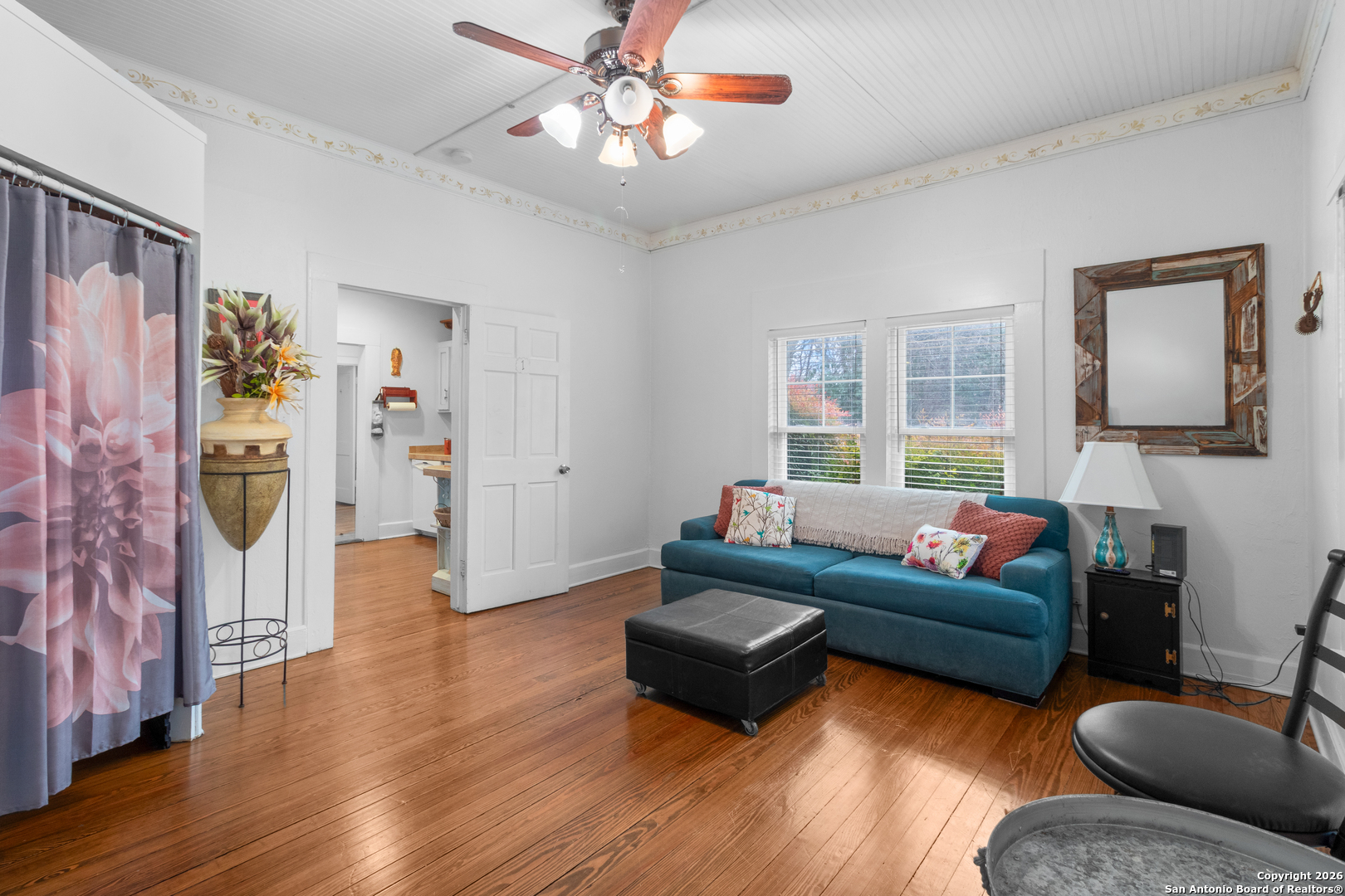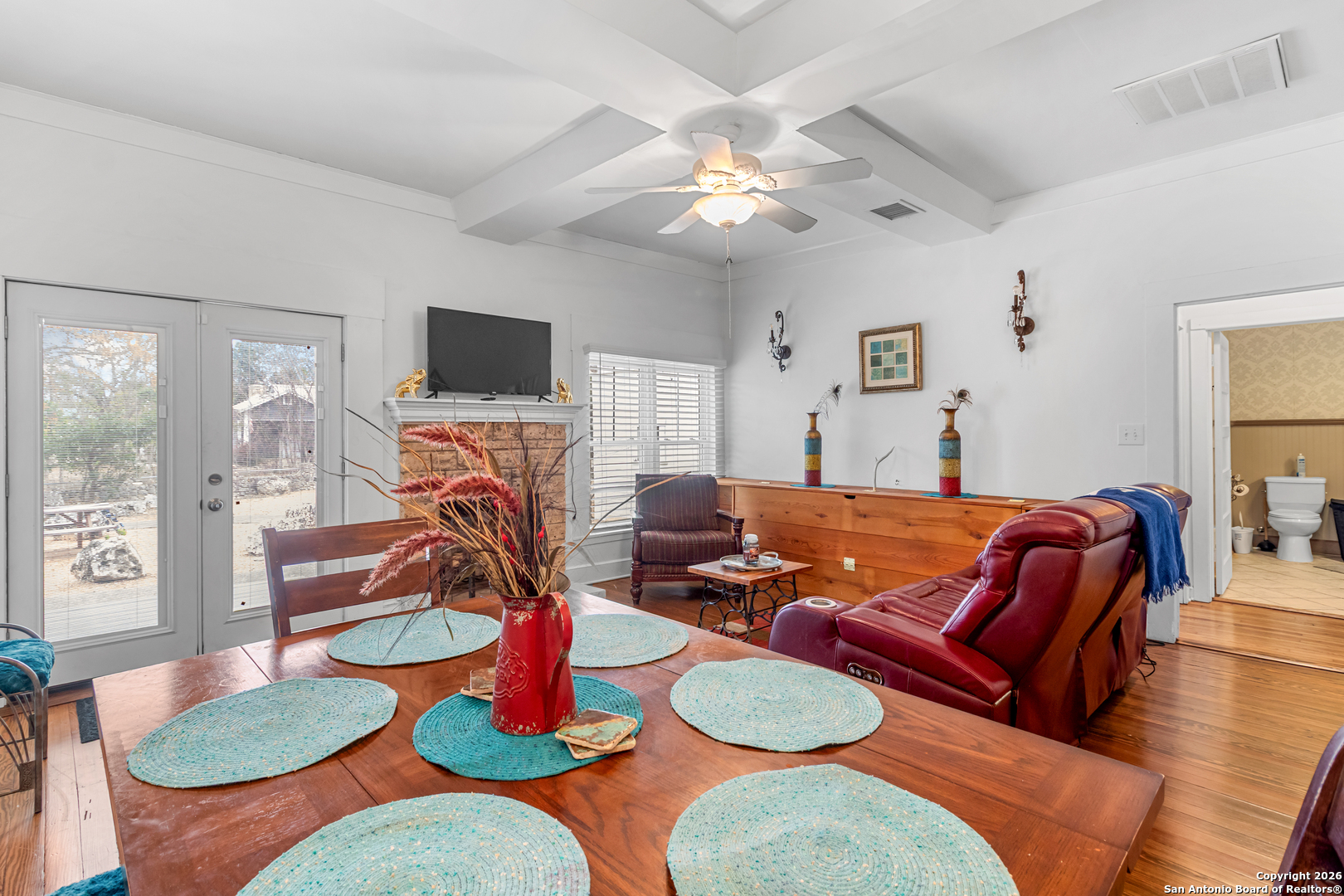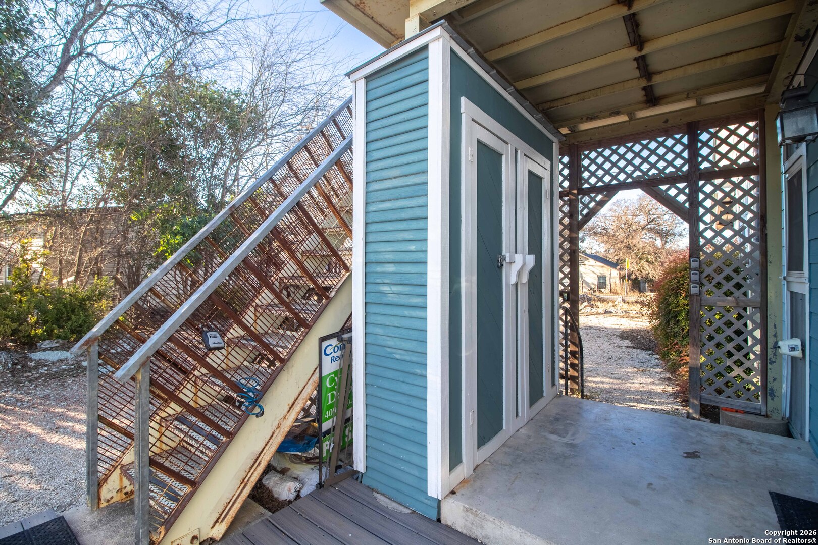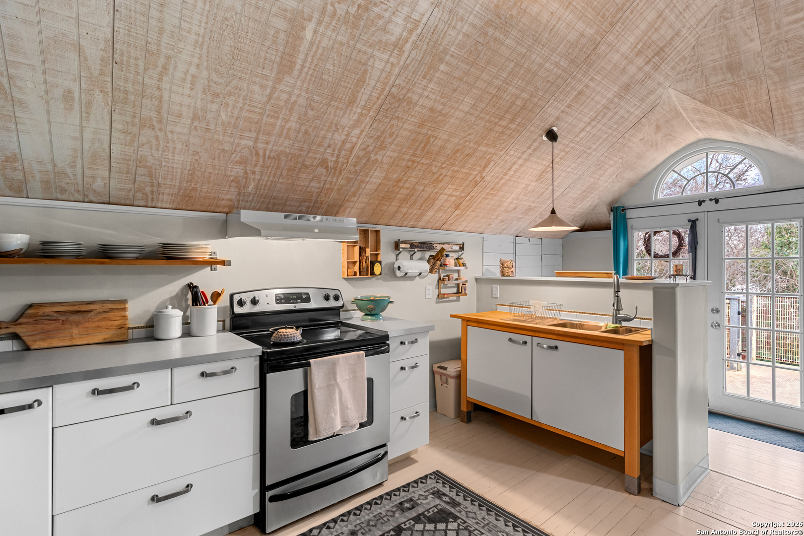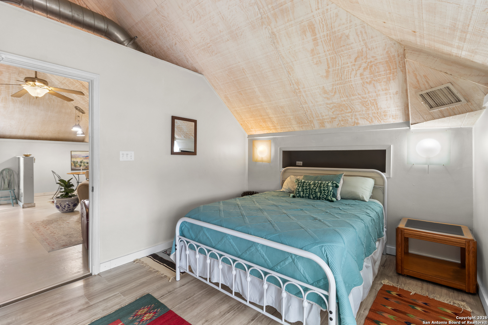 Turn-of-the-century style home in Medina, Texas, offering exceptional flexibility for residential living, income production, or commercial use. Set on .559 acres in the heart of the Hill Country, this 2,486 sq. ft. property features a 4 bedroom, 2 bath main residence plus a separate upstairs 1 bedroom, 1 bath apartment. Currently operating as a successful short-term rental, the layout also supports easy conversion into multiple income streams: the downstairs can be reconfigured into two 2-bedroom, 1-bath units, while the upstairs apartment is already independently leased. Each space can accommodate its own patio or deck, with a shared laundry room located in a separate building on site. With frontage on Highway 16 near the FM 337 intersection, the property is well positioned for business use, rental investment, or a unique live-work setup. Outdoor features include a covered front deck, side patio with Trex decking, and low-maintenance crushed granite landscaping. The expansive backyard offers room to add RV rental sites, a workshop, or space for animals, with an existing pad already in place and electric run to it. Inside the main level, high ceilings, wood floors, French doors, recessed lighting, and multiple entry points create both charm and functionality. Bathrooms feature ceramic tile and glass-enclosed showers. An iron staircase leads to the upstairs apartment, where a landing patio captures open Hill Country views. The apartment includes vaulted ceilings, stainless steel appliances, and exposed stainless steel ductwork for a modern industrial touch. This is a rare opportunity to own a character-rich property with proven income history and strong potential for expansion, business use, or multi-unit rental in one of Medina's most visible and versatile locations.