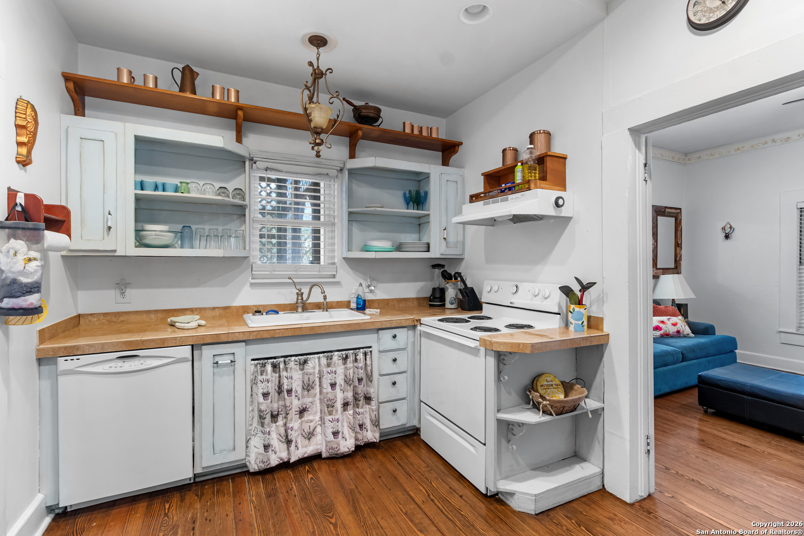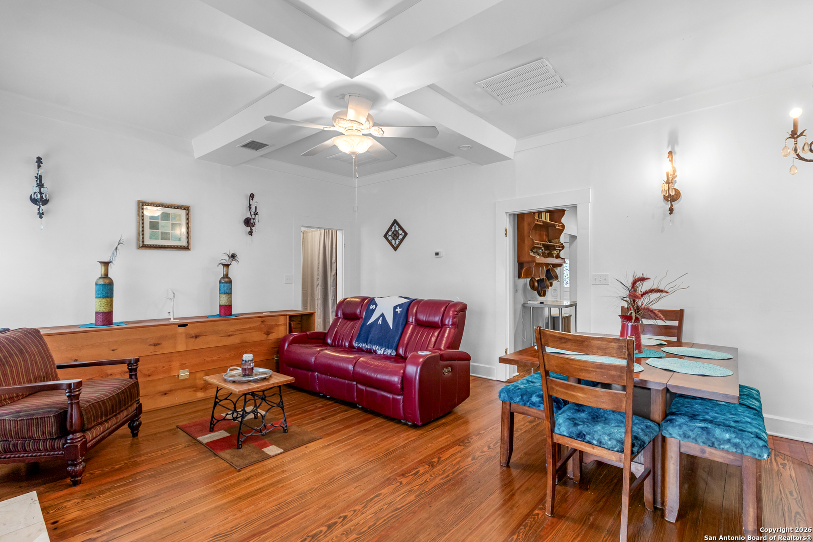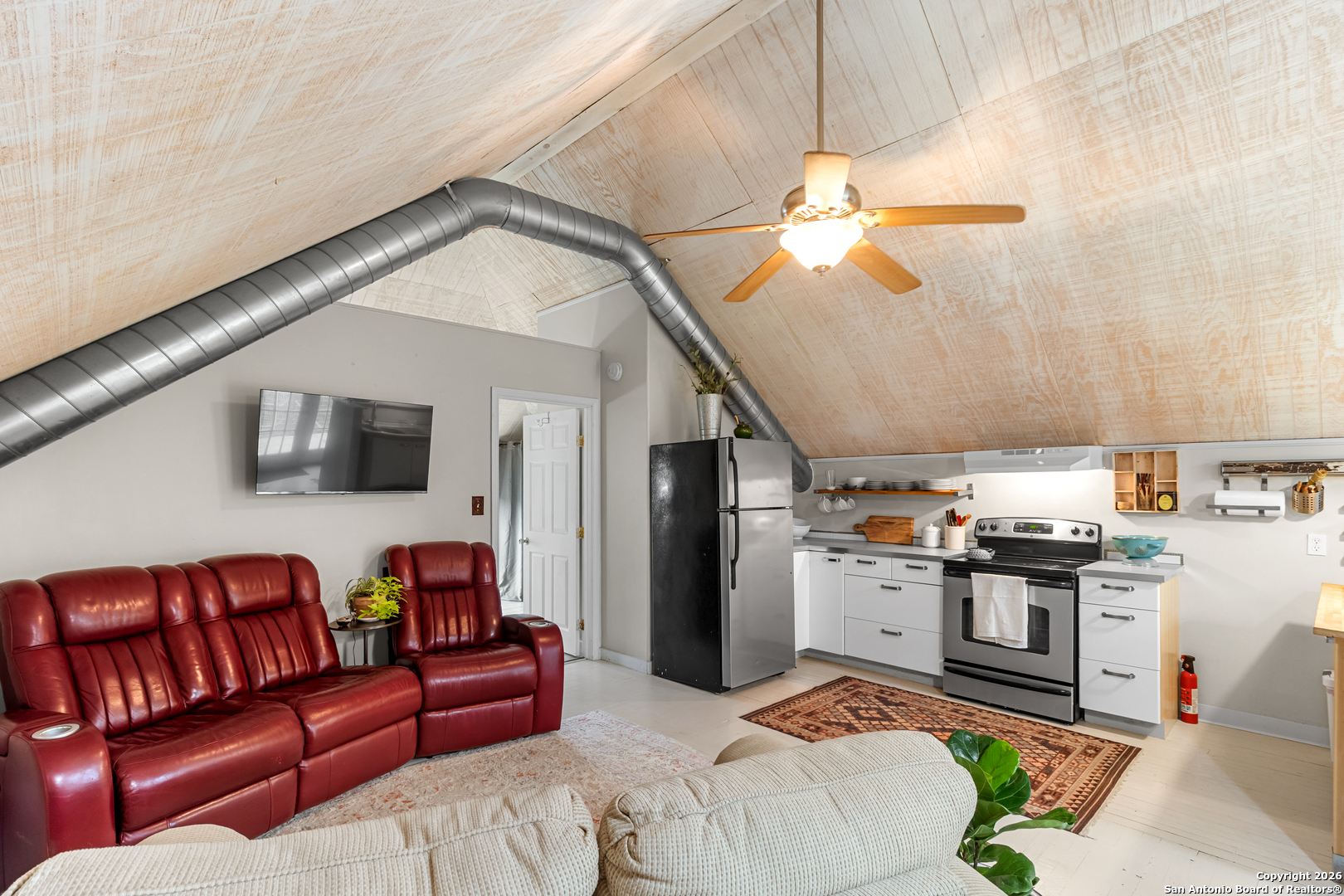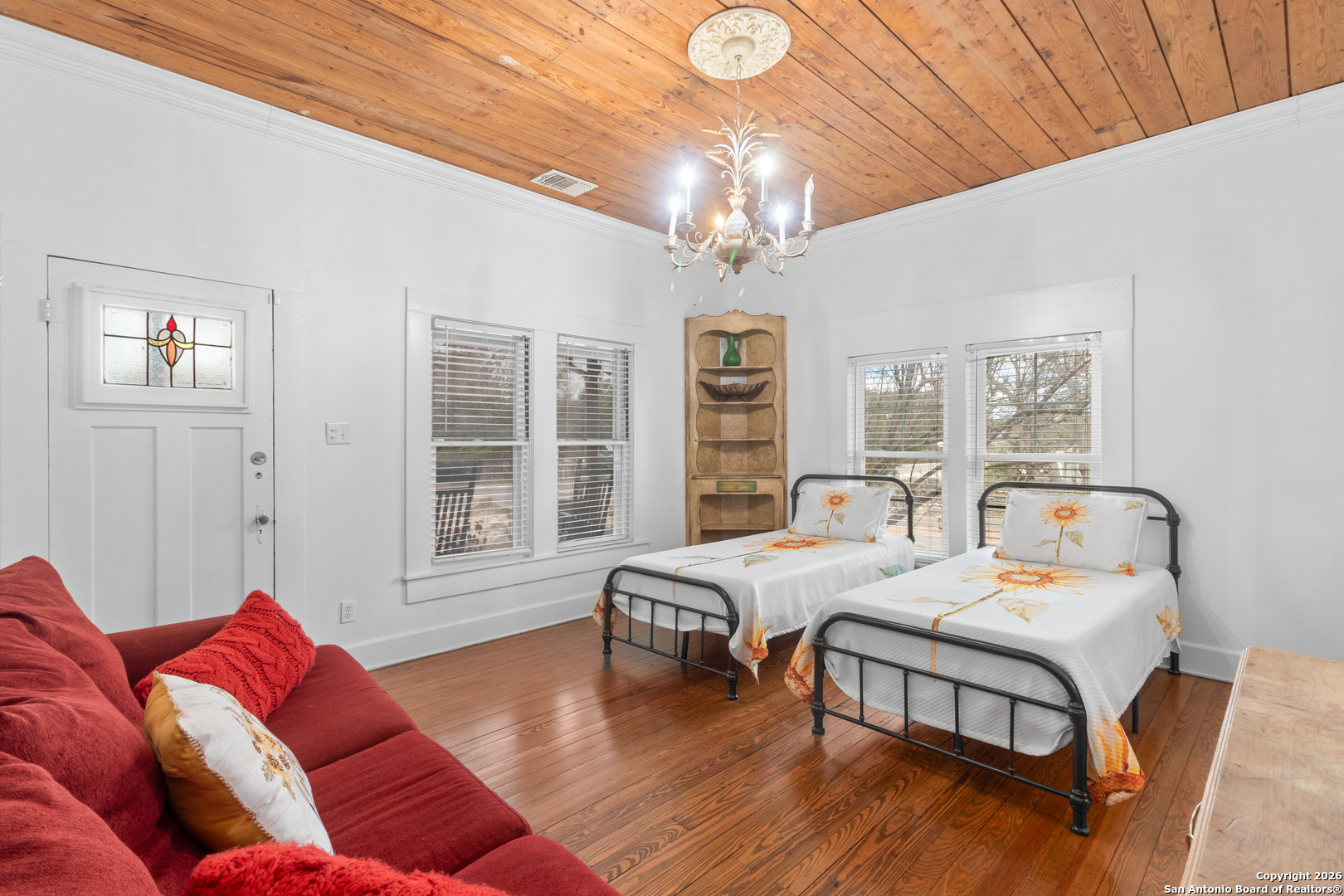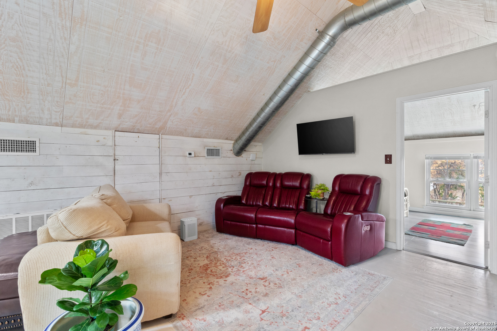 Turn-of-the-century style home in Medina, Texas, offering exceptional flexibility for residential living, income production, or commercial use. Set on .559 acres in the heart of the Hill Country, this 2,486 sq. ft. property features a 4 bedroom, 2 bath main residence plus a separate upstairs 1 bedroom, 1 bath apartment. Currently operating as a successful short-term rental, the layout also supports easy conversion into multiple income streams: the downstairs can be reconfigured into two 2-bedroom, 1-bath units, while the upstairs apartment is already independently leased. Each space can accommodate its own patio or deck, with a shared laundry room located in a separate building on site. With frontage on Highway 16 near the FM 337 intersection, the property is well positioned for business use, rental investment, or a unique live-work setup. Outdoor features include a covered front deck, side patio with Trex decking, and low-maintenance crushed granite landscaping. The expansive backyard offers room to add RV rental sites, a workshop, or space for animals, with an existing pad already in place and electric run to it. Inside the main level, high ceilings, wood floors, French doors, recessed lighting, and multiple entry points create both charm and functionality. Bathrooms feature ceramic tile and glass-enclosed showers. An iron staircase leads to the upstairs apartment, where a landing patio captures open Hill Country views. The apartment includes vaulted ceilings, stainless steel appliances, and exposed stainless steel ductwork for a modern industrial touch. This is a rare opportunity to own a character-rich property with proven income history and strong potential for expansion, business use, or multi-unit rental in one of Medina's most visible and versatile locations.