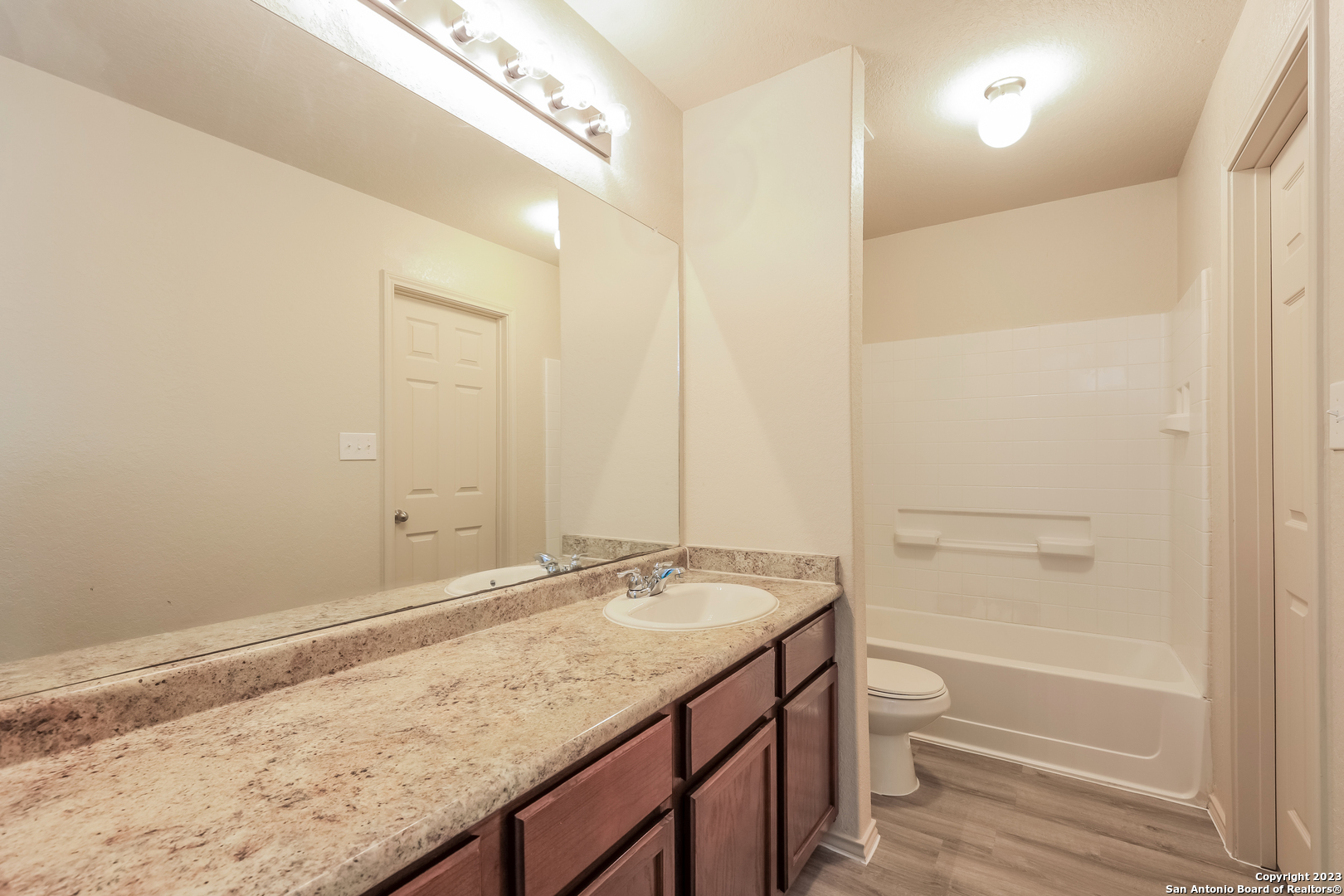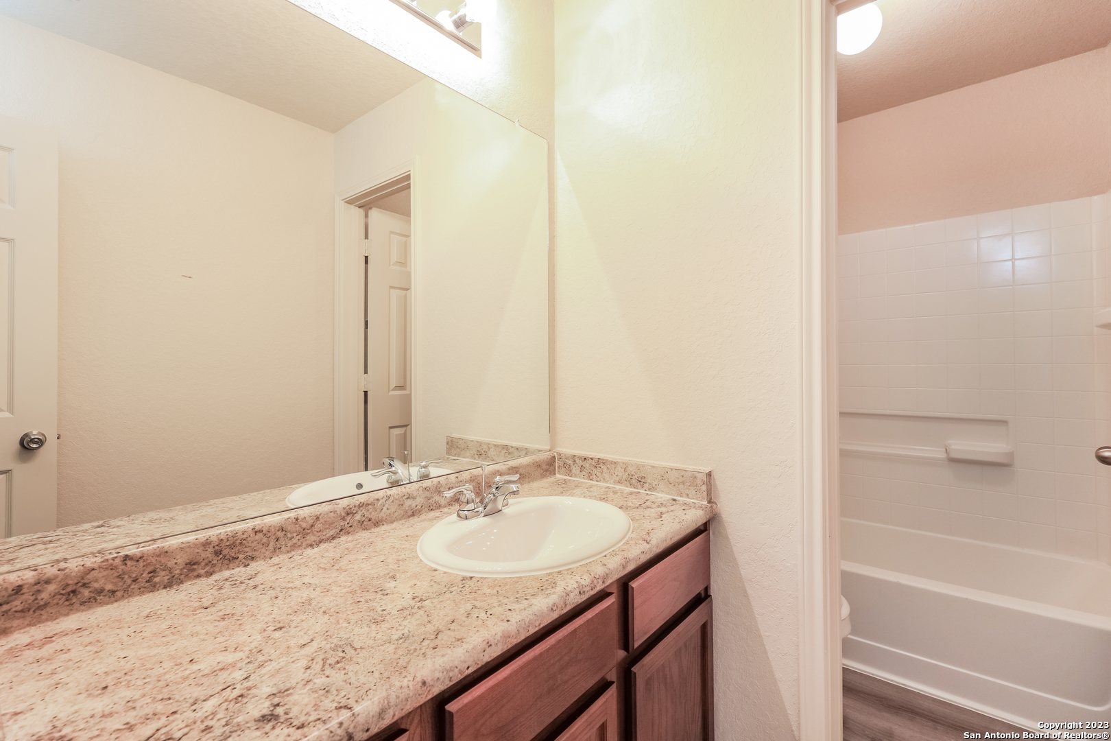 The Daventry Plan is a stylish two-story home offering 3 spacious bedrooms and 2.5 bathrooms. The open-concept first floor features a welcoming family room with easy flow into the dining area, breakfast nook, and modern kitchen - perfect for gatherings and everyday living. Upstairs, you'll find a spacious primary suite with a luxurious private bath and a large walk-in closet, along with two additional bedrooms, each with their own walk-in closets for ample storage. Enjoy added convenience with an upstairs utility room and a two-car garage. All homes are SimplyMaintained for a $100 monthly fee that includes front and back yard lawn care and exterior pest control. Located in northwest San Antonio, Dove Landing offers quick access to Loop 1604 and Highway 151, placing residents near major employers, shopping, and dining in the Westover Hills area. Zoned to Northside ISD, the community features well-designed homes with open layouts and fenced backyards perfect for relaxing outdoors. Residents enjoy nearby green spaces and easy access to SeaWorld San Antonio and local parks, blending comfort and convenience in a connected neighborhood.