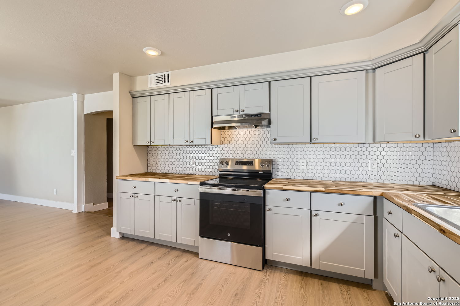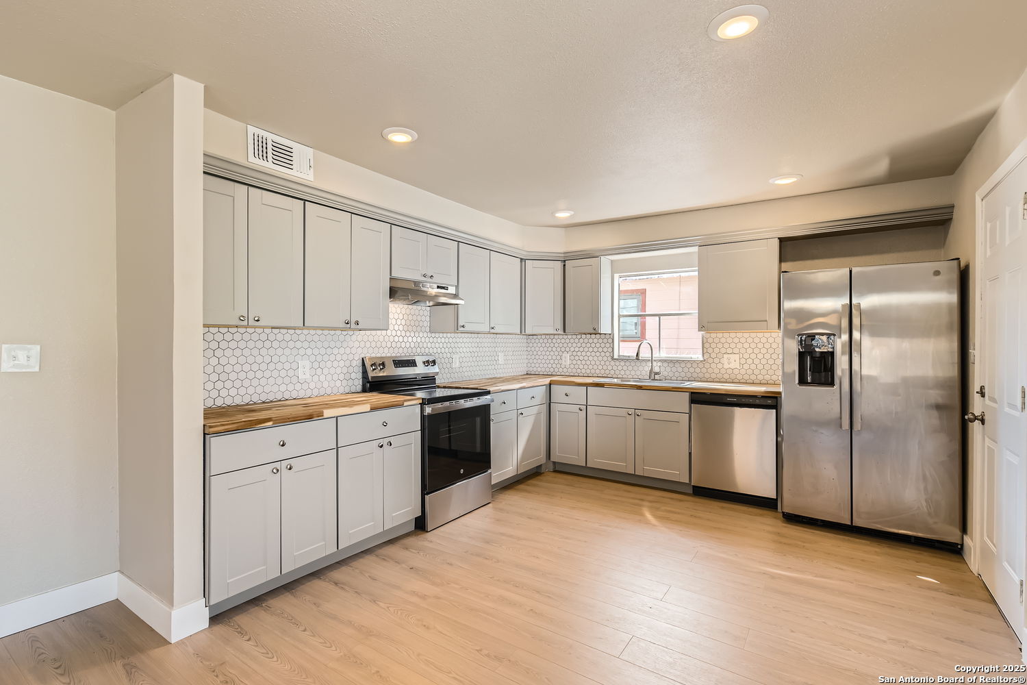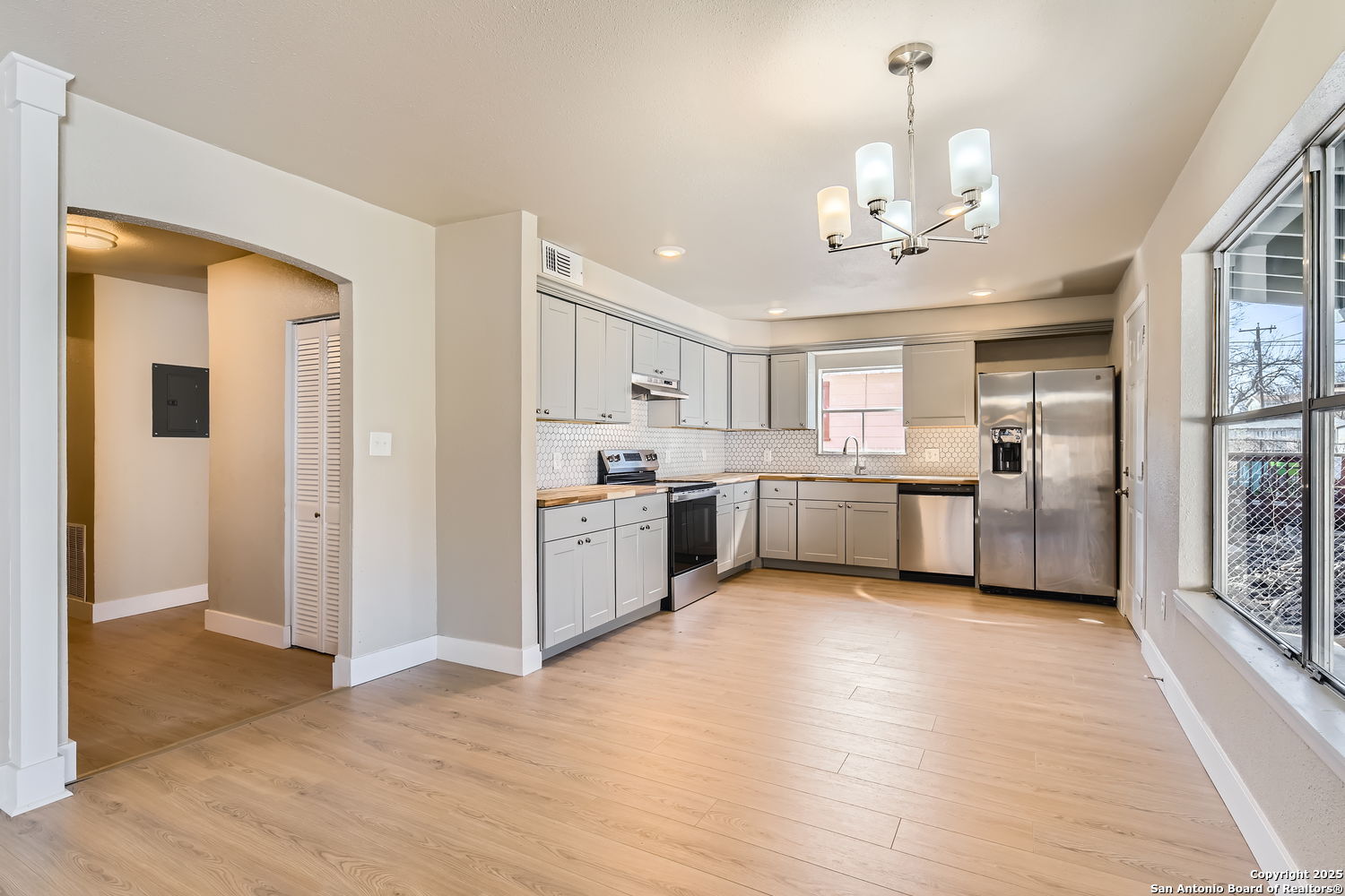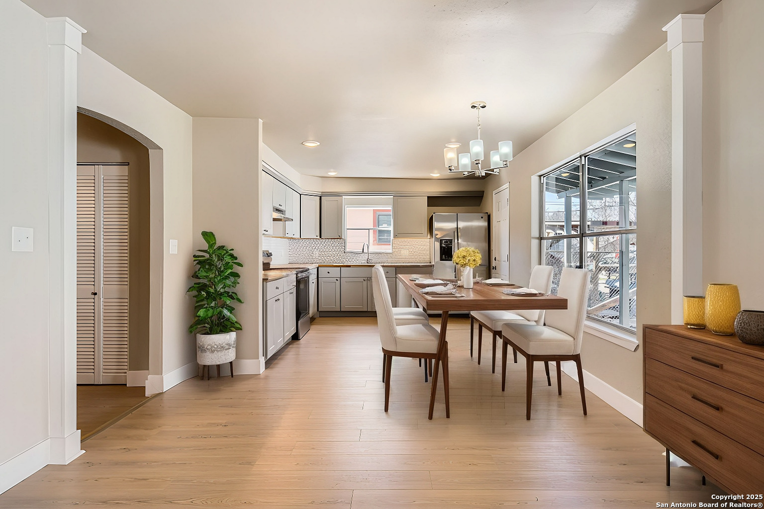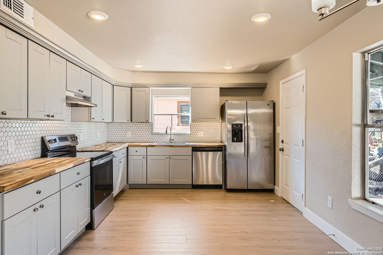 Improved Price! Welcome to this beautifully maintained 3-bedroom, 1-bath home, perfectly nestled in a highly sought-after neighborhood near St. Mary's University, Woodlawn Lake, and a vibrant selection of local eateries and family-owned businesses. Enjoy the convenience of a short commute to downtown San Antonio, while still relishing in the charm and character of this well-established area. Step inside to neutral paint tones, updated fixtures, and modern lighting, creating a warm and inviting atmosphere. The open-concept kitchen is a true standout, featuring stainless steel appliances, butcher block countertops, and seamless flow into the dining and living area-perfect for both entertaining and everyday living. The home boasts an extended driveway offering ample parking and an immaculate storage shed, providing extra space for all your needs, new tankless water heater, gas cooking, HVAC installed October 2024, and all new electrical wiring. Conveniently close to HEB, various eateries, shops, and a short commute to IH10 and Fredericksburg Rd. Plus, rest easy knowing this beauty comes with a brand-new roof installed in 2025! A gem like this won't last long!