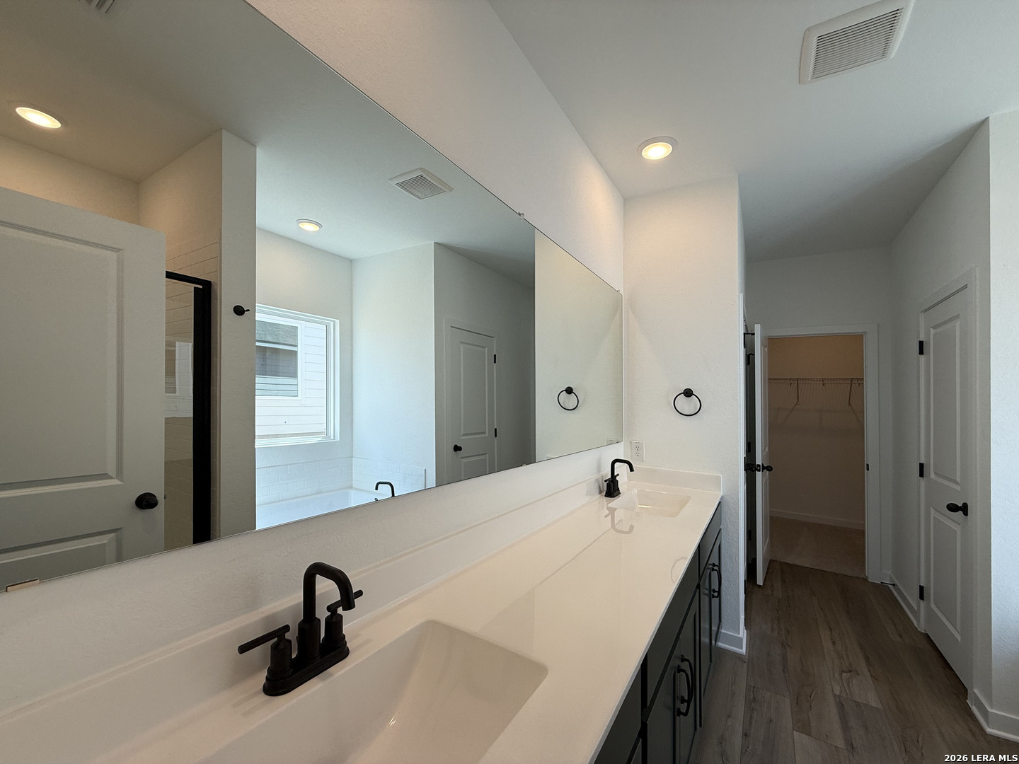 This inviting single-story home is designed for both style and functionality. At its heart is a gourmet kitchen complete with a center island, built-in appliances, and a spacious walk-in pantry. Seamlessly flowing into the open family room, the layout makes it easy to entertain guests or enjoy everyday moments together. Expansive windows fill the space with natural light while offering views of the backyard, creating a warm and welcoming atmosphere. The private primary suite is a true retreat, featuring a bath with a large shower, garden tub, and walk in closet. Three secondary bedrooms with a shared bath. Covered patio on the back of the home. This home is part of our Rosemary Collection - where deep greens, matte black, and warm wood tones create a grounded, earthy vibe. Rosemary blends nature's calm with bold design, perfect for casual gatherings, comfort, and life lived beautifully under one roof. This home is in The Wilder, near Loop 1604 and I-10, with easy commutes to major employers and planned amenities including a pool, playground, and cabana.