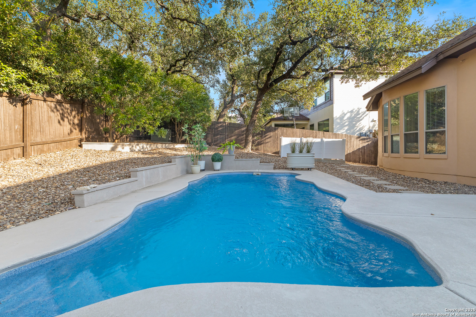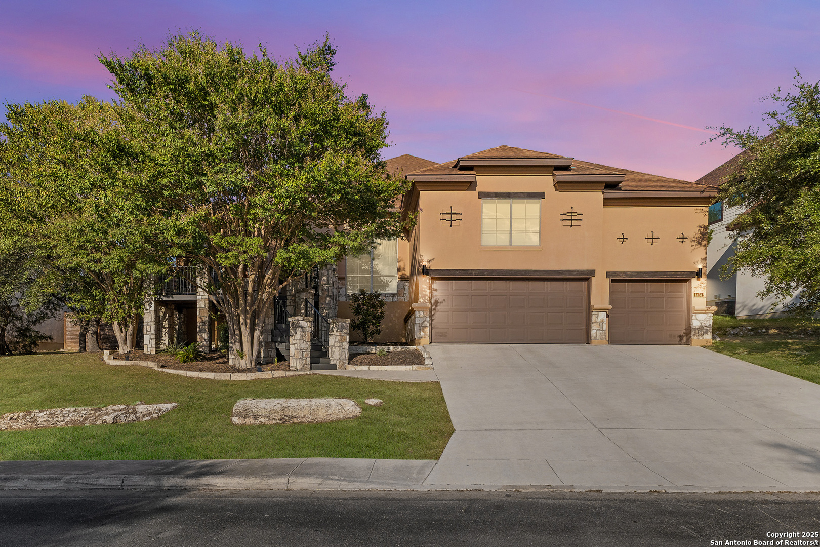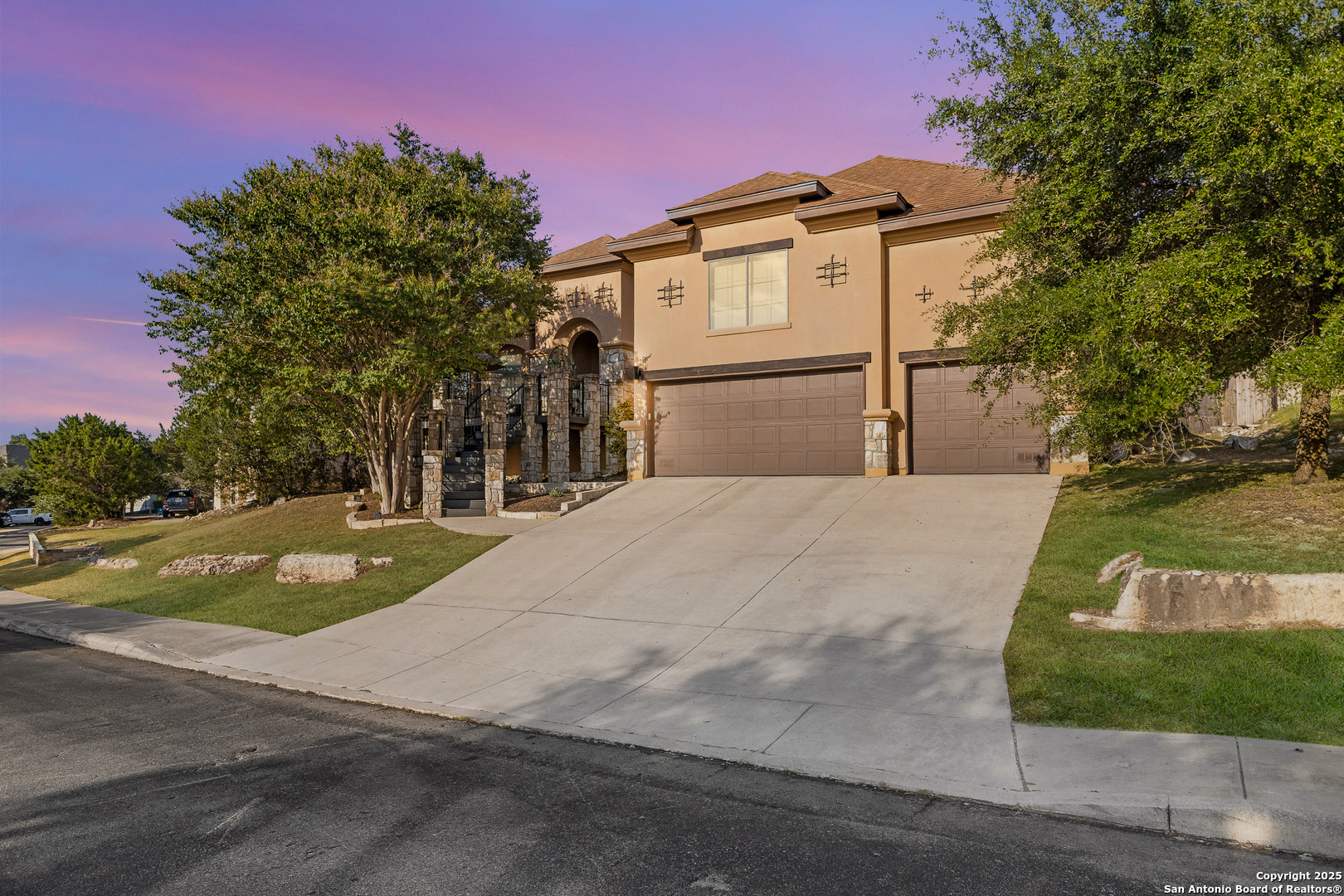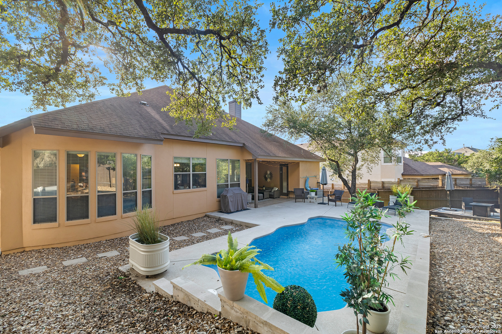 Located on a quarter-acre hilltop lot in the Vistas of Mountain Lodge near Stone Oak, this 2,708 sq. ft. residence offers 4 bedrooms and 3 bathrooms in a thoughtfully designed layout. A spacious 200+ sq. ft. front deck sets the stage for enjoying breathtaking sunsets and scenic hilltop views. Inside, the home showcases elegant crown molding, distinctive trim work, custom lighting, stainless steel appliances, and 8-foot doorways throughout. Recent upgrades include two new AC units for year-round comfort. The primary suite is highlighted by bowed windows and an impressive 18-foot walk-in closet, along with numerous upscale finishes throughout. Step outside to your private pool-just 3 years old-perfect for relaxing weekends, entertaining guests, or unwinding after a long day. With generous deck space and a serene atmosphere, this outdoor retreat offers the ideal blend of leisure and luxury.