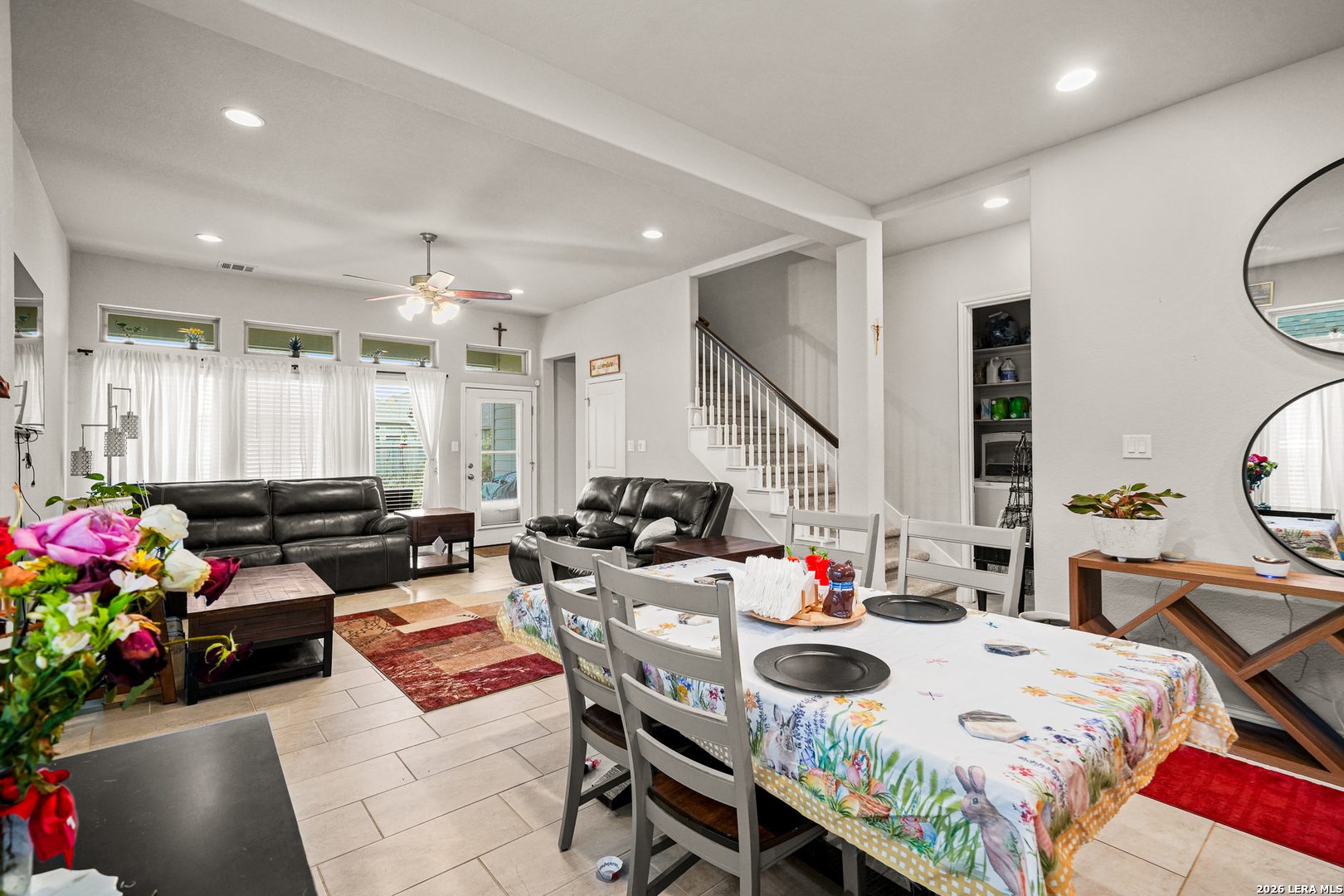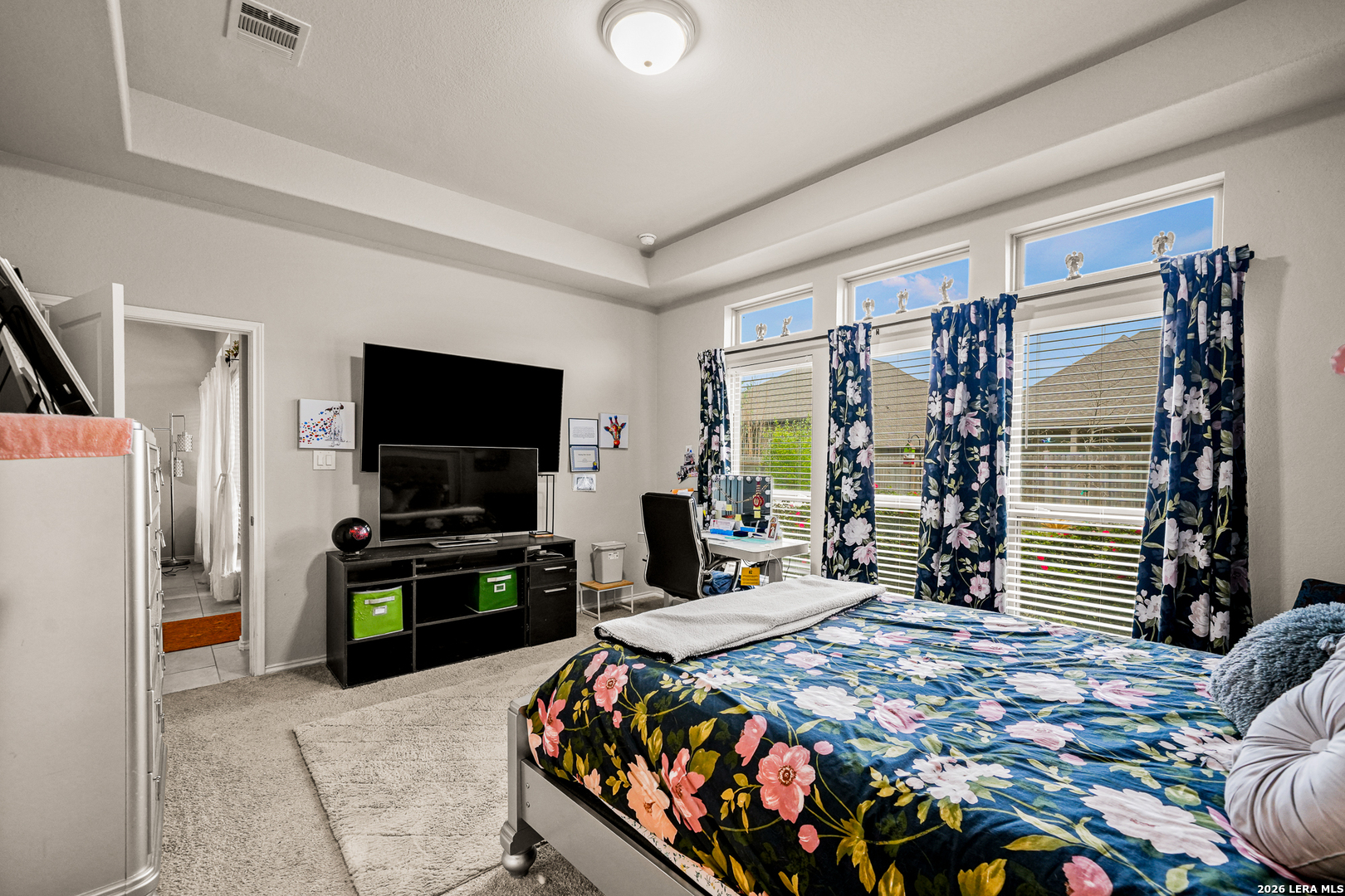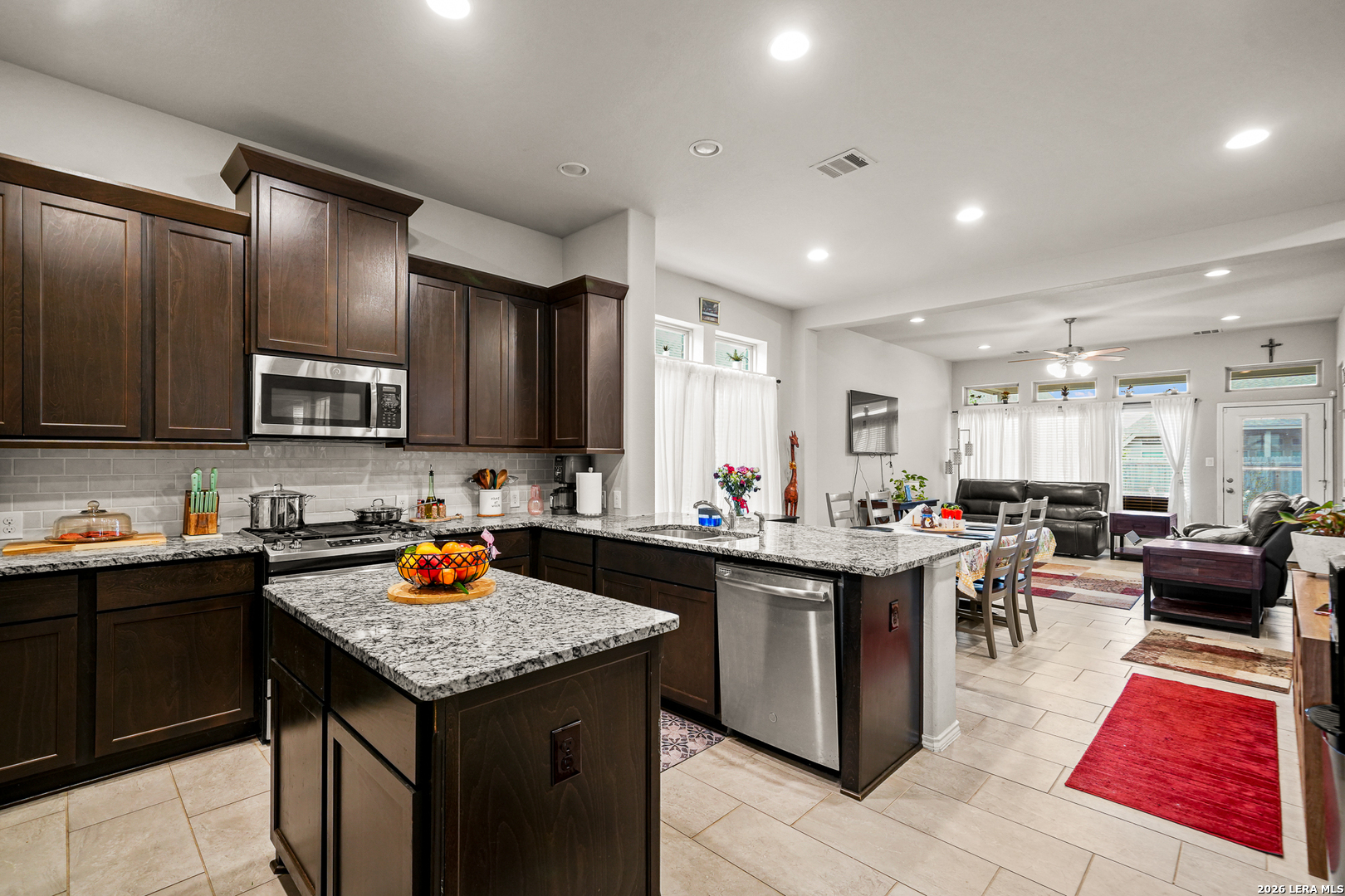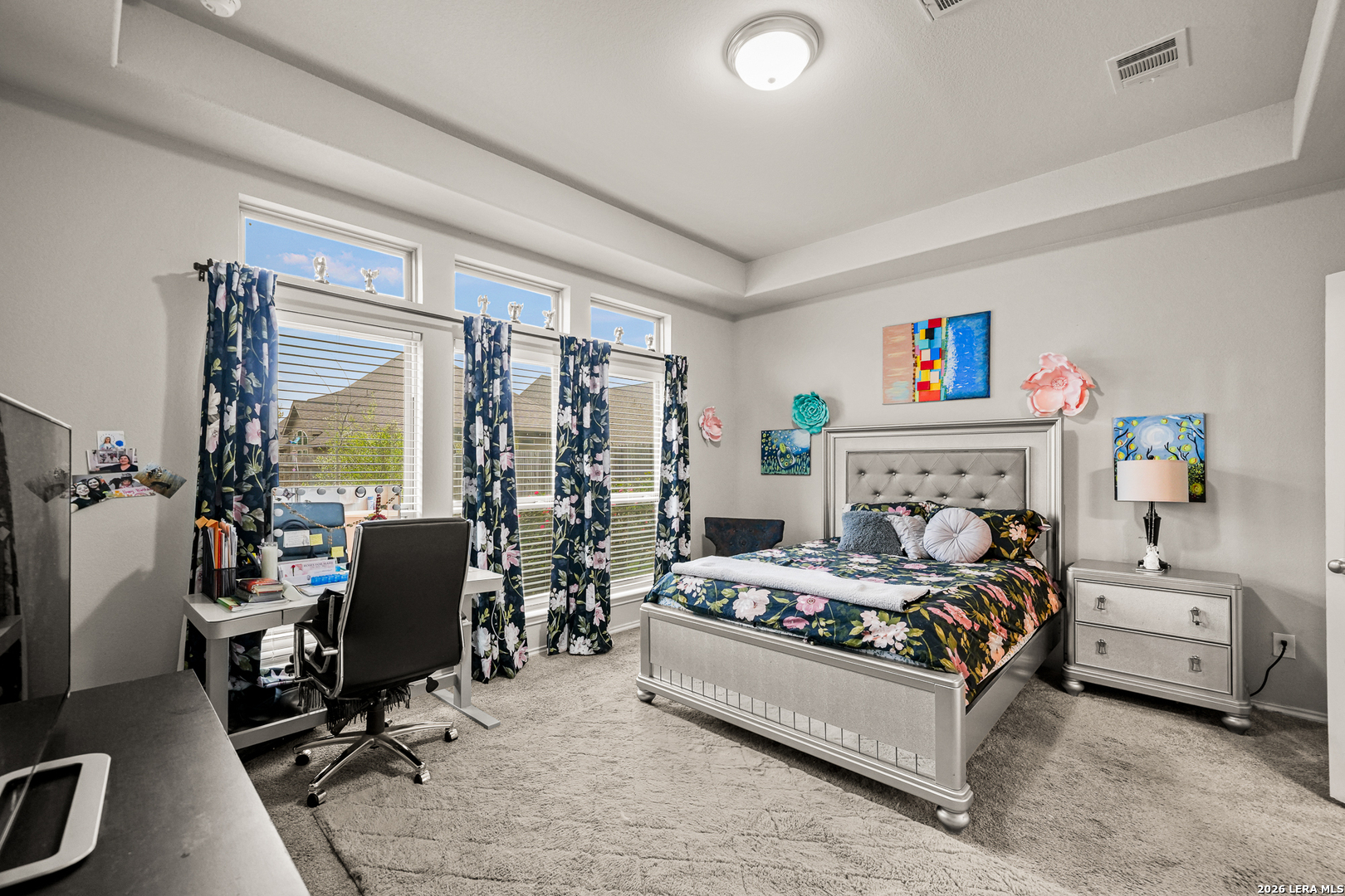 Remarks: stunning Perry Home in the sought after Kallison Ranch with lots of neighborhood amenities. Mahogany front door. Entry with 12-foot ceiling. Library with French doors. Kitchen with a walk-in pantry. Formal dining room. Family room features ceramic tile floor and a wall of windows. 2 Bedrooms downstairs & 2 bedrooms upstairs - Private primary suite with a wall of windows. Primary bath with dual vanity sinks, corner garden tub, separate glassenclosed shower, and walk-in closet. Upstairs game room. Sprinkler system. Covered backyard patio. Two-car garage.
