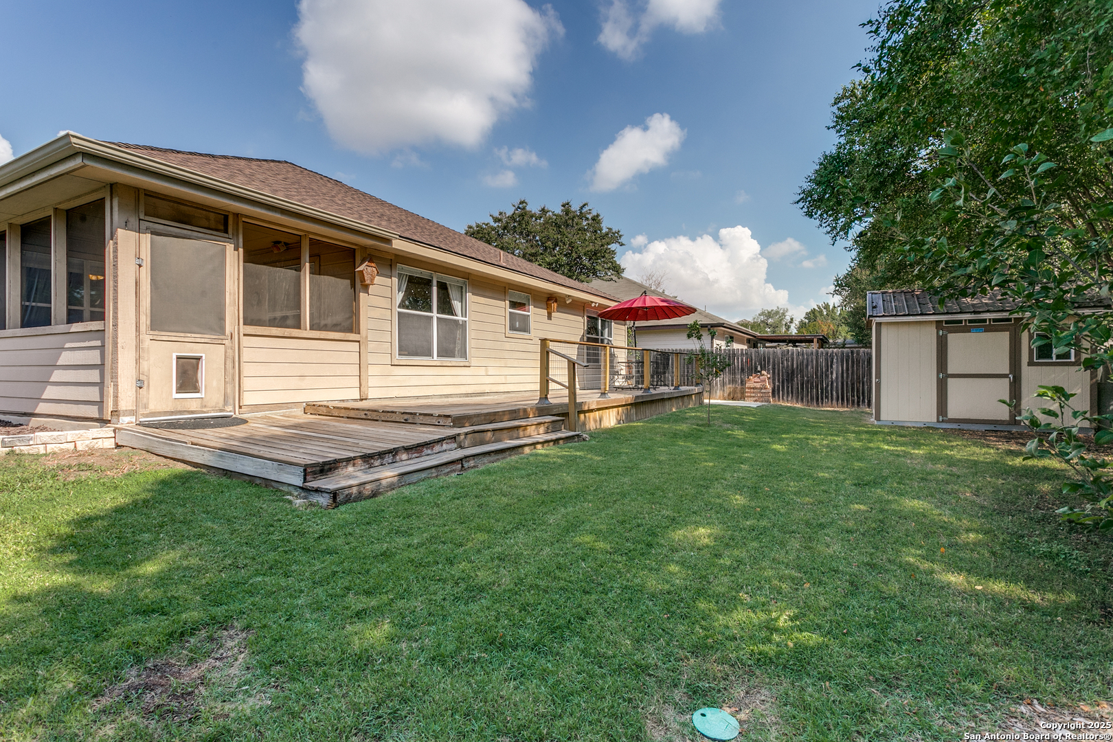 Welcome home to this cozy brick retreat tucked away on the north side of San Antonio! Located in a small gated community surrounded by beautiful mature oak trees, this 3-bedroom, 2-bath home offers the perfect blend of comfort and convenience. Inside, you'll find a spacious living room with plenty of room to relax or entertain. The kitchen and dining areas flow easily together, making family meals a breeze. Step outside to your own private backyard oasis - complete with a large built-in deck, a screened-in porch, and a 12x10 storage shed. It's the perfect setup for backyard BBQs, morning coffee, or quiet evenings under the trees. With recent updates including a new HVAC system (2021) and water heater (2022), you can move in with peace of mind. Enjoy living close to parks, shopping, and great restaurants - all while coming home to your peaceful slice of San Antonio. Come see why this inviting home is the perfect place to start your next chapter!