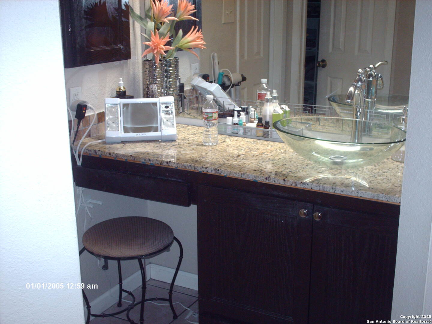 Newly remodeled 2/2 Condo in northeast San Antonio with quick access to IH 35/1604, SAMS/HEB, restaurants & entertainment. The complex is 100 units with a swimming pool, picnic area & assigned parking. Kitchen has been updated with granite/stone countertops/backsplash, new stainless-steel appliances/sink & upgraded cabinets. Refrigerator CONVEYS to Buyer. Bathrooms are updated with granite countertops, vessel sinks & cabinets. New laminate flooring throughout. The fireplace and vaulted ceiling enhance the living area along with large windows adjacent to a spacious outdoor balcony. The Master bedroom has its own separate bathroom. This is a perfect starter home.