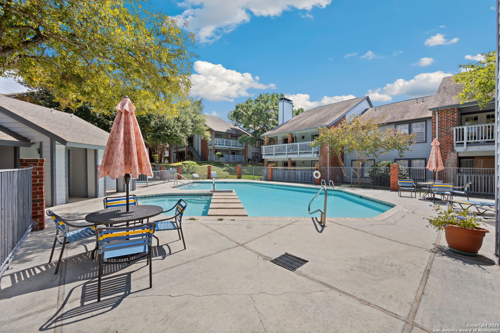 This beautifully updated 2-bedroom 1-bath condo combines comfort, style and convenience. Situated on the first floor, this unit offers easy access with no stairs! Step inside to find luxury flooring, plantation shutters, and a stunning wood-burning fireplace that serves as the centerpiece of the living room. The kitchen has been thoughtfully upgraded with beautiful counters, backsplash, and stainless steel appliances, including a new LG fridge. Enjoy the spa-like bathroom which has been fully renovated and offers a sleek walk-in shower. Take in peace and quiet of the community in your spacious tiled, covered patio, perfect for relaxing or entertaining. For added convenience this condo comes equipped with a washer and dryer. The Highlands condos offers gated access, a large pool for residents, and easy access to both 1604 and I-35.