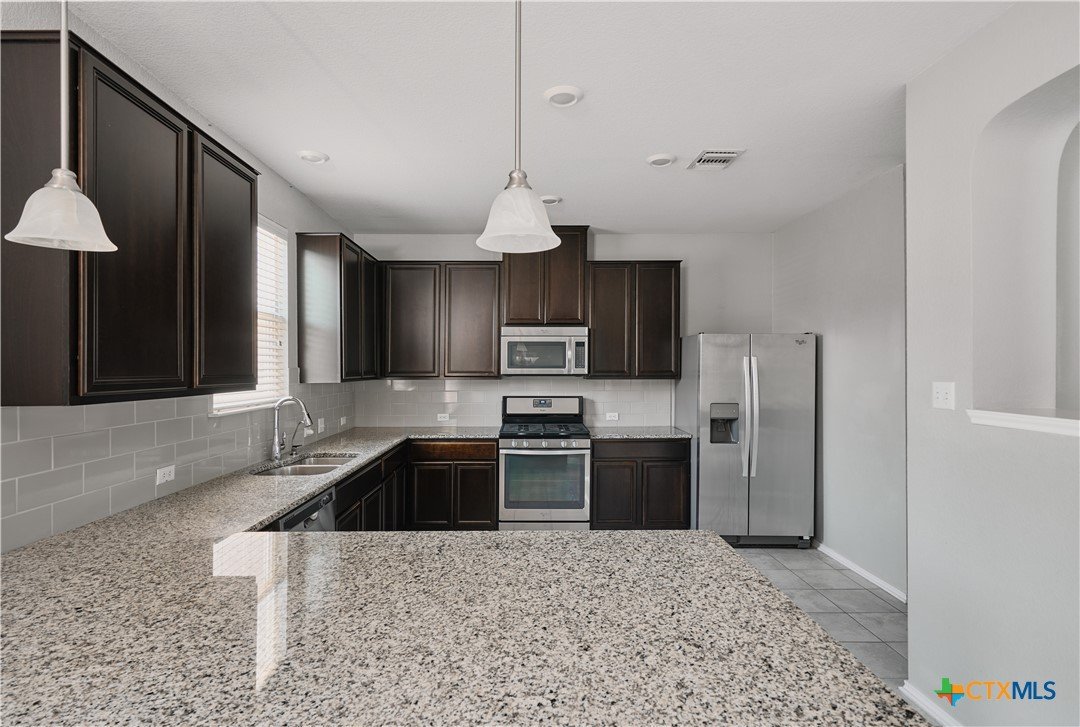 Welcome to your dream home in the highly sought-after Star Ranch golf course community! This beautifully maintained 2-story residence offers 3 spacious bedrooms, 2.5 bathrooms, and a versatile upstairs gameroom, all spread across 2,150 square feet of thoughtfully designed living space. Set on an oversized corner lot with lush, professional landscaping, this home exudes curb appeal and comfort. Step inside to discover a chef-inspired kitchen featuring granite countertops, 42" cabinetry, stainless steel appliances, and plenty of room for entertaining and daily living. The spacious primary suite is your private retreat with a luxurious en suite bath offering a double vanity, separate shower, garden tub, and an expansive walk-in closet. Upstairs, the gameroom provides the perfect space for a home office, playroom, or second living area. Located just 2 minutes from HEB, 3 minutes to the 130 Toll, and within quick reach of downtown Austin, Austin-Bergstrom Airport, and major tech employers—this home is ideally positioned for both convenience and lifestyle. You'll also be just 10 minutes to Stone Hill Shopping Center and 15 minutes to the new Samsung facility in Taylor. Don’t miss your opportunity to own this exceptional home in one of the area's most desirable neighborhoods!