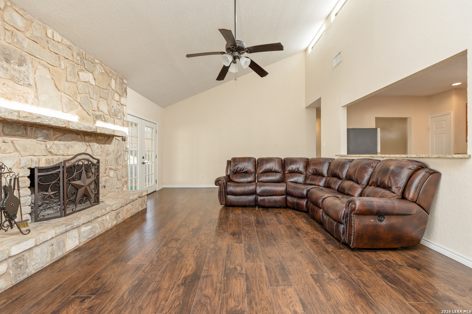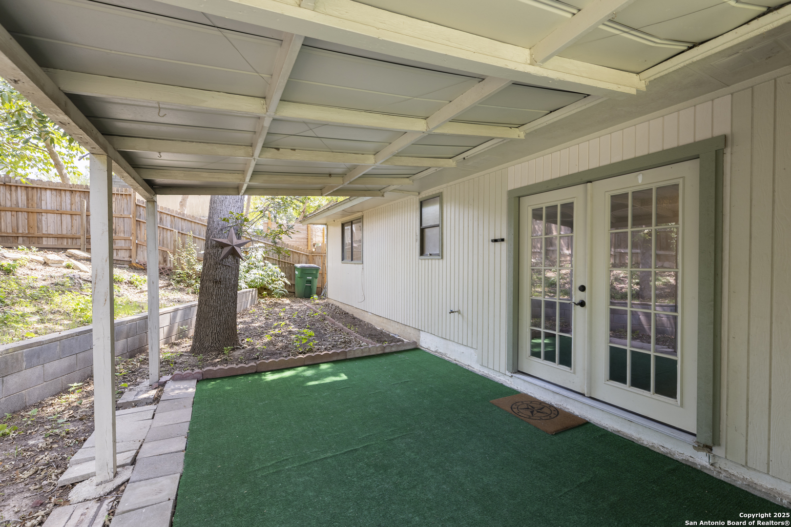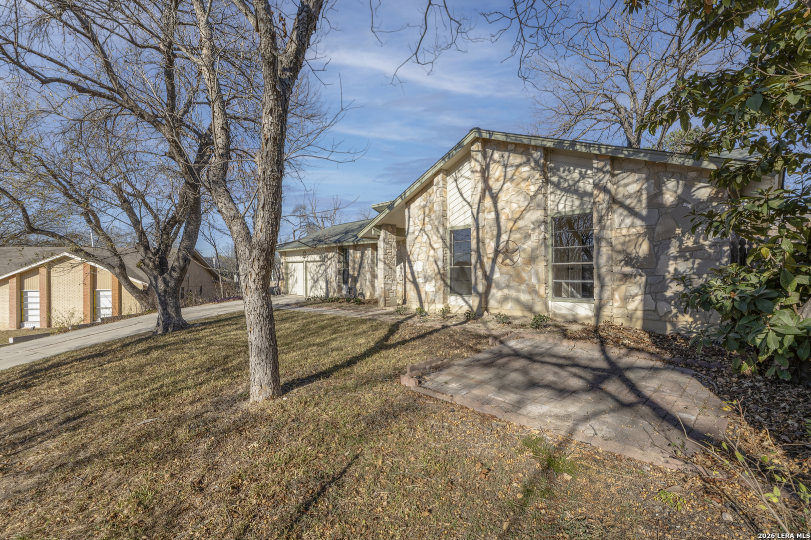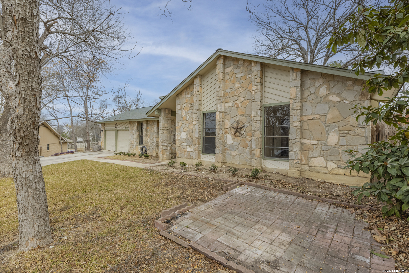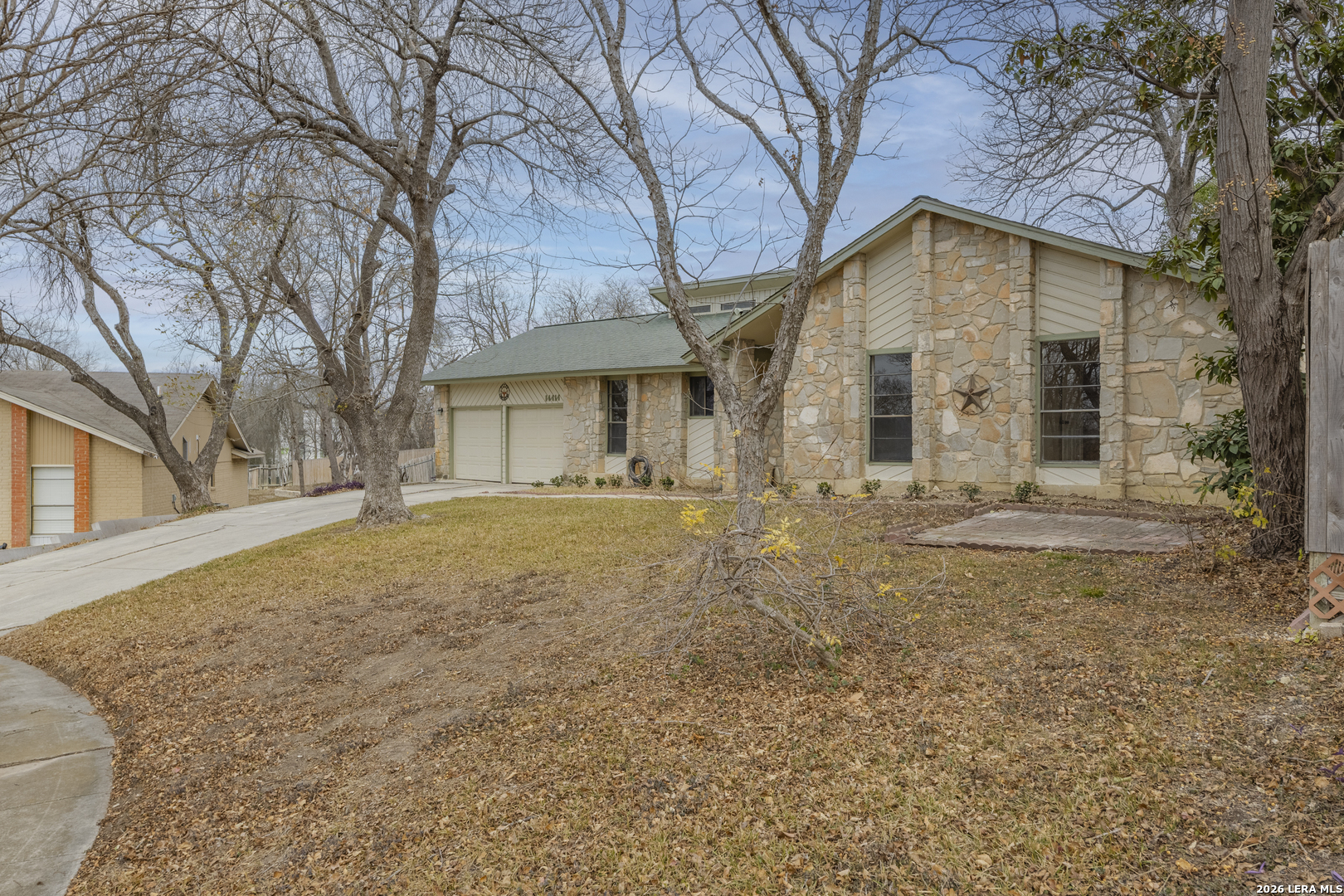Tucked away on a quiet cul-de-sac, this single-story ranch-style home combines timeless charm with thoughtful updates. Within minutes of Randolph Air Force Base, it's perfectly situated for both convenience and comfort. Step inside to a high-ceiling living room where French doors frame the backyard and a stone gas fireplace creates a warm focal point. The kitchen and baths shine with granite countertops and updates completed in 2018, along with flooring that adds a fresh, modern touch. The primary suite offers a private retreat, while additional bedrooms provide space for family, guests, or a home office. Out back, mature trees shade the expansive yard and a large covered patio invites you to relax or entertain. With its inviting layout and attention to detail, this home is ready for you to make it your own.