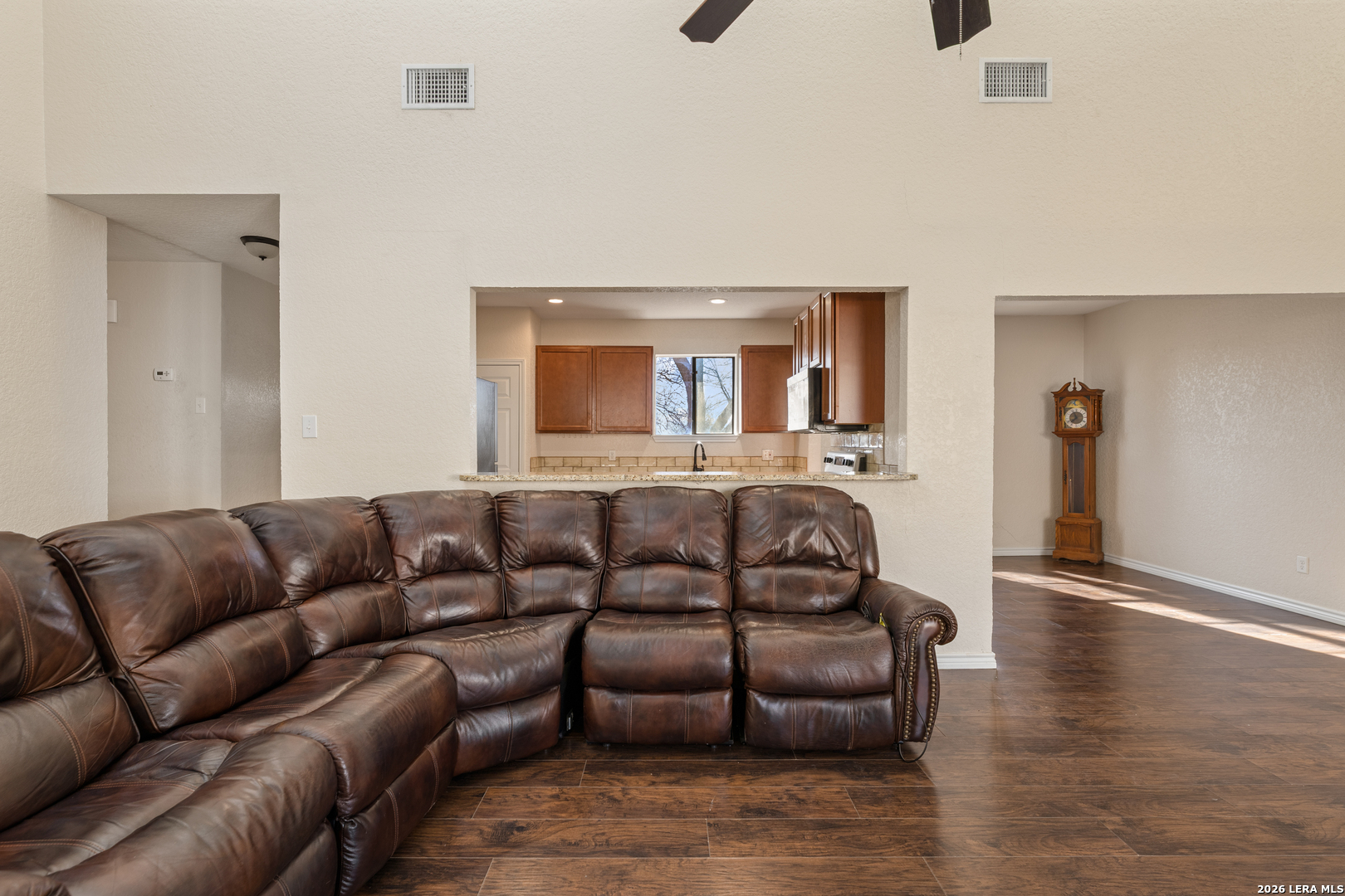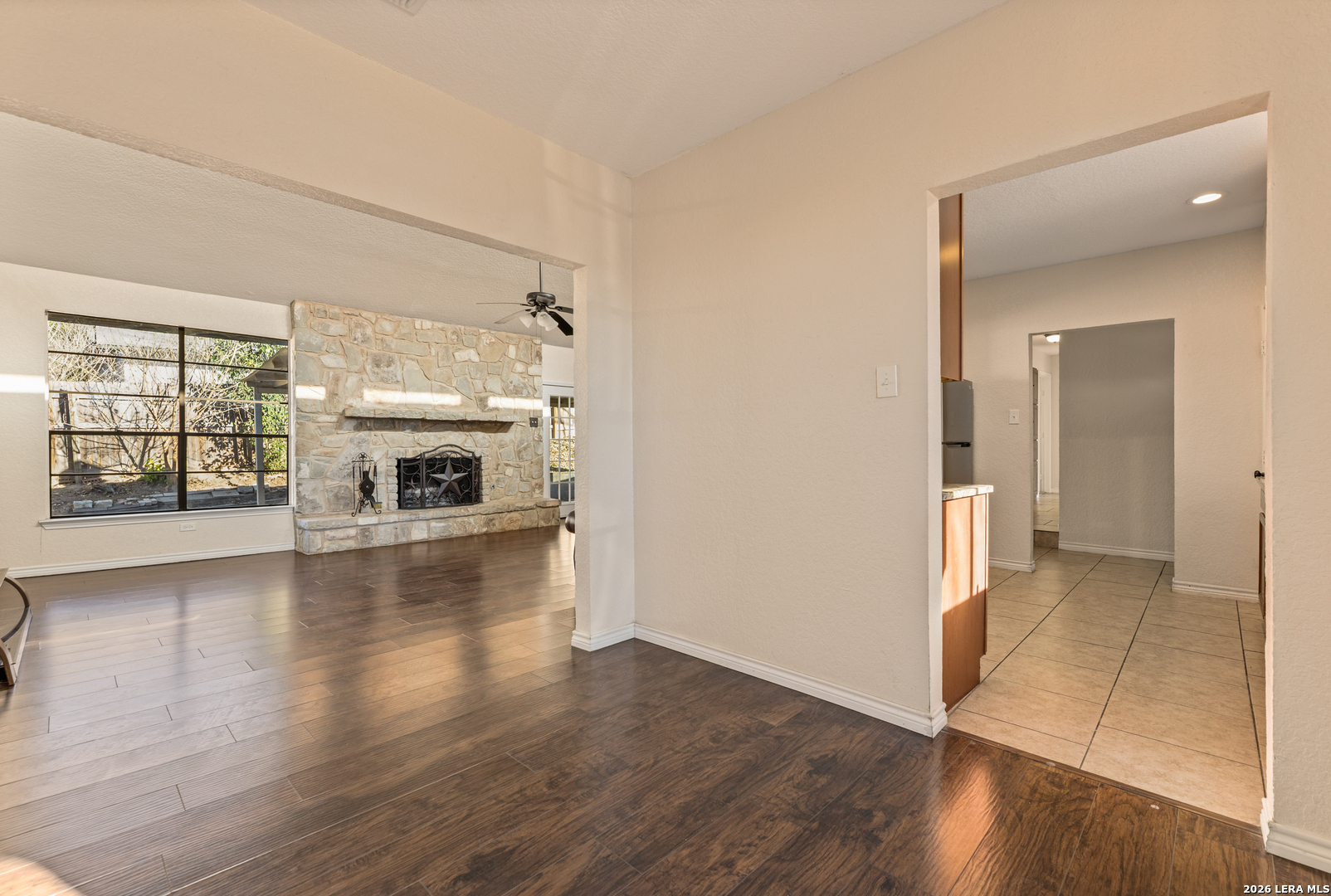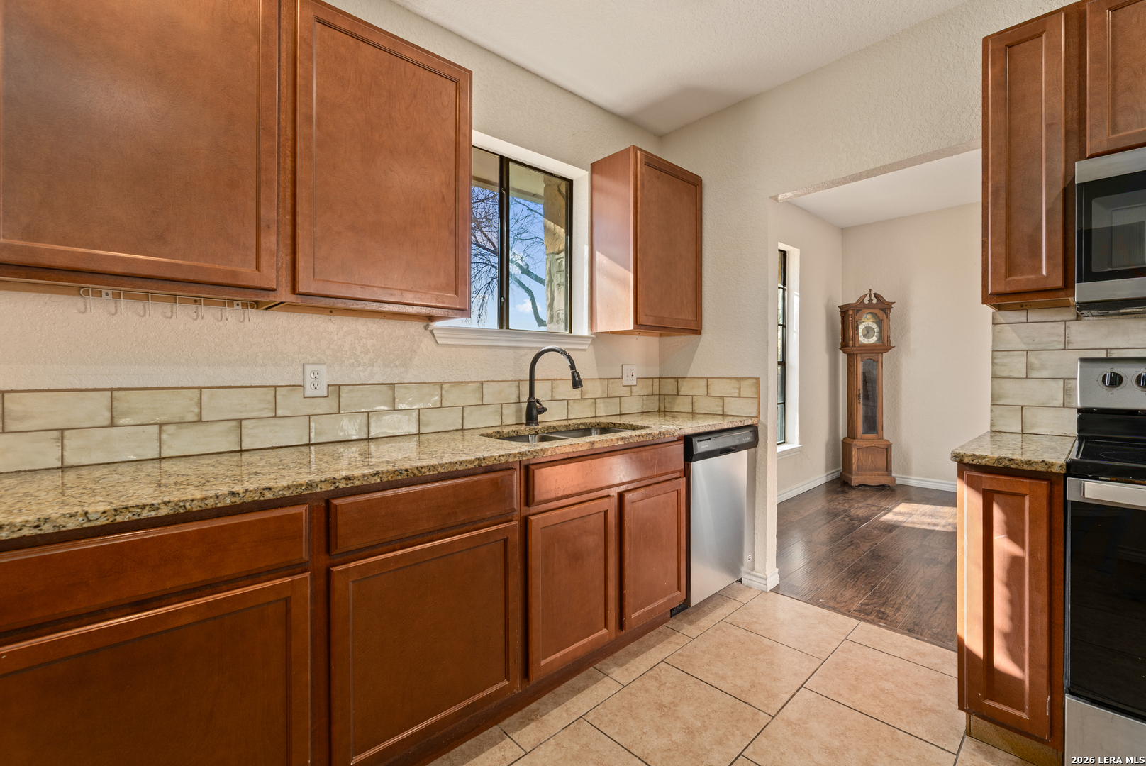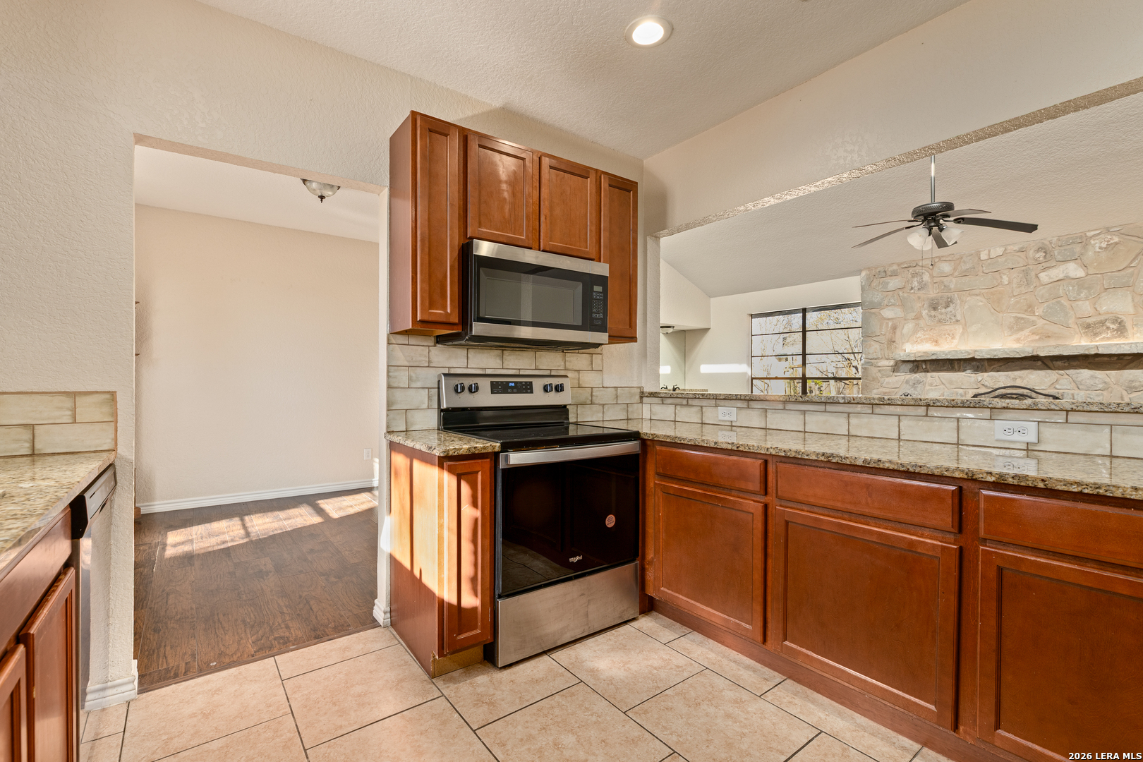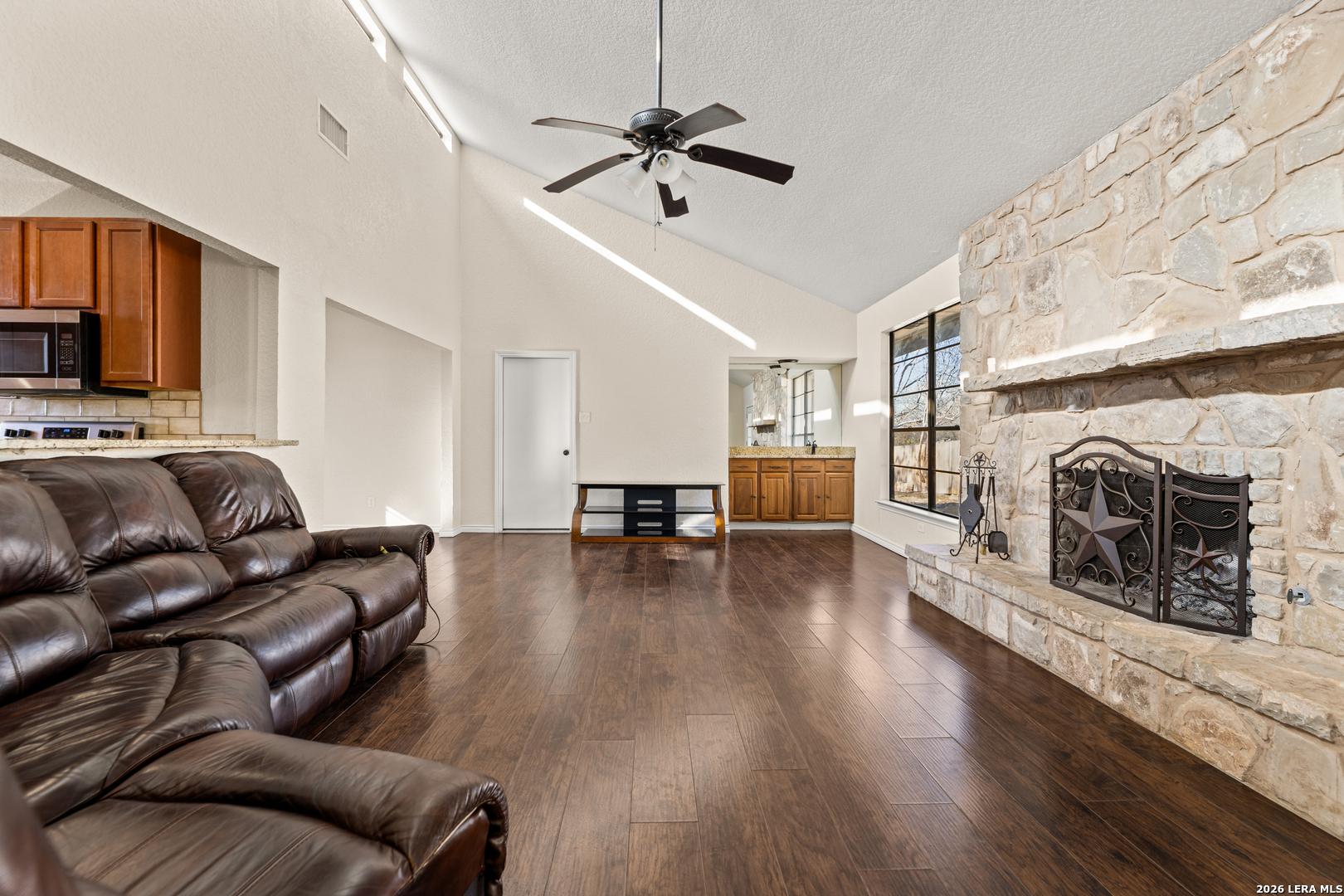 Tucked away on a quiet cul-de-sac, this single-story ranch-style home combines timeless charm with thoughtful updates. Within minutes of Randolph Air Force Base, it's perfectly situated for both convenience and comfort. Step inside to a high-ceiling living room where French doors frame the backyard and a stone gas fireplace creates a warm focal point. The kitchen and baths shine with granite countertops and updates completed in 2018, along with flooring that adds a fresh, modern touch. The primary suite offers a private retreat, while additional bedrooms provide space for family, guests, or a home office. Out back, mature trees shade the expansive yard and a large covered patio invites you to relax or entertain. With its inviting layout and attention to detail, this home is ready for you to make it your own.