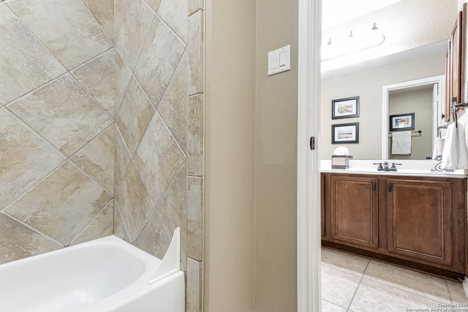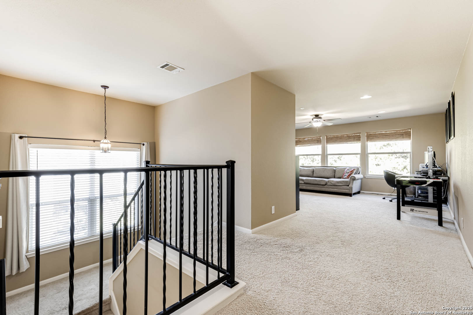 This exquisite 2 story home nestled in the desirable Oaks At Sonterra community will take your breath away. Features inc: Private culdesac lot, Stunning curb appeal w Rock/Stucco exterior, Roof replaced 2020, 2 car garage, Lush landscape, Majestic mature trees, Tons of Windows, New HVAC units, open floor plan, tile & wood flooring in all traffic areas, Formal dining, Dedicated Office, HUGE family room with rock fireplace, gourmet chefs kitchen with silestone counters, double oven, Tons of cabinet and counter space and so much more! The master suite was updated 2024 with new paint & flooring & adorns a luxurious remodeled en suite w upgraded shower, tub, floors, paint, fixtures, lighting & tile! Also complete with a custom closet! Upstairs features an open game room, 3 bedrooms and 2nd bathroom. Walk out to your own private back yard paradise with custom built deck with fresh paint, tons of privacy & luxurious lush landscape all nestled on a .18 acre quiet culdesac! This home truly is remarkable and you must see it to appreciate all the exquisite details!