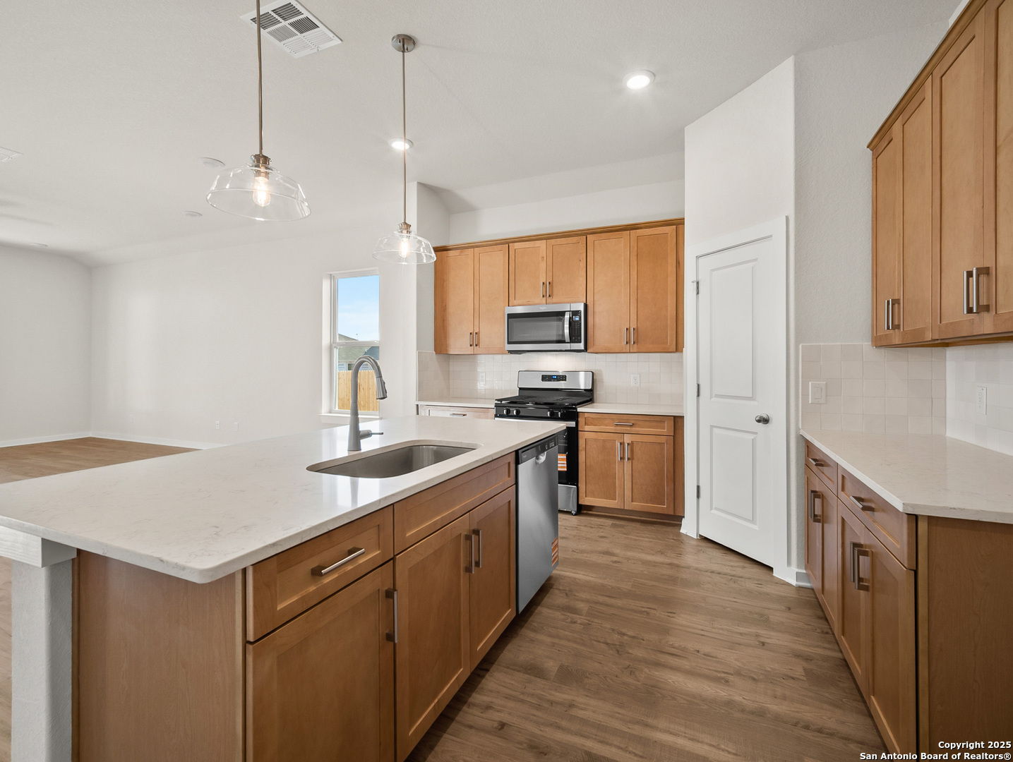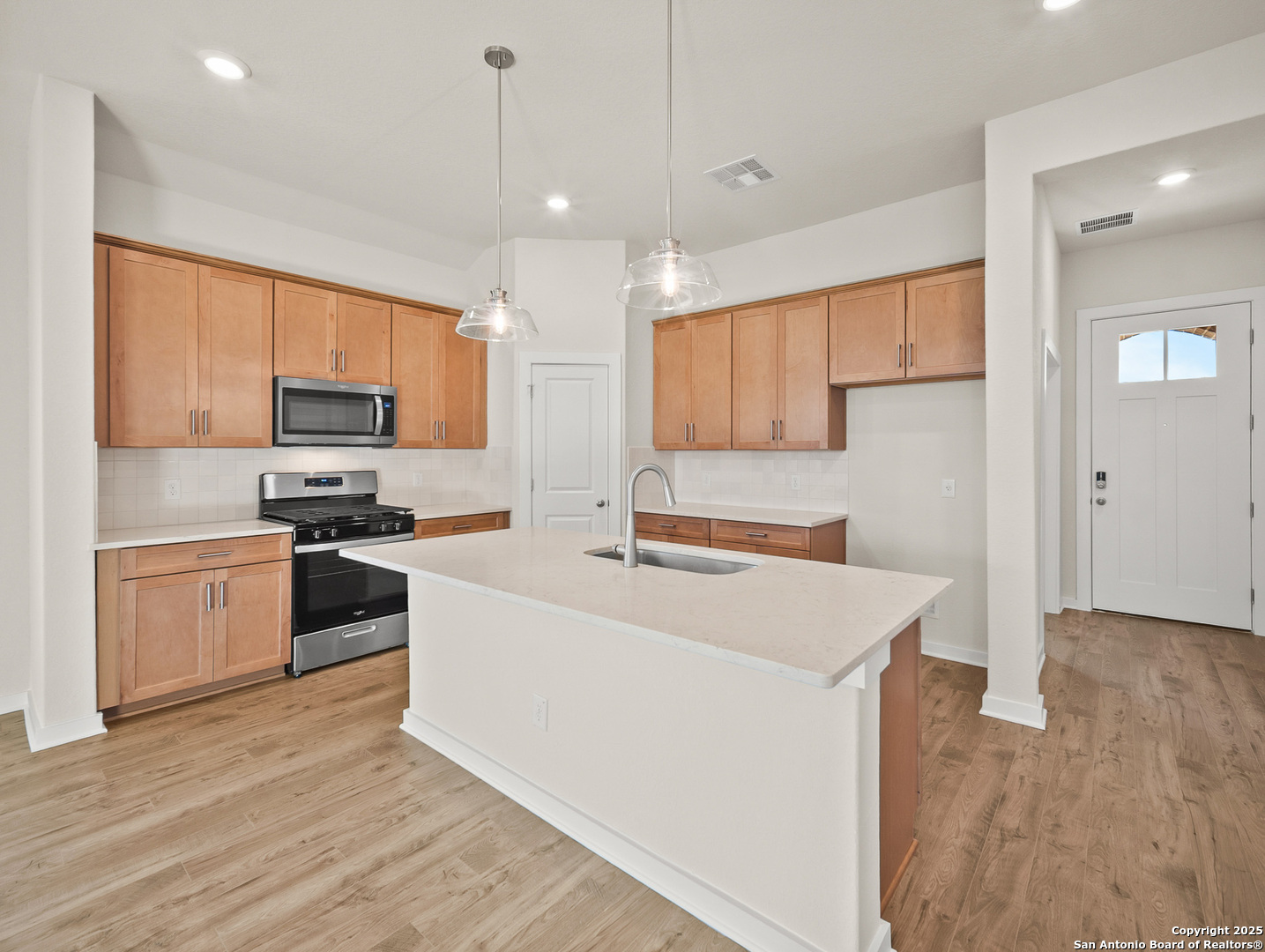 Welcome to 14438 Inspiration Point, a beautiful residential home located in the heart of San Antonio built by Beazer Homes. This stunning home features 4 beds and 2.5 baths, offering ample space for comfortable living. The 2,256 sq ft layout includes a spacious living room, a modern kitchen with stainless steel appliances, and a cozy dining area. The primary suite boasts an en-suite bath, while the additional bedrooms provide plenty of room for family or guests. Step outside to enjoy the covered patio, perfect for entertaining or relaxing. Additional highlights include spray foam insulation and a 2-car Garage. Located in the desirable Morgan Meadows neighborhood, this home is close to Lackland Air Force Base, Northside ISD schools, and easy access to Loop 1604 & Hwy 151, making it an ideal choice for those seeking convenience and comfort. Beazer Homes is proud to be America's #1 Energy-Efficient homebuilder. In 2024, our homes achieved an average net HERS score of 37 (including solar) and a gross HERS score of 42-the lowest publicly reported scores among the top 30 U.S. homebuilders identified by Builder Magazine's Top 100 list (ranked by 2024 closings).Take advantage of our special buyer incentives which may include closing costs, design studio upgrades, FLEX dollars, and more. Reach out to us today to learn more about how you can benefit from these exclusive offers. Pictures are for illustrative purposes only.