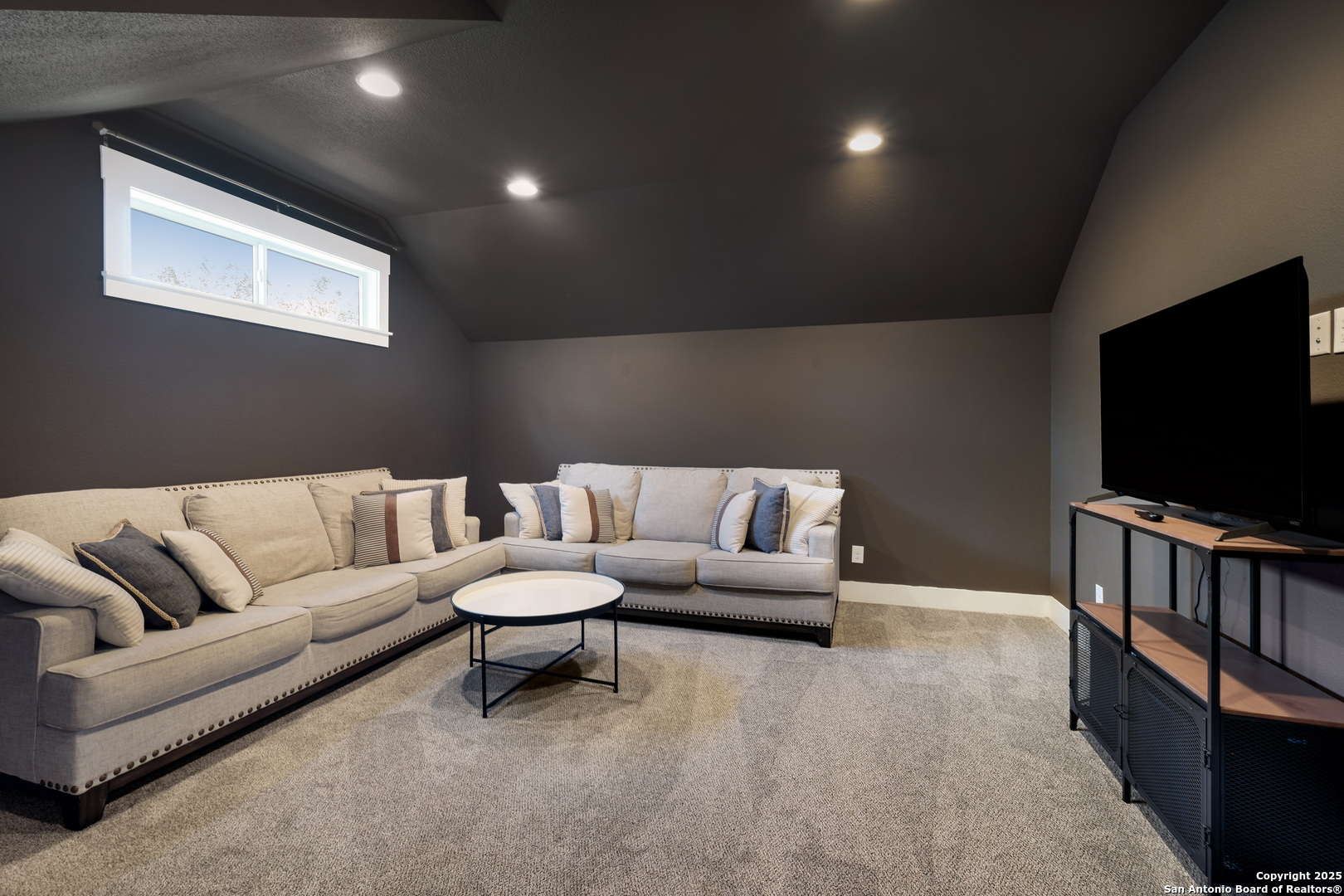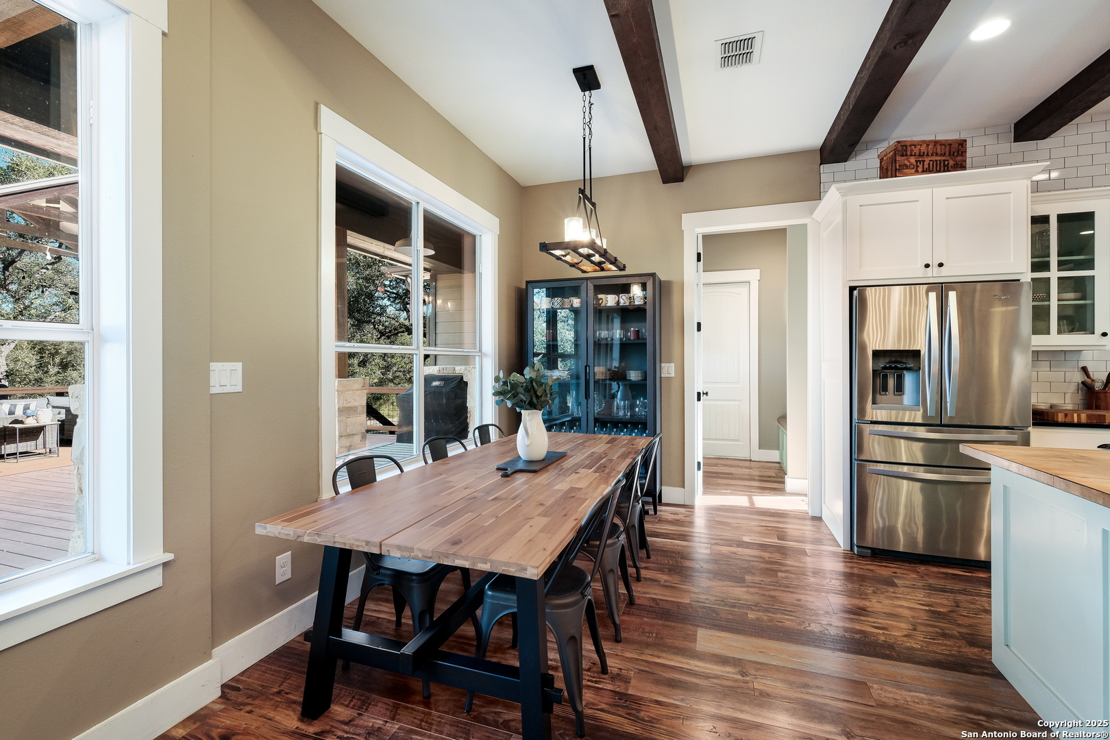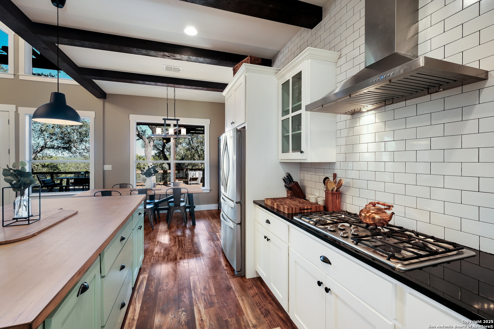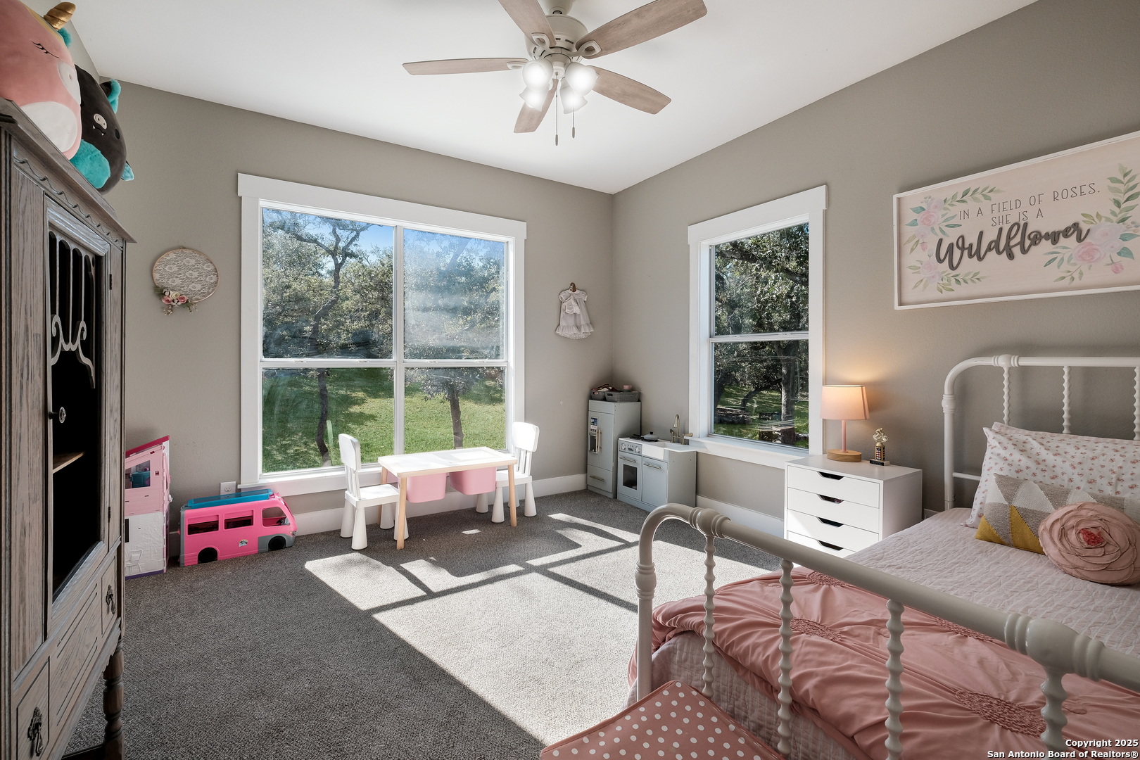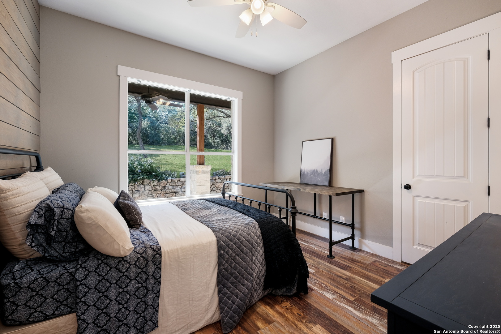 This one-of-a-kind property combines the best of Hill Country charm with thoughtful upgrades at every turn. Set on 4.85 acres and back nearly 600 feet from the road for complete privacy, this home welcomes you with hill country views, expansive covered porches, freshly painted exteriors, and over 1,000 square feet of outdoor living space designed for gathering and unwinding. Inside, custom wood ceilings, exposed beams, and an oversized chandelier set the tone for a home that feels refined yet relaxed. The full masonry fireplace with a wood stove creates a cozy focal point for family nights, while the dedicated movie room brings big-screen comfort right to your doorstep. Outside, you'll find everything you need for both play and peace - a cabana-covered deck, a custom fire pit area, a stock tank pool with pump, and a large playground for the kids. Practical features make life easier too: spray foam insulation in the house and garage, a newly serviced septic and water softener, and a full 250-gallon propane tank ready for use. The oversized insulated garage (20x8 door) and multiple attic storage areas offer plenty of space for tools, toys, and gear. With a private well, 2,500-gallon storage tank, gutters, and a recently serviced setup from top to bottom, this property is as efficient as it is beautiful - a perfect balance of luxury living and laid-back country comfort.