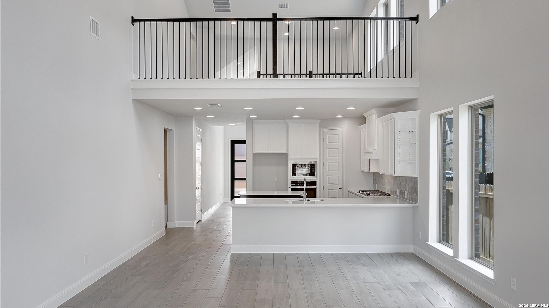 The front porch opens into the two-story entryway. A private home office with French doors is right off the entrance. Past the stairwell you enter the kitchen which features a corner walk-in pantry, 5-burner gas cooktop and an island with built-in seating. The dining area connects the space with the family room boasting a wall of windows with access to the extended covered backyard patio. The primary bedroom is highlighted with a wall of windows. French doors open into the primary suite featuring dual vanities, a garden tub, a glass enclosed shower and oversized walk-in closet. A private guest suite with close access to the utility room located across the kitchen area. Upstairs you are greeted by a large game room with ample natural light. Secondary bedrooms with walk-in closets and a full bathroom complete the second level. Landscaping features a 5-zone sprinkler system. The mud room is located off the two-car garage.