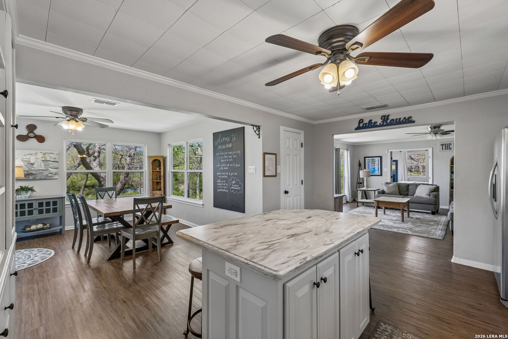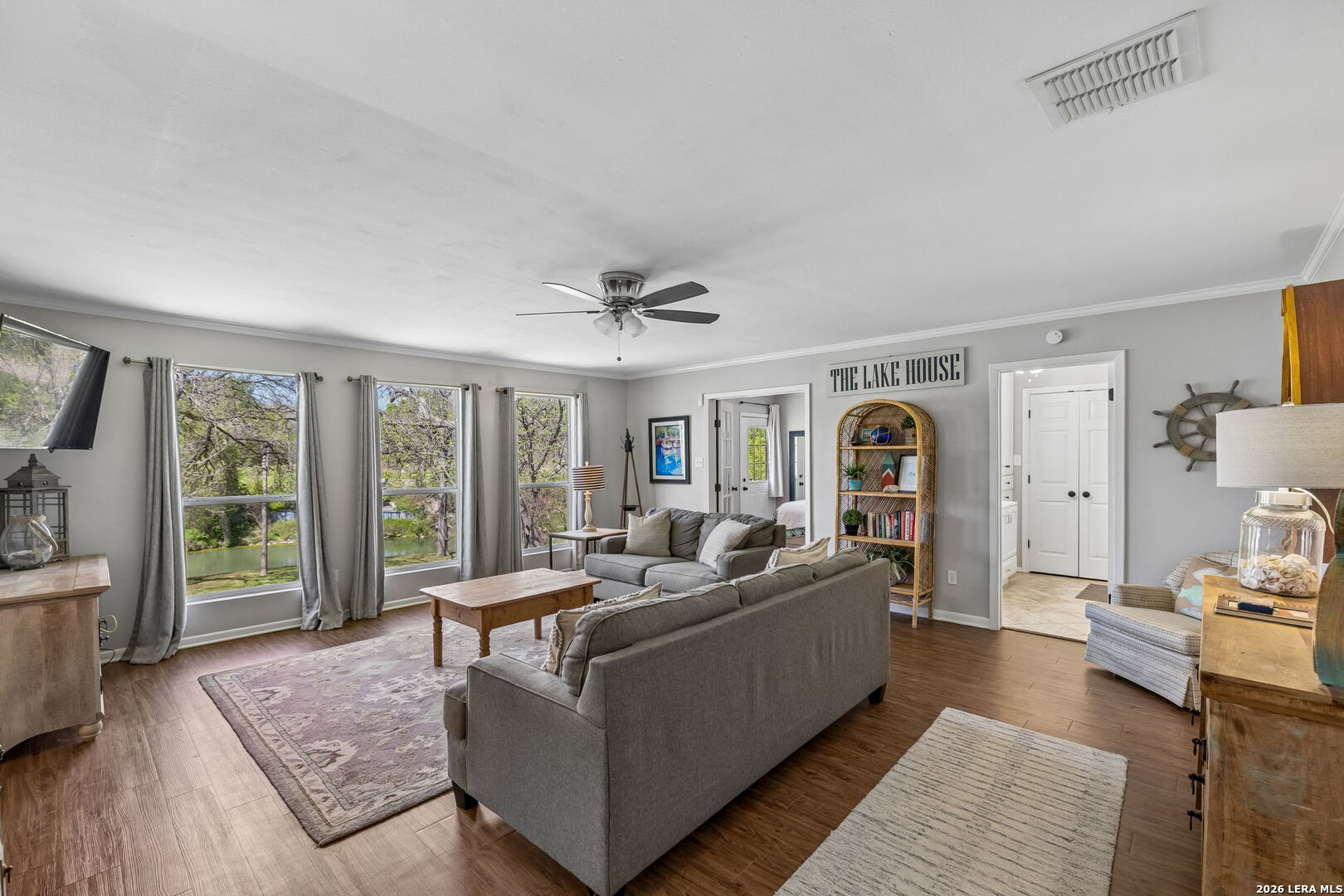 215' of improved Meadow Lake shoreline. Spacious yard. Waterfront opportunity with momentum. This property delivers the kind of usable waterfront buyers are searching for-featuring a beach-entry shoreline and dock area ideal for boating, fishing, swimming, and everyday lake enjoyment. With continued progress on the Meadow Lake dam project, interest in lakefront property is steadily increasing, making locations like this especially appealing. The outdoor setting is wide, functional, and built for gatherings. A gently sloping lawn leads directly to the water, shaded by mature trees and offering plenty of room for recreation or entertaining. A brick walkway connects the home to the shoreline, while features like a sprinkler system, outdoor lighting, RV hookup, and multiple storage buildings add convenience and flexibility. Inside, the elevated home design takes advantage of scenic Meadow Lake views and provides a bright, open layout connecting the living, dining, and kitchen areas. Large windows bring in natural light and showcase the backyard and water. The kitchen includes a center island with seating, gas cooktop, custom cabinetry, and walk-in pantry, supporting both daily living and hosting. Located on a quiet cul-de-sac with ample outdoor space, this property combines shoreline access, functional land, and long-term potential-delivering the kind of Meadow Lake lifestyle buyers continue to pursue.