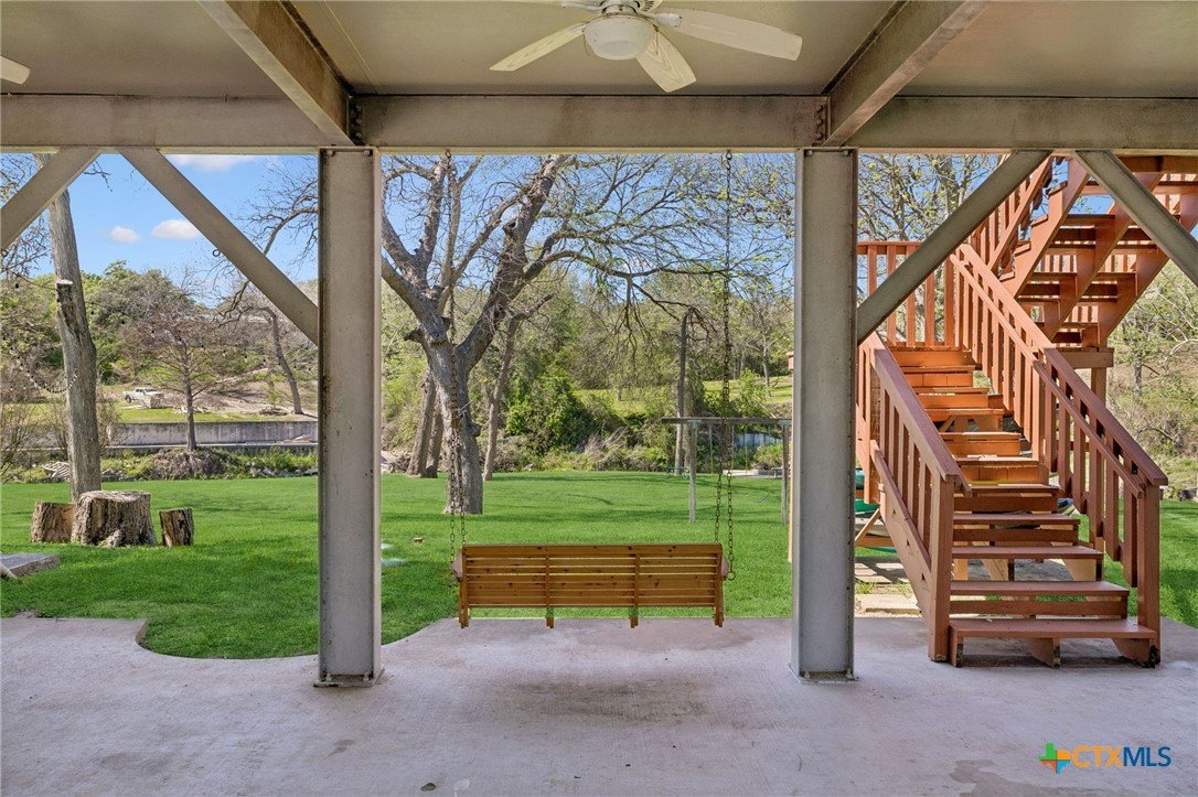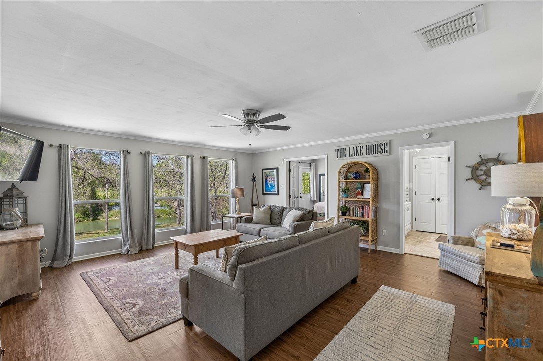 215’ of shoreline. Wide yard. Meadow Lake living done right. This property delivers the kind of usable waterfront buyers want—featuring improved shoreline with beach entry and dock area ready for fishing, boating, swimming, and everyday time on the water. With the Meadow Lake dam project continuing to move forward, demand for quality waterfront like this is gaining momentum. The backyard is the centerpiece. A gently sloping lawn stretches from the home to the lake, shaded by mature trees and designed for real outdoor living. Spend evenings around the fire pit, host gatherings in the open green space, or relax under the expansive covered outdoor area beneath the home. A brick pathway leads directly to the shoreline, while outdoor lighting, sprinkler system, RV hookup, and multiple storage buildings add convenience and flexibility. Inside, the elevated design captures peaceful lake views and keeps the layout bright and connected. Large windows frame the backyard and water, while the kitchen offers a center island with bar seating, gas cooktop, custom cabinetry, and walk-in pantry—ready for daily living or entertaining. Quiet cul-de-sac. Functional shoreline. Room to spread out. This is Meadow Lake waterfront built for weekends outside and the lifestyle people move here for.