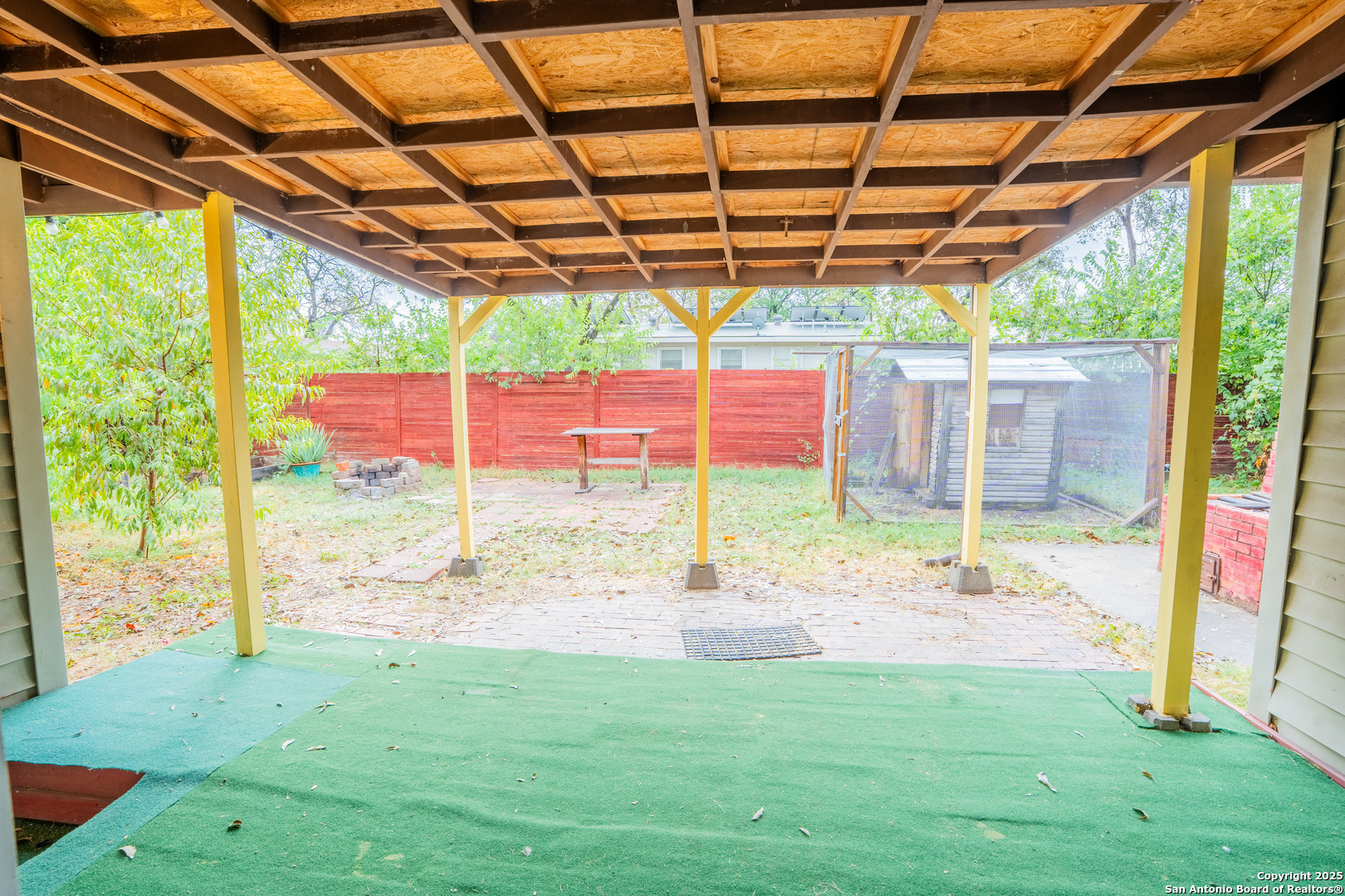 Charming 4-bedroom, 2-bath home offering 1,855 sq. ft. of comfortable living space with timeless character. Built in 1955, this property features original wood flooring throughout, built-in shelving, and two spacious living areas that provide flexibility for entertaining or everyday living. The dining area opens to a covered back patio overlooking a large yard complete with a chicken coop - perfect for those who enjoy outdoor living or hobby farming. A wood-burning stove adds warmth and rustic charm, complemented by a durable 5-year-old metal roof. Washer, dryer, and refrigerator convey with the sale. Conveniently located near Loop 410 with easy access to major streets, shopping, and dining.