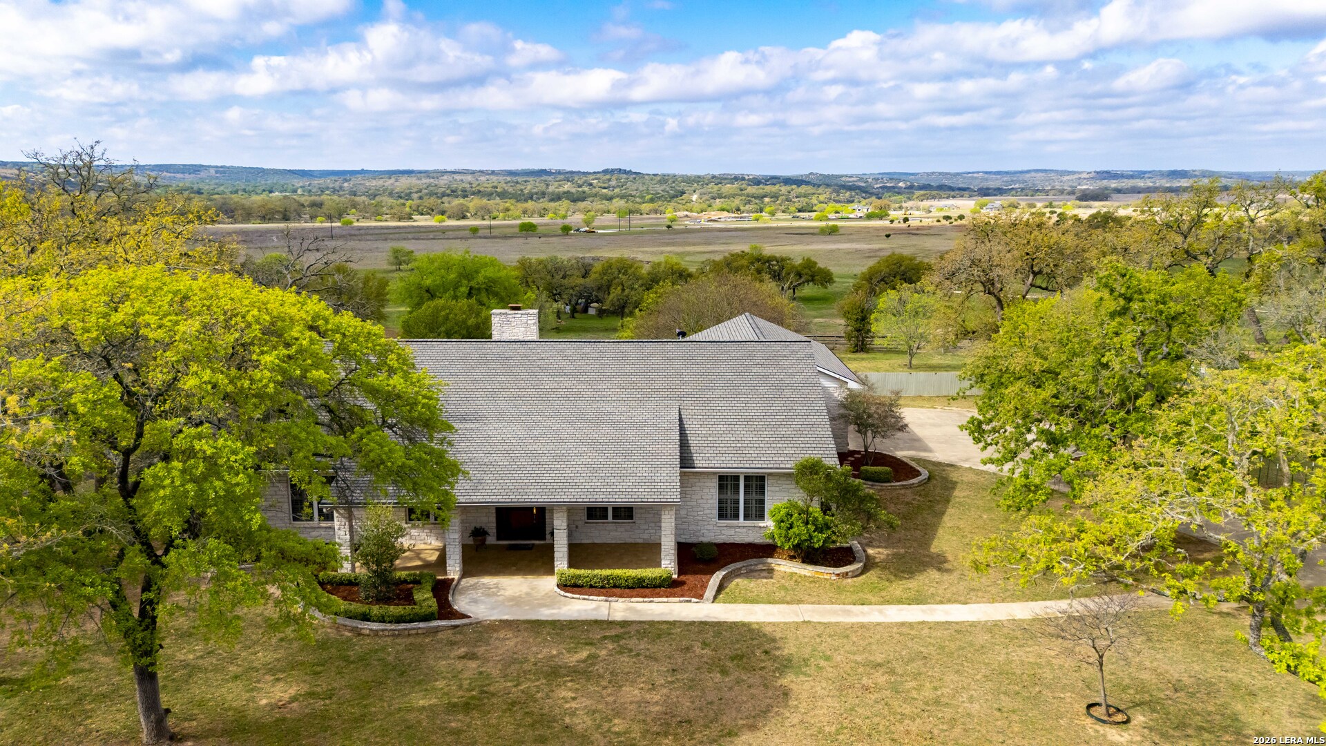 Welcome to your serene country retreat! This attractive, spacious one-story home sits on 1.81 picturesque acres, offering a peaceful, pastoral setting with room to breathe. A stunning mesquite front door warmly welcomes you inside to a thoughtfully designed layout featuring 3 bedrooms, 2 baths, and a dedicated office-perfect for work or quiet study. The open living spaces are filled with natural light from energy-efficient double pane windows, creating a bright yet cozy atmosphere. The kitchen and living areas flow seamlessly, ideal for both everyday living and entertaining. Step outside to a lovely patio where a gorgeous, custom-built copper fountain sets the tone for relaxation and outdoor enjoyment. The property also includes a fenced dog yard for your furry companions and a secure locking gun closet for added peace of mind. With a spacious 3-car garage and plenty of land to enjoy, this home perfectly blends comfort, functionality, and tranquil country charm.