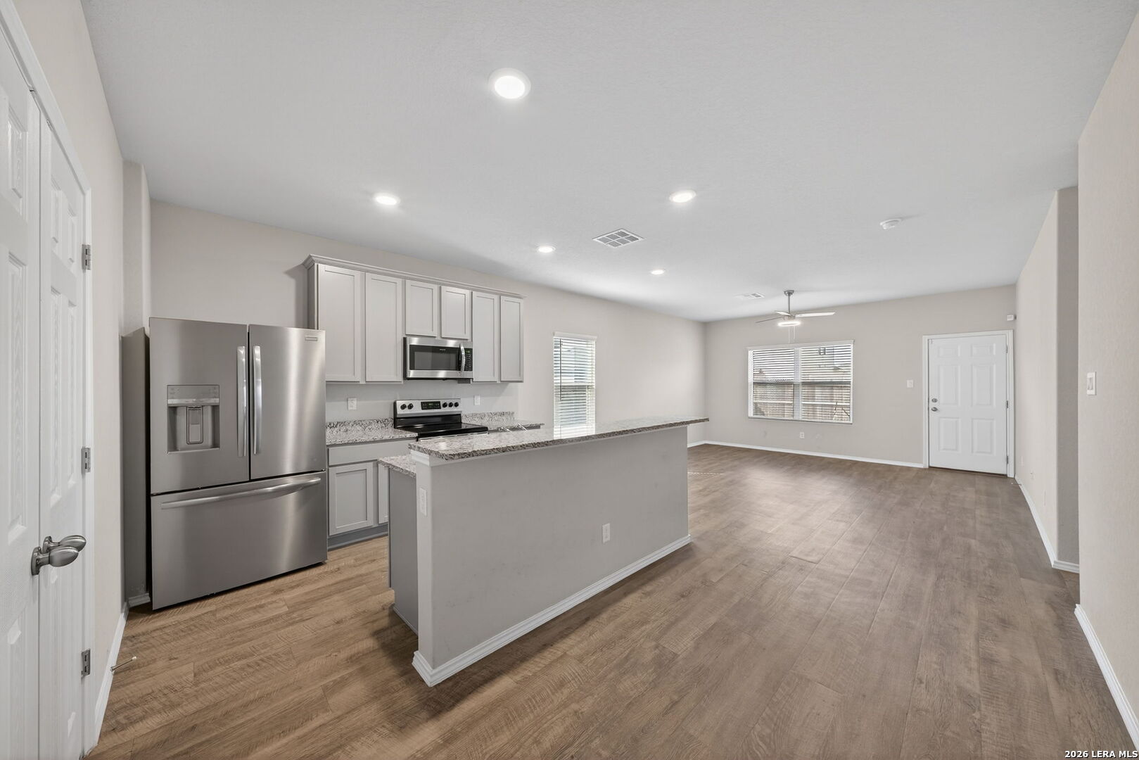 Welcome to 14634 Hackamore Way in the growing community of Butterfield Ranch-where you finally get that "I'm not living on top of my neighbors" feeling without sacrificing convenience. This single-story 4-bedroom, 2-bath home checks all the boxes buyers are scrolling for at 11:30pm thinking, "Yep... this might be the one." Featuring an open-concept layout, you've got a spacious living area that flows right into the dining and kitchen space-perfect for entertaining, hosting, or just pretending you cook more than you actually do. The kitchen brings the goods with energy-efficient appliances, generous counter space, and a pantry big enough to hide snacks from the kids (or your spouse... no judgment here). The split-bedroom layout gives everyone their own space, while the primary suite offers the kind of comfort you actually look forward to coming home to. Step outside and enjoy a neighborhood that's known for its peaceful atmosphere, community feel, and room to breathe-something that's getting harder and harder to find around San Antonio. Butterfield Ranch offers a lifestyle where you can take a walk, meet your neighbors, and not feel like you're parked in a sardine can subdivision. And let's talk location-tucked away in Elmendorf, you're just a short drive to San Antonio, giving you access to work, dining, and entertainment while still enjoying that quieter, more relaxed pace of life. Whether you're a first-time buyer, upgrading your space, or looking for a solid investment-this one hits that sweet spot of affordability, functionality, and long-term upside. Bottom line... homes like this don't sit around. So if you're thinking about it, don't overthink it-come see it before someone else beats you to it.