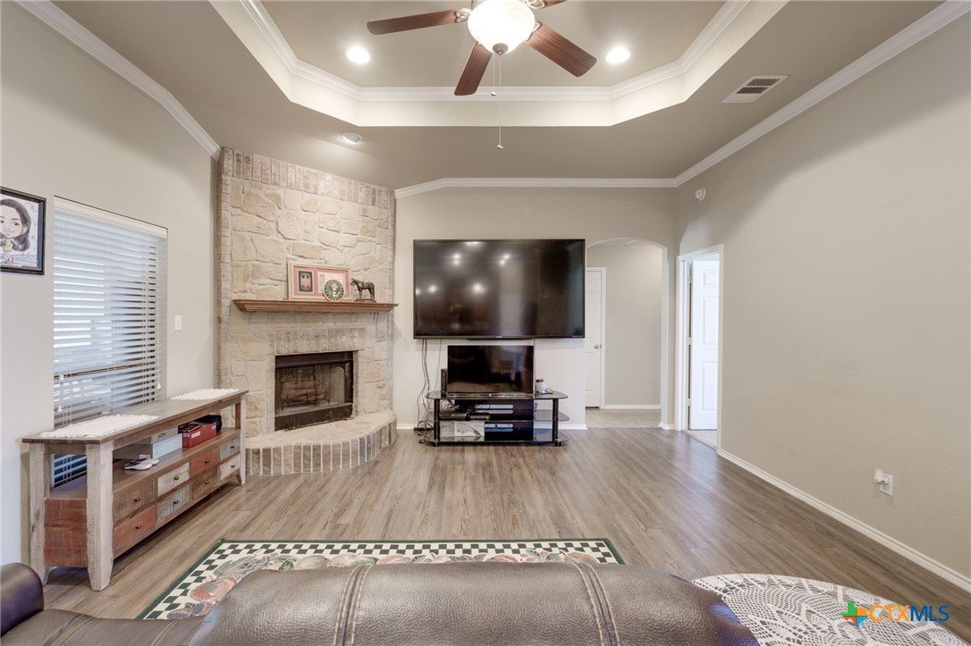 Looking for a place in the country with some land? Well, this property may be what you are looking for! This beautiful 4BR and 2BA home in Kempner is on 2.06 acres with a private gated drive. The back section of the property is fenced off and once held horses. Entering into the home you will pass through a large foyer and into the spacious family room. Your dream kitchen boasts granite countertops, a pantry, and an enormous breakfast bar. The kitchen is open to the family room and the dining room. A flex room is located next to the foyer, and can be used as an extra living area, office, dining, or a bedroom. The enclosed patio is currently being used as a “karaoke” room. The bedrooms are all generous in size. The master ensuite has two separate vanities, a large shower, and a good sized closet. This home is located in the Lampasas Independent School District. Call your favorite realtor today to see this home!
