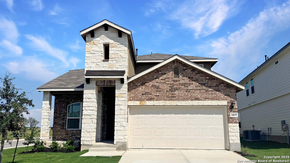 Introducing The Stallion, a two-story home featured at Riverstone at Westpointe in San Antonio, TX. This floor plan offers 3 classic front exteriors, a 2-car garage and a fully yard landscaping package, ensuring that your home looks its best every single day. Inside this 4 bedroom, 3.5 bath home, you'll find 3284 square feet of open-concept living. The first floor offers a welcoming entry way that opens to a secluded study room adjacent to a stunning formal dining room. A private hallway off the entry connects a powder bath and utility room, both with tile floors. A spacious eat-in kitchen and breakfast nook are located past the dining room and feature stainless steel appliances, beautiful quartz countertops, a natural gas cooking range and a kitchen island with a breakfast bar and roomy, single basin sink. Your kitchen flows seamlessly into your breakfast nook and a living room with large windows and natural light. The private, main bedroom suite is an oasis, featuring large windows, carpet flooring, a ceiling fan and an attached ensuite bathroom. Enjoy dual vanity sinks, a private room for the toilet, a tiled walk-in shower and a walk-in closet with plenty of space! The second floor opens to a game room with plenty of natural light and space to play. Your secondary bedrooms are located upstairs as well and all feature walk-in closets. Bedroom 2 even has its own ensuite bathroom and is perfect for out-of-town guests in need of added privacy. A standout feature of The Stallion is the media room, located off the game room and provides plenty of entertainment space for television or movie lovers. Additional features include tall 9-foot ceilings, 2-inch faux wood blinds throughout the home, pre-plumb for water softener loop, hard surface flooring at the entry, downstairs, halls, living room, kitchen, and dining/breakfast area, and more! You'll enjoy added security in your new DR Horton home with our Home is Connected features. Using one central hub that talks to all the devices in your home, you can control the lights, thermostat and locks, all from your cellular device.