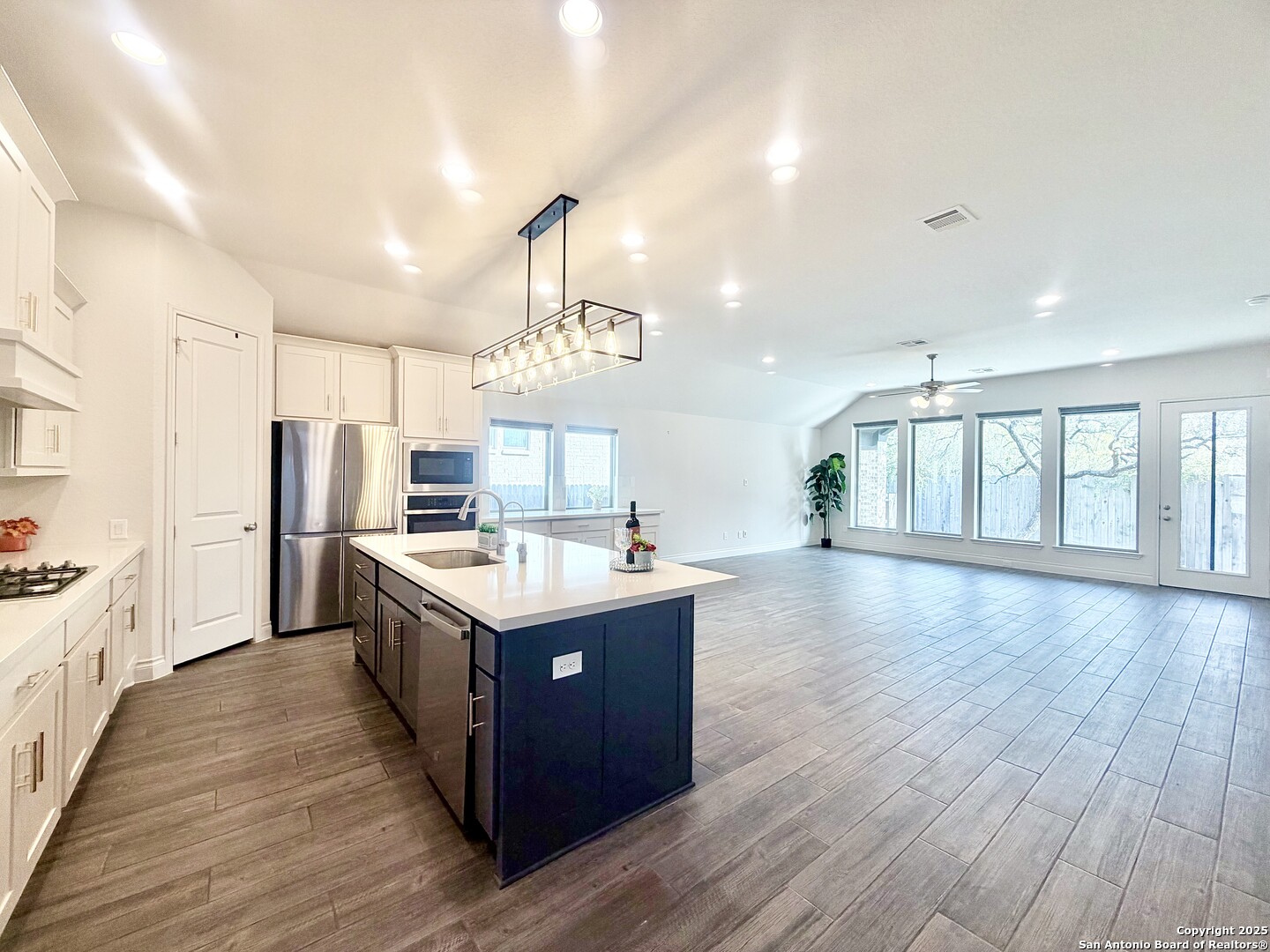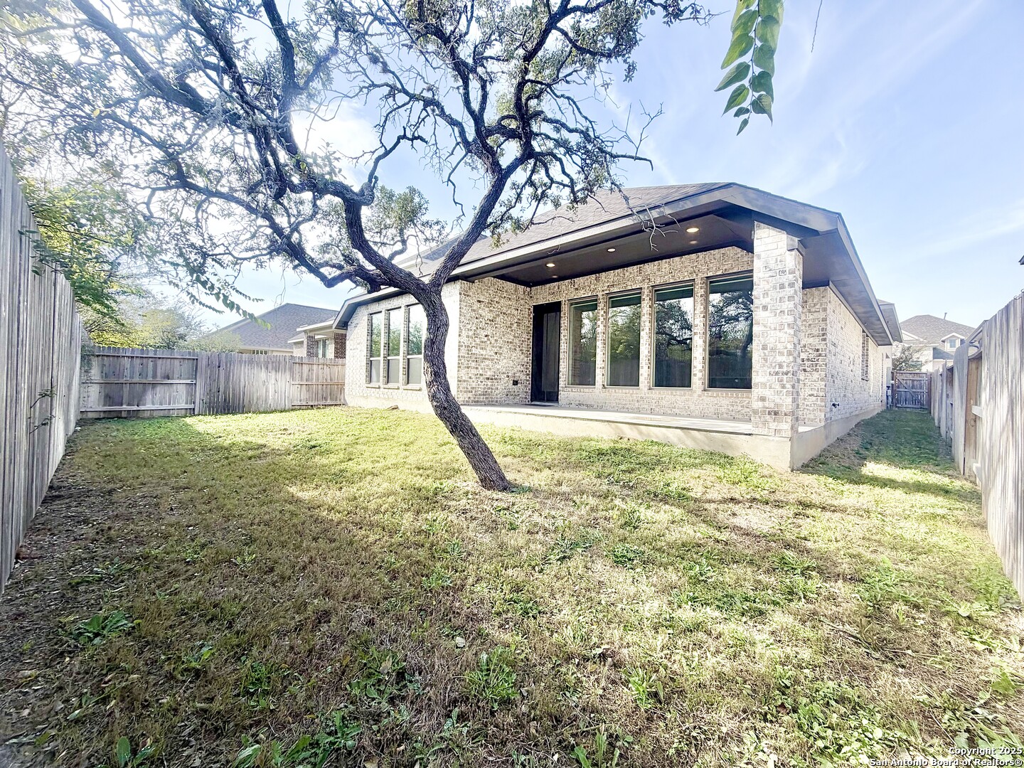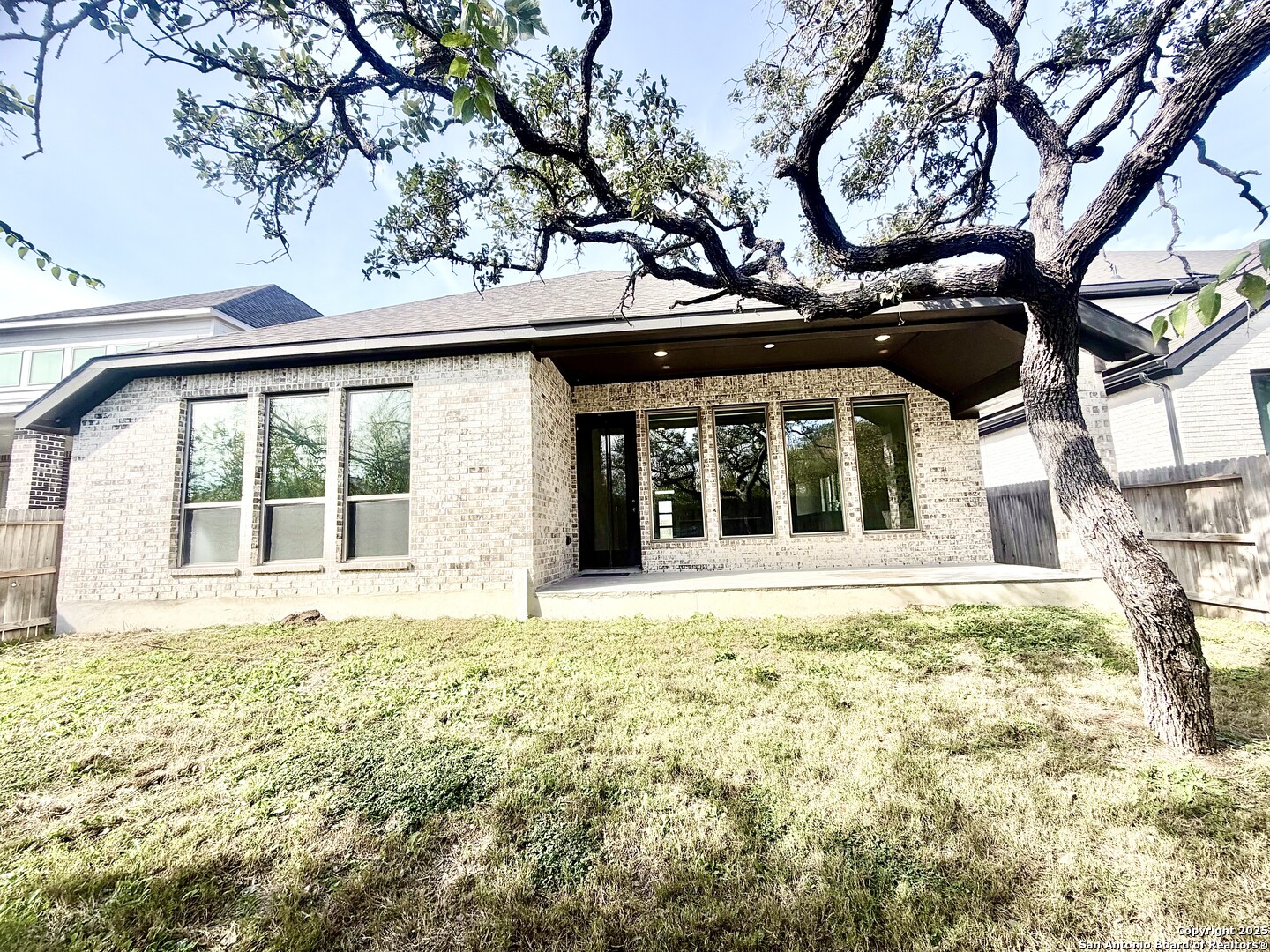 Stunning One-Story Perry Home Built in 2022! This beautifully designed 4-bedroom, 3-bath home offers modern elegance, thoughtful upgrades, and a functional open-concept layout. Impressive curb appeal with lush landscaping and a built-in irrigation system welcomes you home. The extended entry with soaring 13-foot ceilings leads to a spacious kitchen, dining, and family room filled with natural light from a wall of windows. The modern island kitchen features sleek cabinetry, generous counter space, a corner walk-in pantry, and an inviting island with built-in seating-perfect for everyday living and entertaining. A game room with French doors is conveniently located near the kitchen, ideal for a playroom, media room, or home office. The private primary suite offers a double-door entry and a spa-like bath with dual vanities, a garden tub, a separate glass-enclosed shower, and two large walk-in closets. Secondary bedrooms also include walk-in closets for ample storage. Enjoy outdoor living on the covered backyard patio, and added convenience with a mudroom off the two-car garage. Upgrades & Features Include: NO carpet throughout, washer, dryer, refrigerator, water softener, electric blinds, beautiful light fixtures, and numerous upgrades throughout. Located in a desirable community with resort-style amenities including a pool, clubhouse, and playground. Convenient access to Loop 1604, HWY 151, Westover Medical Area, Santa Rosa Hospital, Lackland AFB, and the Toyota manufacturing plant. This home truly offers style, comfort, and convenience-don't miss this exceptional opportunity!