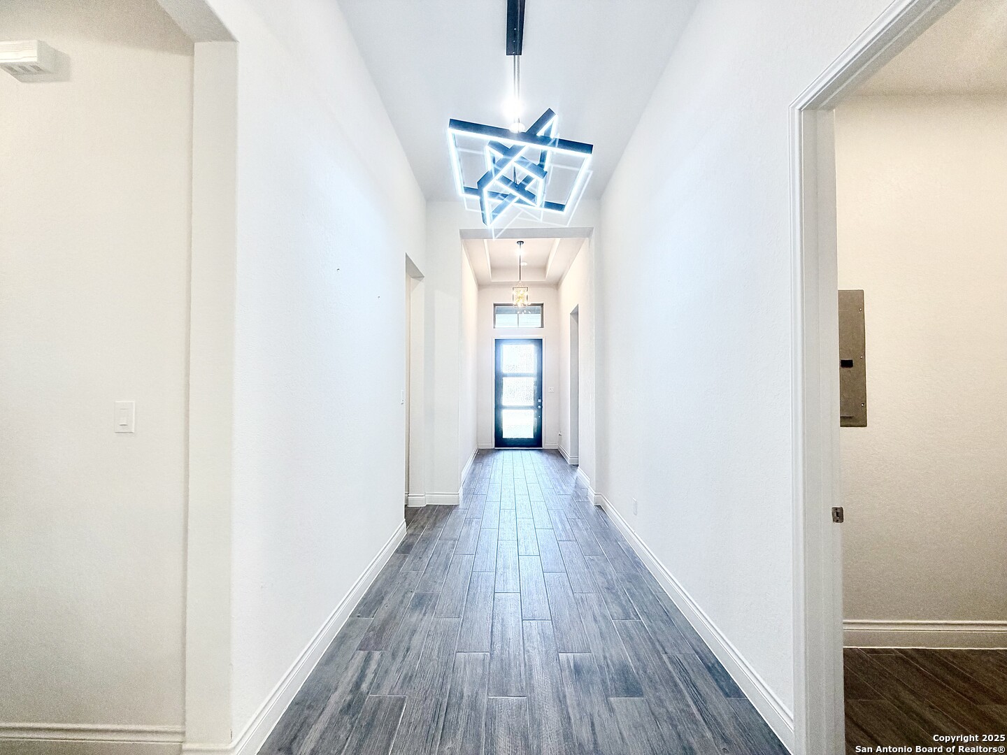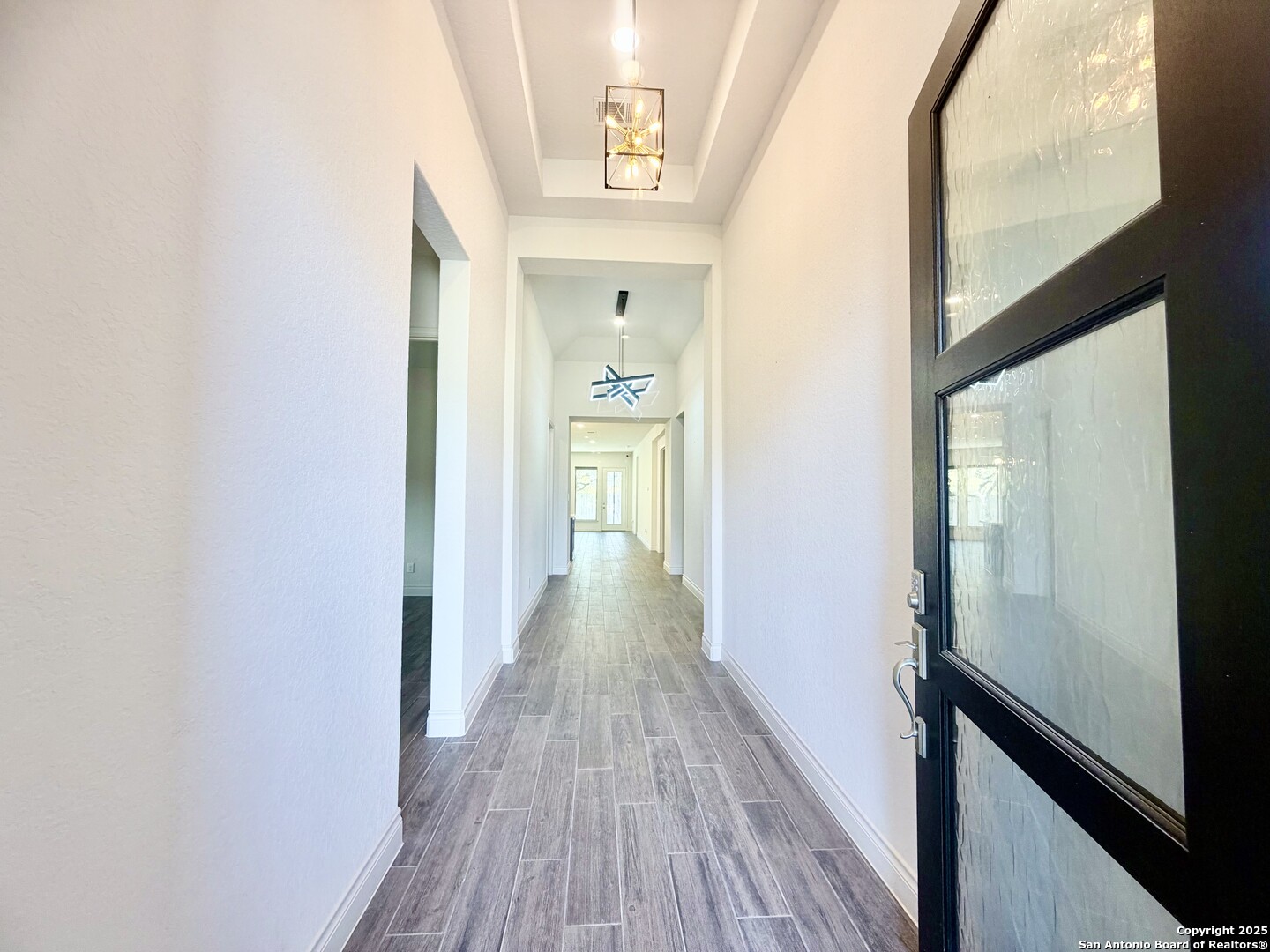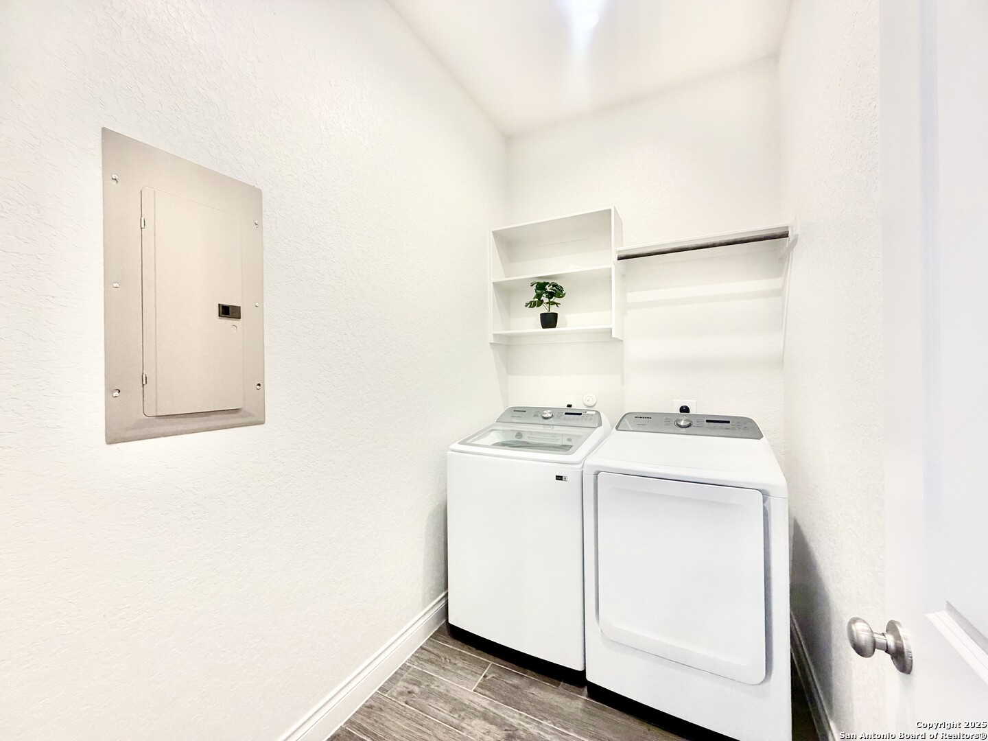 Stunning One-Story Perry Home Built in 2022! This beautifully designed 4-bedroom, 3-bath home offers modern elegance, thoughtful upgrades, and a functional open-concept layout. Impressive curb appeal with lush landscaping and a built-in irrigation system welcomes you home. The extended entry with soaring 13-foot ceilings leads to a spacious kitchen, dining, and family room filled with natural light from a wall of windows. The modern island kitchen features sleek cabinetry, generous counter space, a corner walk-in pantry, and an inviting island with built-in seating-perfect for everyday living and entertaining. A game room with French doors is conveniently located near the kitchen, ideal for a playroom, media room, or home office. The private primary suite offers a double-door entry and a spa-like bath with dual vanities, a garden tub, a separate glass-enclosed shower, and two large walk-in closets. Secondary bedrooms also include walk-in closets for ample storage. Enjoy outdoor living on the covered backyard patio, and added convenience with a mudroom off the two-car garage. Upgrades & Features Include: NO carpet throughout, washer, dryer, refrigerator, water softener, electric blinds, beautiful light fixtures, and numerous upgrades throughout. Located in a desirable community with resort-style amenities including a pool, clubhouse, and playground. Convenient access to Loop 1604, HWY 151, Westover Medical Area, Santa Rosa Hospital, Lackland AFB, and the Toyota manufacturing plant. This home truly offers style, comfort, and convenience-don't miss this exceptional opportunity!