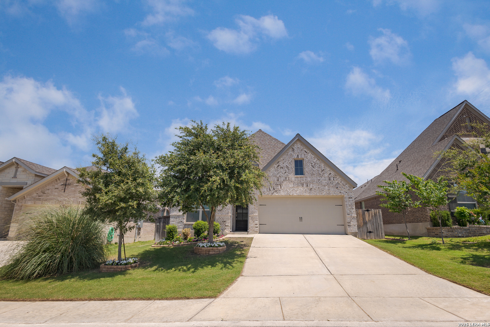 *OPEN HOUSE SAT & SUN 28/29 1PM-3PM* ASSUMABLE LOAN AVAILABLE @ 3.625%!! This home features a rare opportunity to assume the seller's low interest FHA loan- significantly below current market rates. Qualified buyers can take over the existing mortgage and save thousands over the life of the loan.** Welcome to this stunning Perry Home located just outside San Antonio city limits in the desirable Ladera community on the city's fast-growing Northwest side. Offering nearly 2,000 square feet of thoughtfully designed living space, this single-story gem features 4 spacious bedrooms, 2 full bathrooms, and a dedicated home office-ideal for remote work, homework sessions, or quiet focus time. At the heart of the home is a rare double island kitchen, creating the ultimate space for cooking, hosting, and connecting with guests. The open-concept layout flows seamlessly into the dining and living areas, making everyday living and entertaining both effortless and enjoyable. Additional highlights include:220-volt outlet in the garage for easy electric vehicle charging, Programmable permanent trim lighting on the front and partial sides of the home, easily customized via an app, A greenbelt lot offering added privacy and peaceful views, A large covered patio perfect for outdoor dining, BBQs, or relaxing evenings. The gated Ladera community offers resort-style living with amenities that include a sparkling pool, a playground, scenic jogging trails, and the newly added pickleball courts-perfect for staying active and social. Don't miss your chance to own this move-in ready, energy-efficient home loaded with upgrades and located just minutes from shopping, dining, schools, and more.