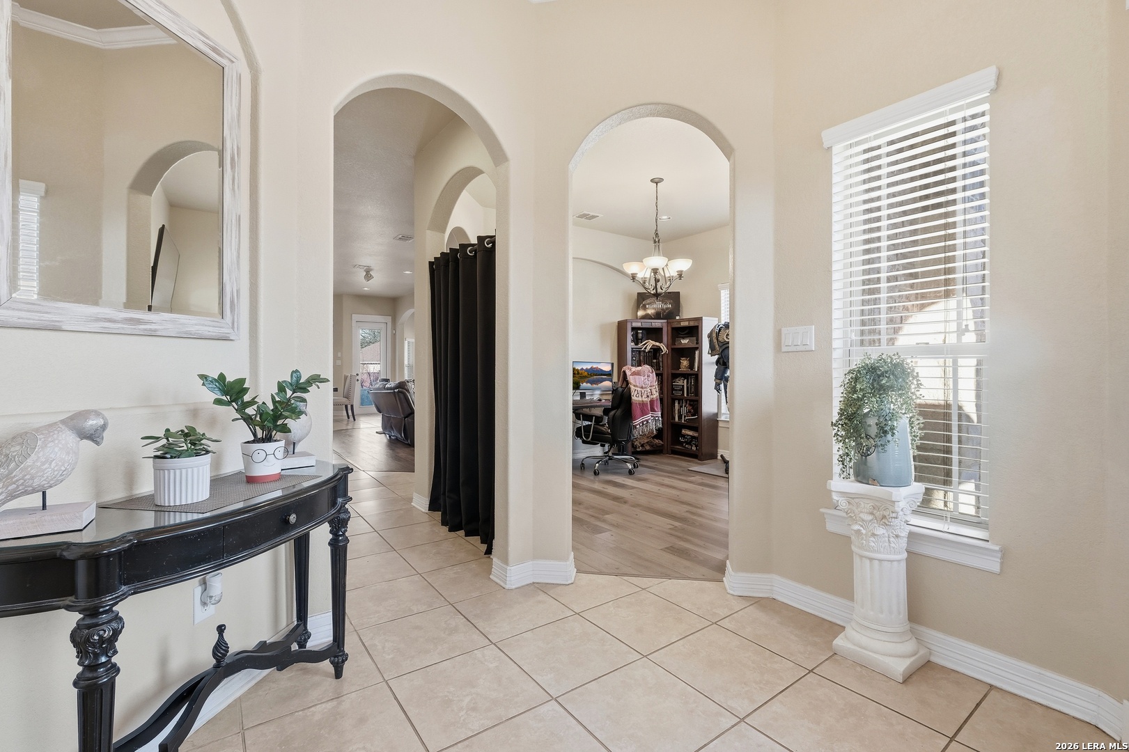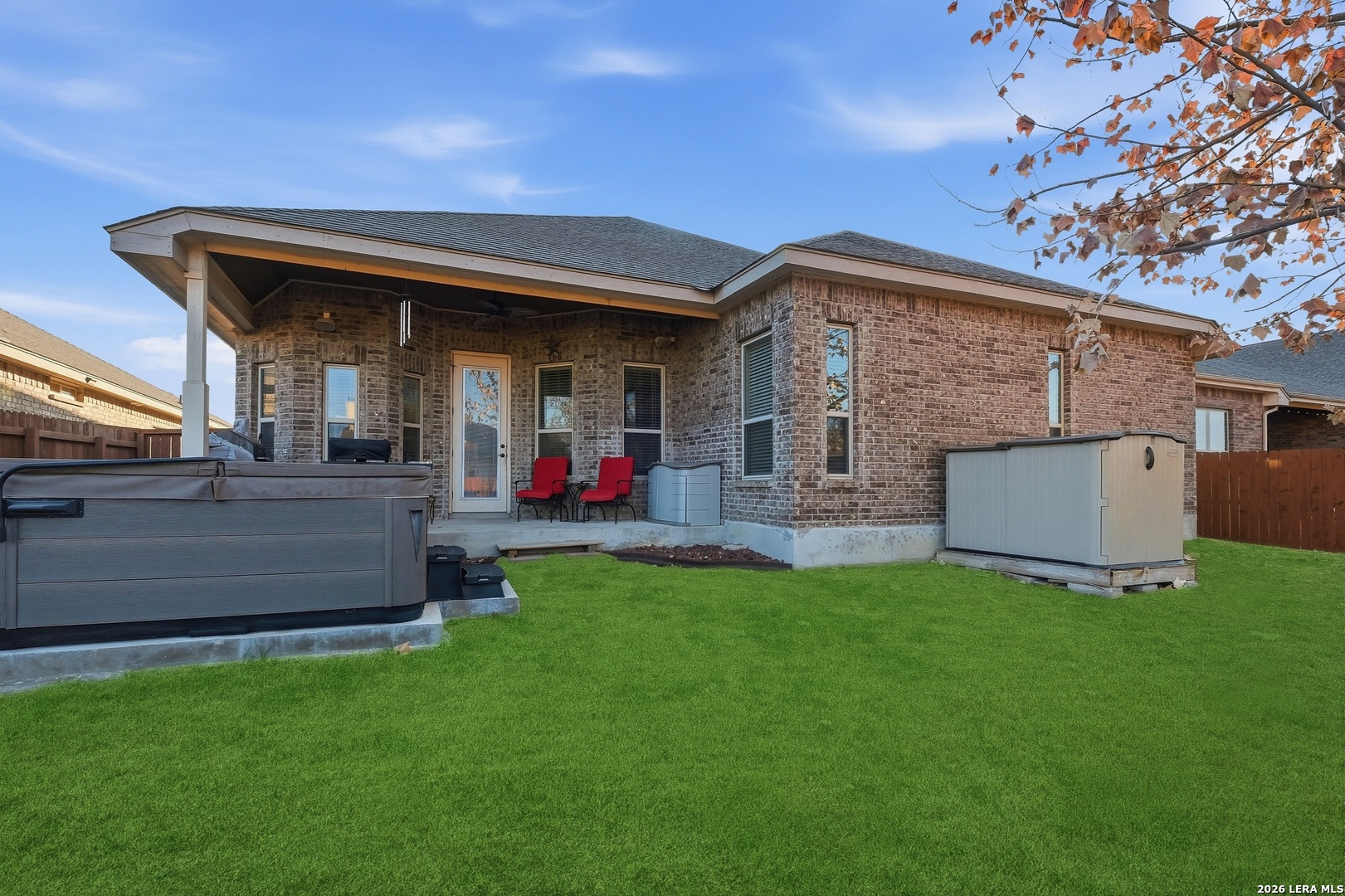 Paid-off solar panels, 9-foot ceilings and 9-foot doors throughout, a rare in-wall central vacuum system, and a recently professionally installed therapeutic hot tub make this home a standout from the moment you arrive. Flooring flows throughout with no carpet, creating a clean, modern feel that's easy to maintain. The insulated garage features a mini-split system, ideal for a gym, workshop, or flex space. The backyard backs to a greenbelt with no rear neighbors, offering privacy and a peaceful setting. Additional features include indoor and outdoor speakers, custom blinds, a sprinkler system, and mature peach and pear trees. The home has been clearly well maintained, something that's easy to recognize once you're inside. A thoughtfully designed home with standout features that are hard to find - schedule a showing and experience it in person.