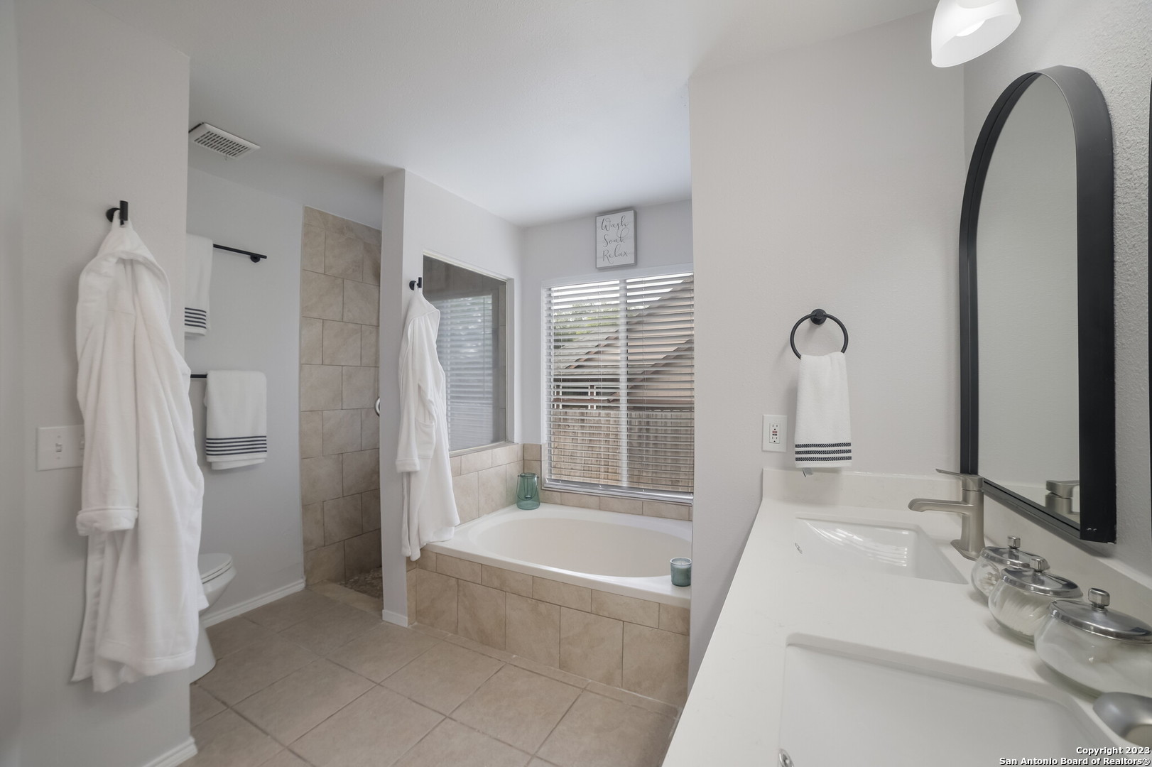 **** SPECIAL OFFERING 2 WEEKS FREE**** Newly remodeled 4 bedroom, 2 1/2 bath, with oversized 2 car garage is ready for your family! Enormous downstairs primary bedroom with large double vanity, soaker bath, and walk in shower is the perfect escape. The three large upstairs bedrooms offer plenty of room, even to all accommodate queen sized beds! This beautiful kitchen has stainless steel throughout and quartz countertops. The large backyard, with NO back neighbors, plenty of patio and entertaining space, is perfect. Tucked away on a quiet cul de