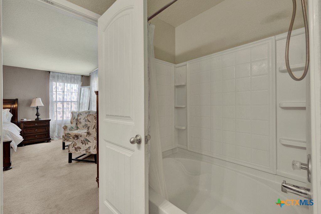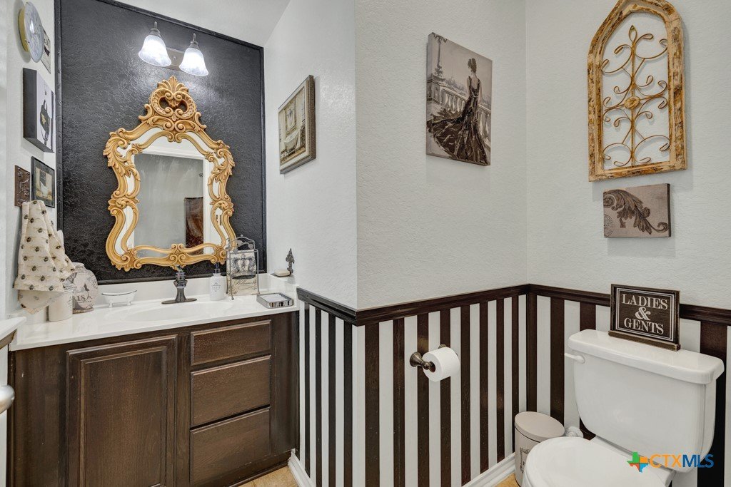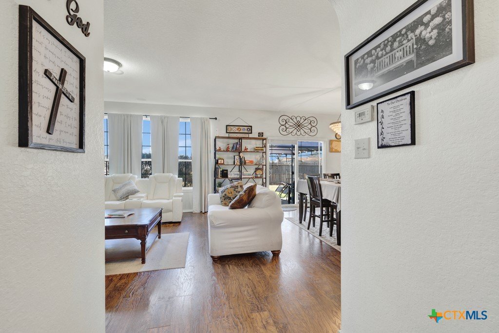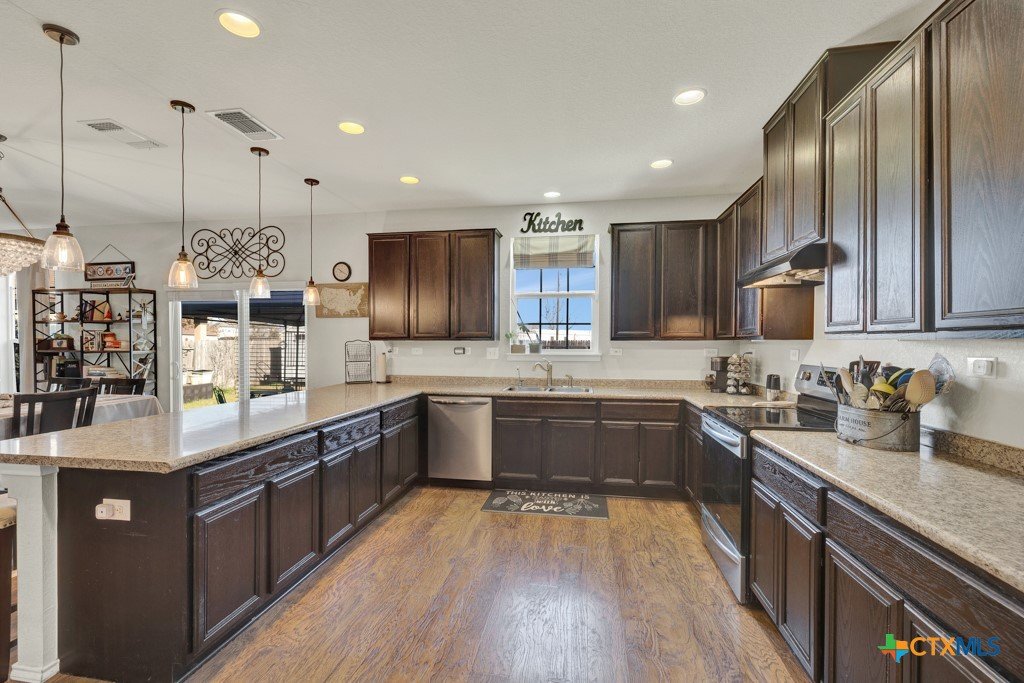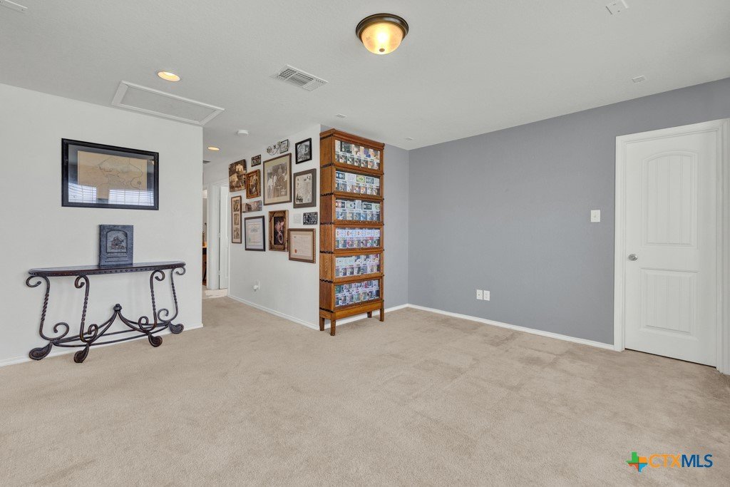 Located in New Braunfels, this 2,179-square-foot two-story home sits on a generously sized lot and features 3 bedrooms and 2.5 baths. The kitchen showcases a 3.5' x 10' peninsula with counter-height bar seating, and you'll have 9-foot ceilings, 42" cabinets, and room for a large dining table. Wood laminate and tile flooring grace the main level, while the open-concept living area is wired for surround sound, making entertaining effortless. Upstairs includes a 115-square-foot second living room with its own closet and a split-bedroom plan with the laundry adjacent for convenience. With no neighbors behind, the oversized backyard features an 18-foot-diameter above-ground pool, fruit and maple trees, and a patio slab for outdoor privacy and entertaining. The home is less than a mile from the Guadalupe River and close to shopping, medical facilities, downtown, and tubing. New Braunfels, known for Wurstfest, Schlitterbahn, Wassailfest, Nagelin's (the oldest bakery in Texas), and Gruene Hall (the oldest dance hall in Texas), was recognized in 2024 as one of the top 50 places to live in the United States.