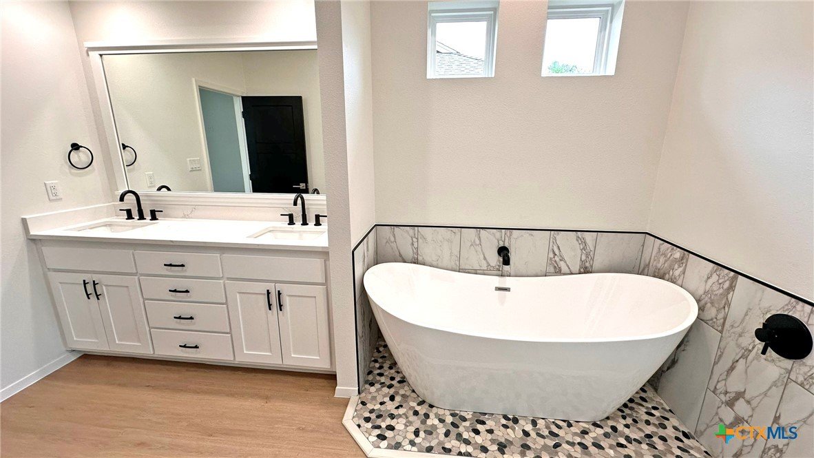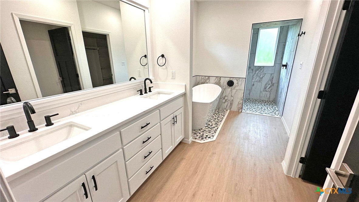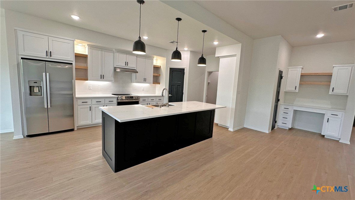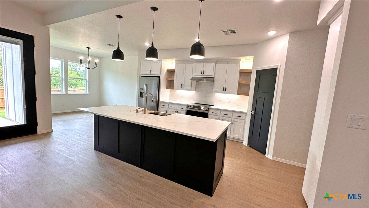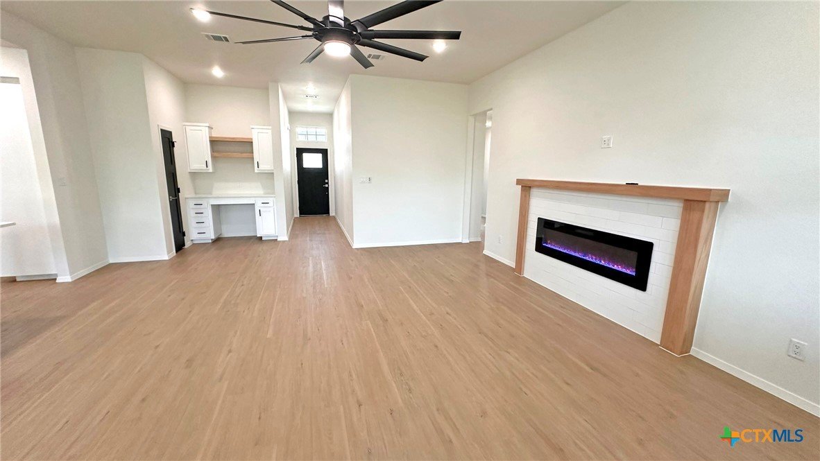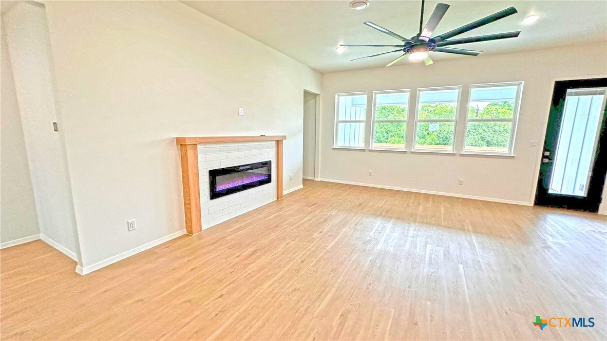 This beautifully designed 4-bedroom, 2-bathroom home offers 2,110 square feet of modern, energy-efficient living space. Built with 2x6 exterior walls and sealed envelope construction, this property ensures superior insulation and energy savings throughout the year. Featuring a high-efficiency heat pump and air conditioning, you'll enjoy year-round comfort while keeping utility bills low. The heart of the home boasts luxurious quartz countertops in the kitchen, complemented by sleek LVP flooring throughout. A spacious, walk-in pantry provides ample storage for all your essentials, while the open-concept living area includes an inviting electric fireplace, perfect for cozy nights at home. Designed with sustainability in mind, the home comes equipped with a whole-house dehumidification system, LED lighting throughout, and an energy-efficient water heater. Outside, enjoy a beautifully landscaped yard with sod, sprinklers, and well-maintained greenery. This property combines modern convenience, energy efficiency, and style in a location that’s perfect for making lasting memories. Don't miss your chance to call this remarkable home your own!