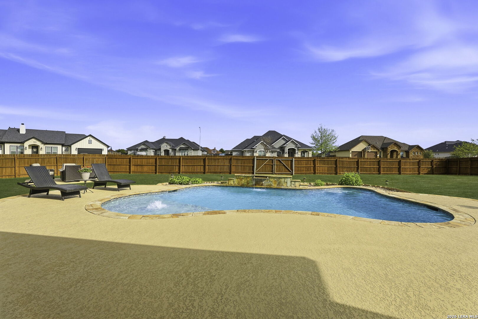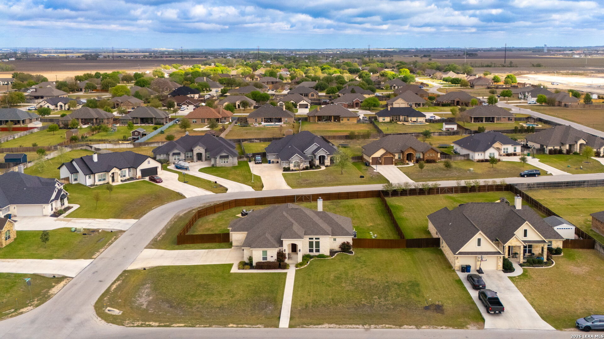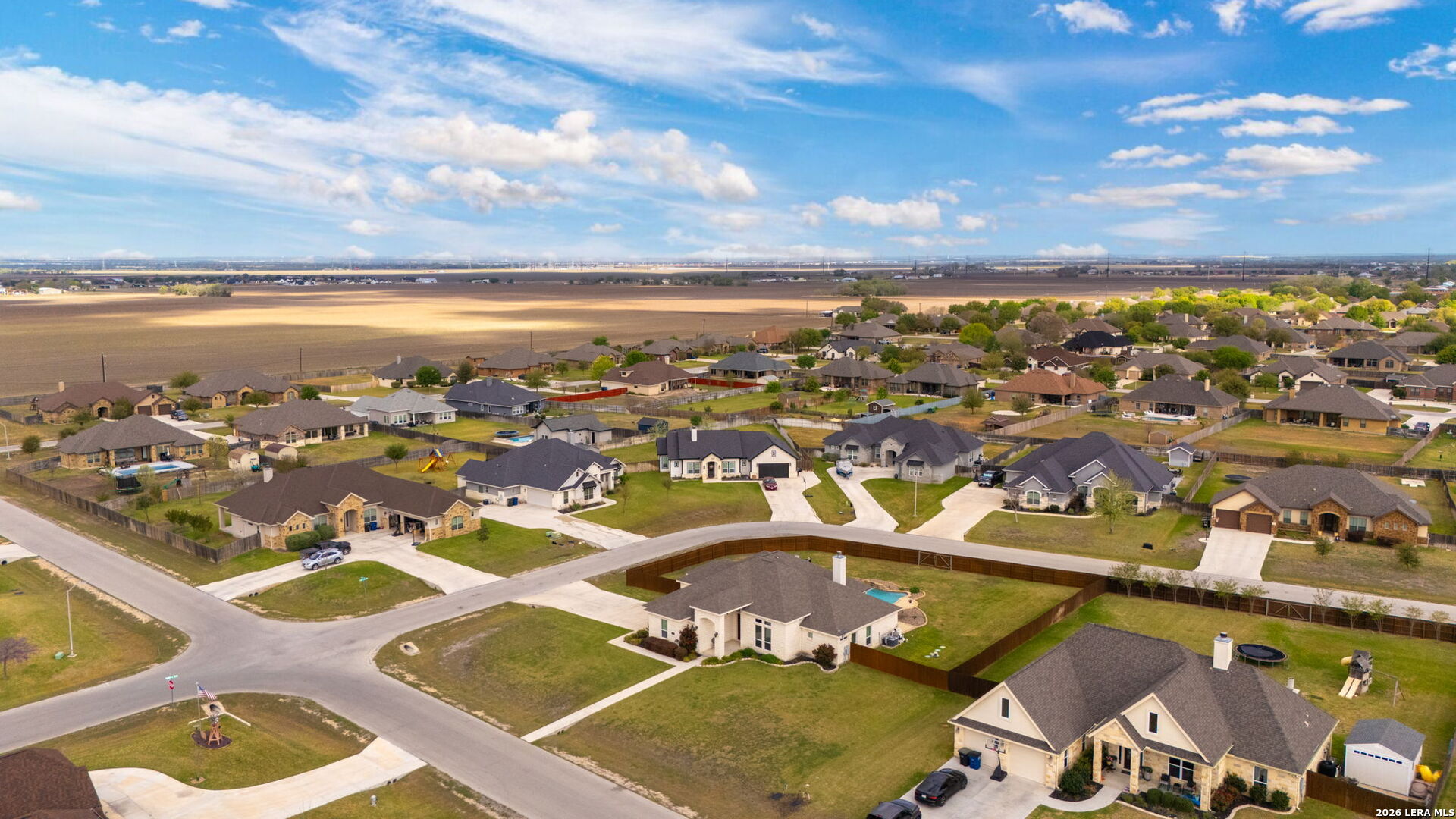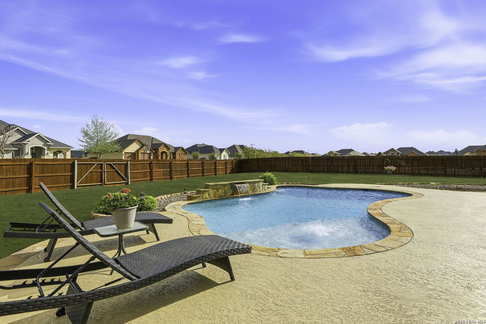 Just in time for summer, this rare gem in the Summit at Cordova offers the ultimate backyard escape with a stunning in-ground pool-an absolute must-have for beating the Texas heat. Hard to come by in this area! This private oasis is perfect for relaxing evenings, weekend pool parties, and making lasting memories with family and friends. Inside, this energy-certified 3-bedroom, 2.5-bath home with 2,383 square feet features a bright, open-concept layout that seamlessly connects the living, kitchen, and dining areas-creating an inviting space for both everyday living and entertaining. A cozy wood-burning fireplace adds warmth and charm to the living area, while a dedicated office/study offers flexibility for working from home. The private primary suite provides a comfortable retreat with a spacious, spa-like bathroom and dual closets. Additional bedrooms are thoughtfully positioned on the opposite side of the home for added privacy. Additional highlights include a desirable half-acre corner lot, an oversized side-entry two-car garage with a convenient storage closet, and an extended driveway for ample parking. A privacy fence with a drive gate adds convenience and seclusion. The refrigerator conveys with the home. Enjoy peaceful living with easy access to shopping, dining, and both San Antonio and Austin airports. This one won't last-schedule your showing today! Make sure to watch the video of this stunning home!