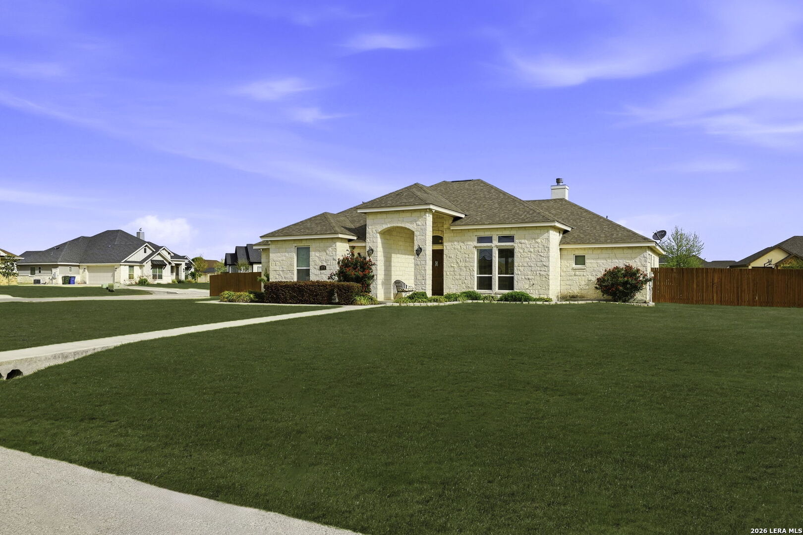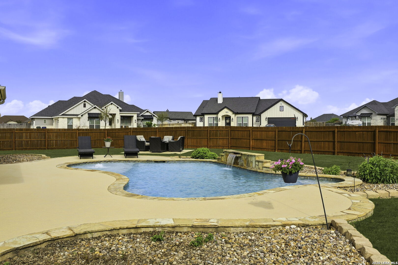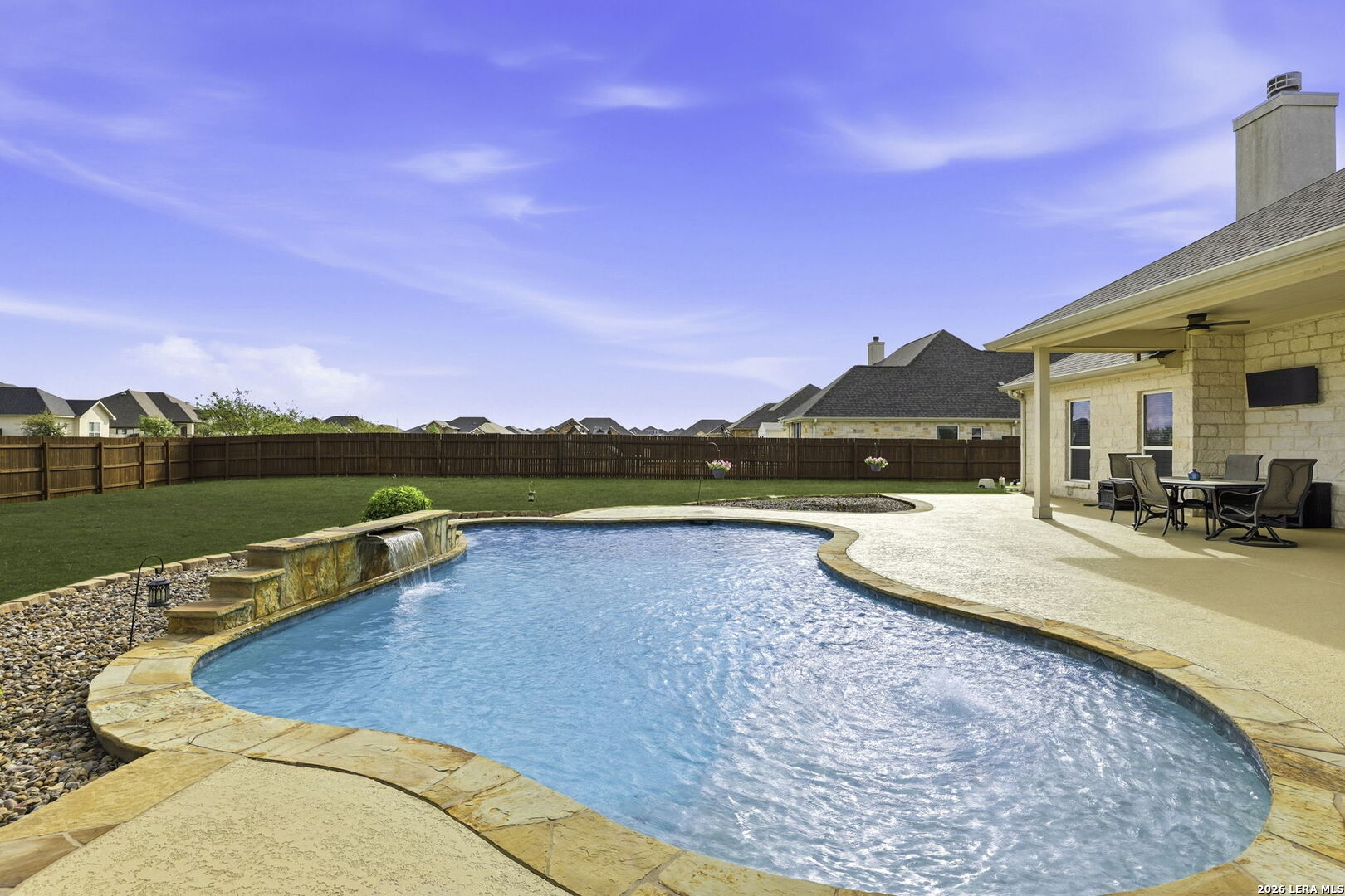 Just in time for summer, this rare gem in the Summit at Cordova offers the ultimate backyard escape with a stunning in-ground pool-an absolute must-have for beating the Texas heat. Hard to come by in this area! This private oasis is perfect for relaxing evenings, weekend pool parties, and making lasting memories with family and friends. Inside, this energy-certified 3-bedroom, 2.5-bath home with 2,383 square feet features a bright, open-concept layout that seamlessly connects the living, kitchen, and dining areas-creating an inviting space for both everyday living and entertaining. A cozy wood-burning fireplace adds warmth and charm to the living area, while a dedicated office/study offers flexibility for working from home. The private primary suite provides a comfortable retreat with a spacious, spa-like bathroom and dual closets. Additional bedrooms are thoughtfully positioned on the opposite side of the home for added privacy. Additional highlights include a desirable half-acre corner lot, an oversized side-entry two-car garage with a convenient storage closet, and an extended driveway for ample parking. A privacy fence with a drive gate adds convenience and seclusion. The refrigerator conveys with the home. Enjoy peaceful living with easy access to shopping, dining, and both San Antonio and Austin airports. This one won't last-schedule your showing today! Make sure to watch the video of this stunning home!