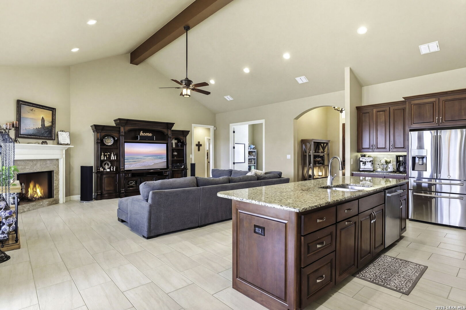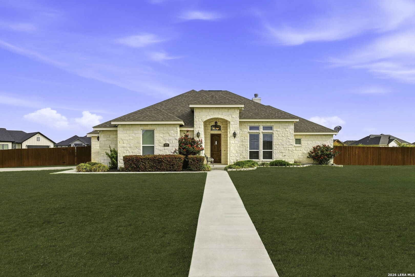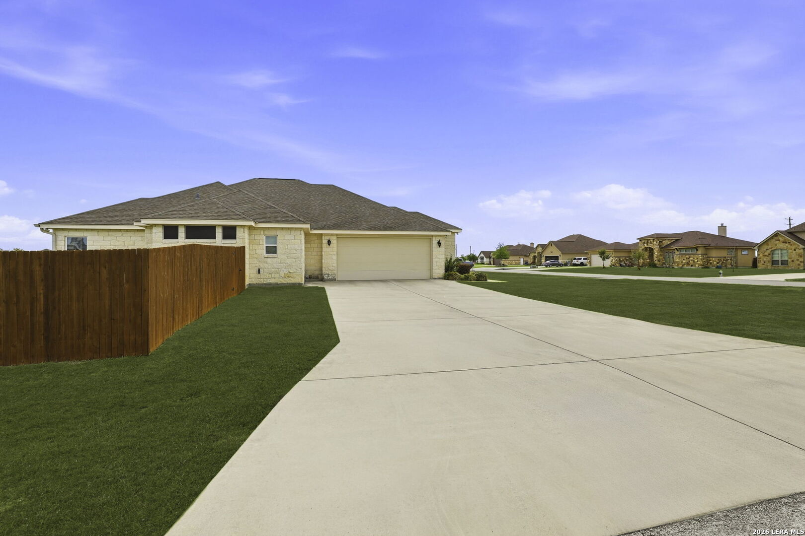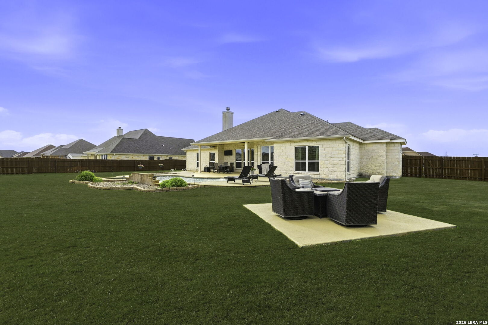 Just in time for summer, this rare gem in the Summit at Cordova offers the ultimate backyard escape with a stunning in-ground pool-an absolute must-have for beating the Texas heat. Hard to come by in this area! This private oasis is perfect for relaxing evenings, weekend pool parties, and making lasting memories with family and friends. Inside, this energy-certified 3-bedroom, 2.5-bath home with 2,383 square feet features a bright, open-concept layout that seamlessly connects the living, kitchen, and dining areas-creating an inviting space for both everyday living and entertaining. A cozy wood-burning fireplace adds warmth and charm to the living area, while a dedicated office/study offers flexibility for working from home. The private primary suite provides a comfortable retreat with a spacious, spa-like bathroom and dual closets. Additional bedrooms are thoughtfully positioned on the opposite side of the home for added privacy. Additional highlights include a desirable half-acre corner lot, an oversized side-entry two-car garage with a convenient storage closet, and an extended driveway for ample parking. A privacy fence with a drive gate adds convenience and seclusion. The refrigerator conveys with the home. Enjoy peaceful living with easy access to shopping, dining, and both San Antonio and Austin airports. This one won't last-schedule your showing today! Make sure to watch the video of this stunning home!