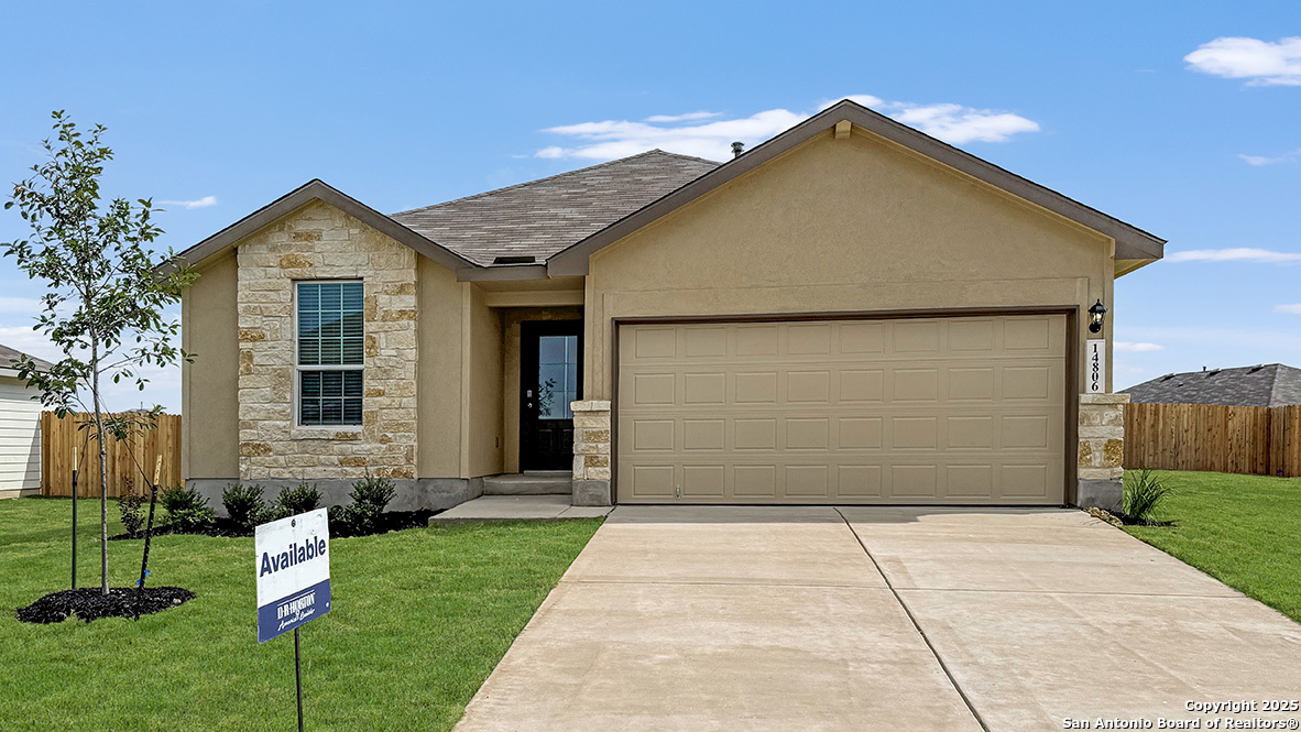 Step into The Brown floor plan at Redbird Ranch in San Antonio, TX, a single-story home featuring 3 bedrooms and 2 bathrooms. The Brown also offers 3 classic front exteriors, a 2-car garage and 1651 square feet of comfortable living. The Brown features classic design and modern features that blend seamlessly to create the perfect everyday space. A welcoming foyer leads to a formal dining room with large windows and a connecting doorway to the galley kitchen. The kitchen includes plenty of cabinet storage, quartz counter tops, subway tile backsplash, stainless steel appliances, and a gas cooking range. A large kitchen island with a deep, single basin sink overlooks the spacious living room. The large first bedroom suite is located off the family room and features a double vanity sink, separate tub and walk-in shower and a private water closet. You'll have all the space you need to get ready in the morning with a large walk-in closet. Spacious secondary bedrooms with large closets and quality carpet flooring, a second full bathroom with plenty of natural light, and a utility room are conveniently located off the living room. Head out the back door and relax on your rear covered patio (per plan) and enjoy full yard landscaping and irrigation. Additional features of The Brown include tall 9-foot ceilings, 2-inch faux wood blinds throughout the home, luxury vinyl plank flooring in the entry, family room, kitchen, and dining area, ceramic tile in the bathrooms and utility room, and pre-plumb for water softener loop. You'll enjoy added security in your new home with our Home is Connected features. Using one central hub that talks to all the devices in your home, you can control the lights, thermostat and locks, all from your cellular device.