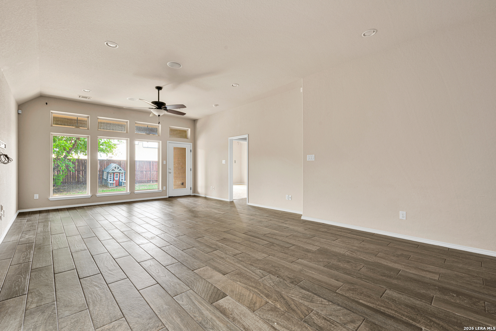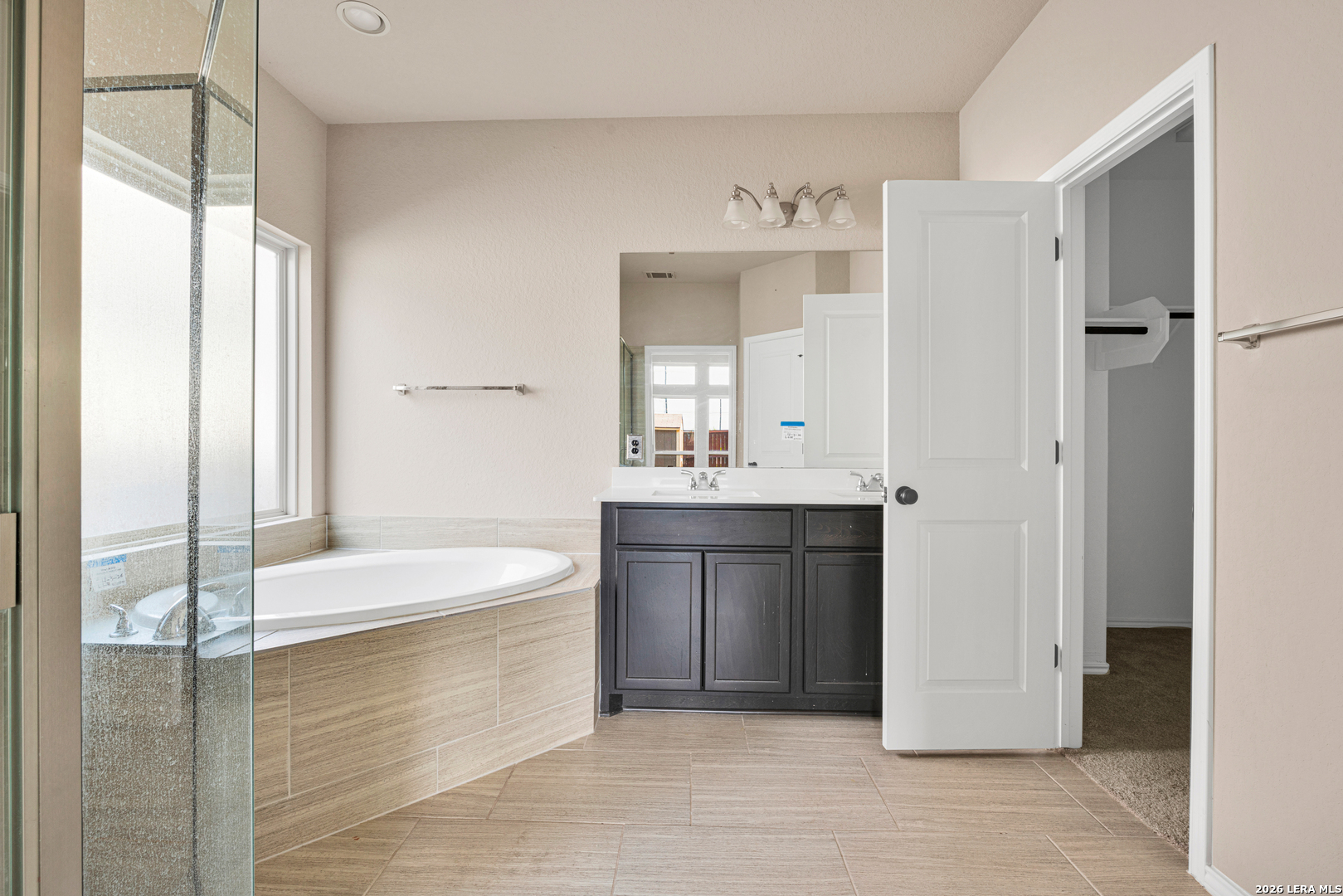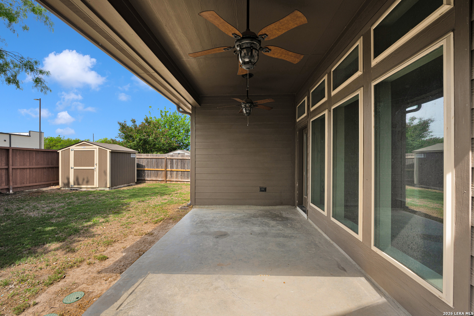 Step into this beautifully designed home featuring a welcoming library with elegant French doors at the entry-perfect for a home office or quiet retreat. The spacious kitchen offers a center island, walk-in pantry, and seamless flow into the open family room, highlighted by a wall of windows that fills the space with natural light and showcases the ceramic tile flooring. The private primary suite also features a wall of windows, creating a bright and airy atmosphere. The en-suite bath includes a relaxing corner garden tub, separate glass-enclosed shower, and a generous walk-in closet. Additional highlights include a convenient mud room, extended covered backyard patio ideal for outdoor living, and a two-car garage. This home blends comfort, style, and functionality-ready to impress!