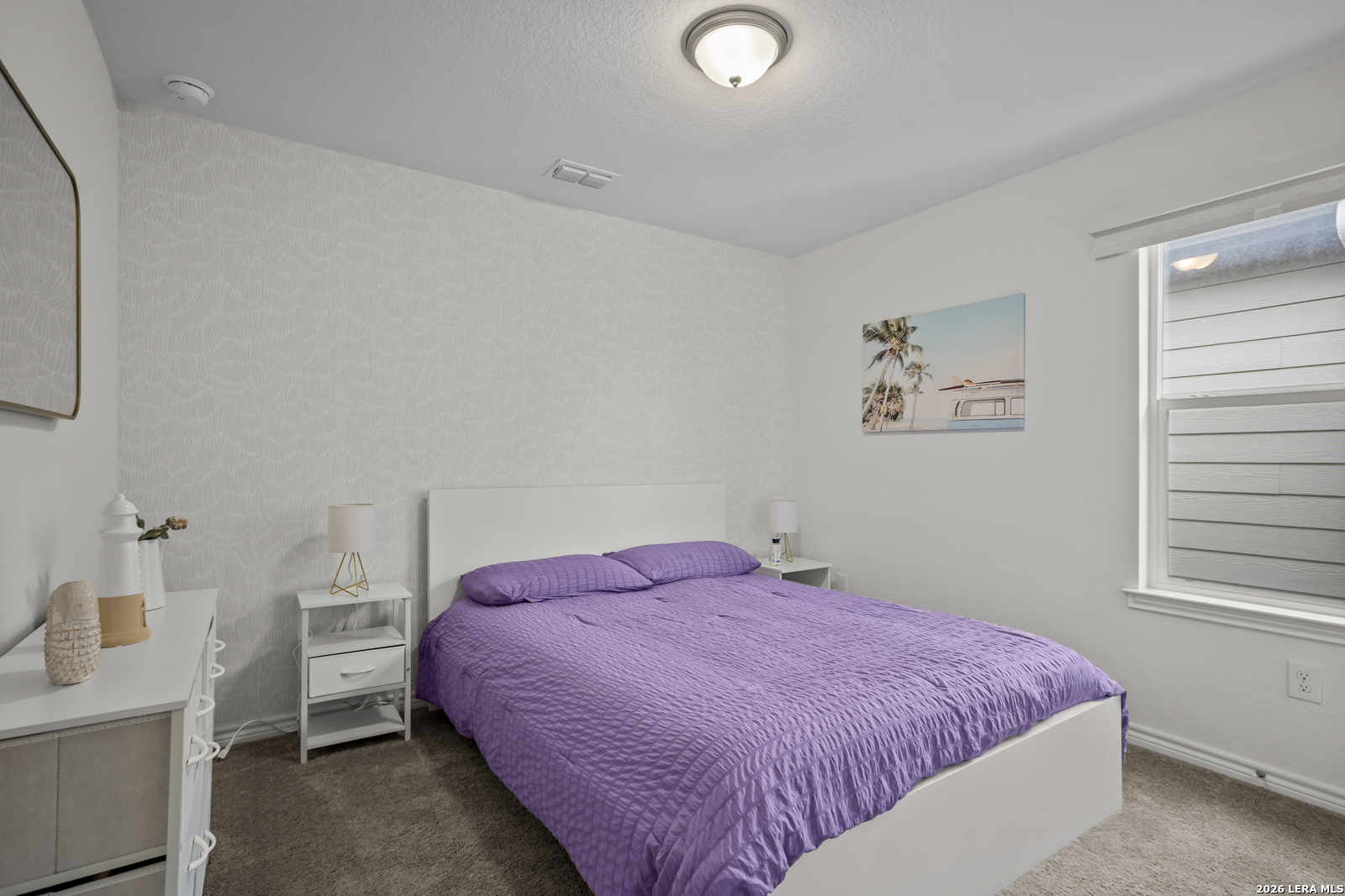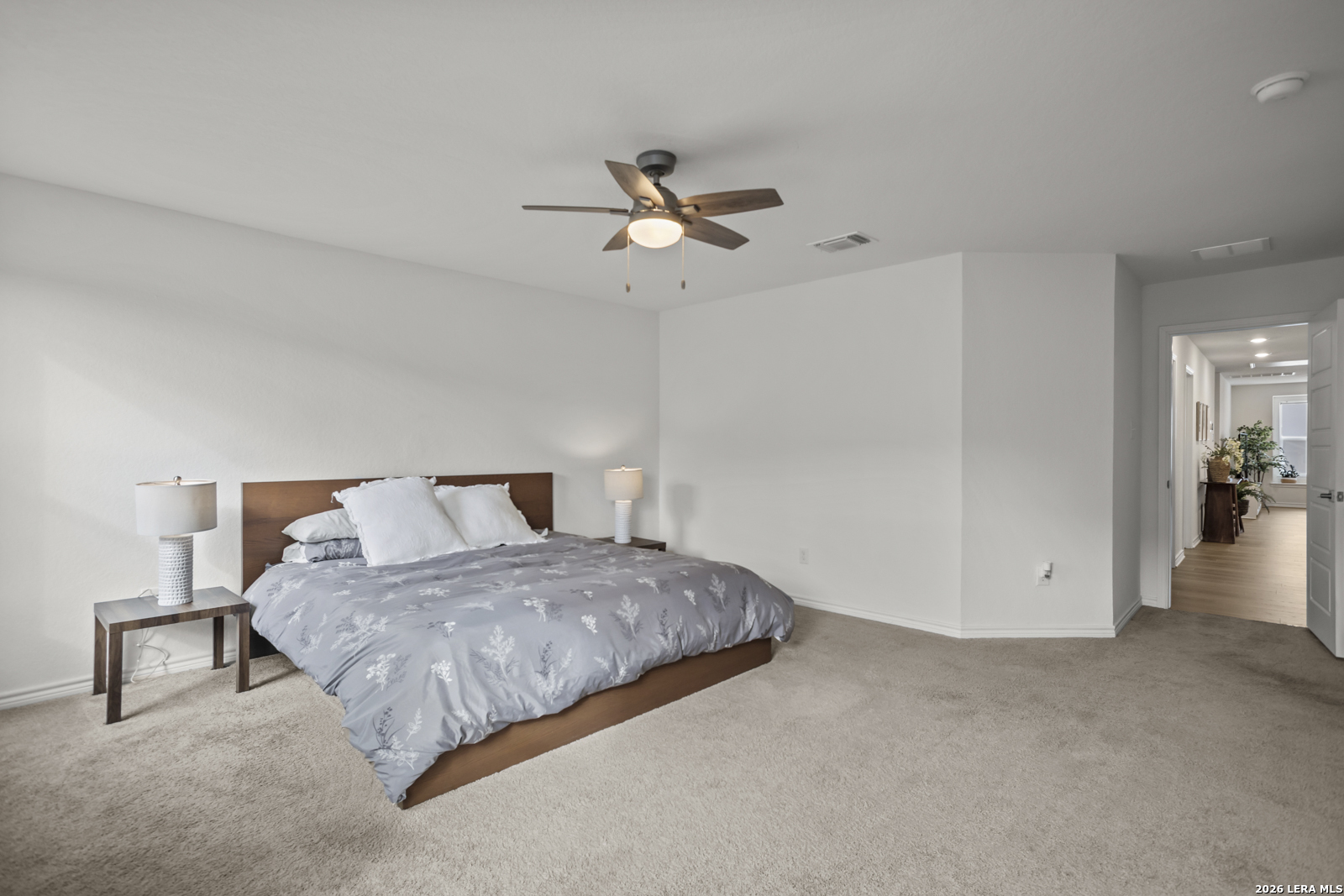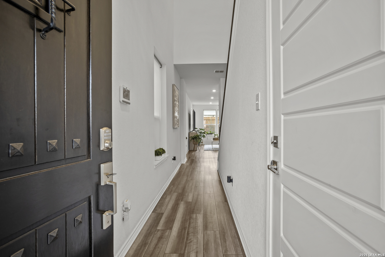 This stunning 5-bedroom, 3-bath home offers an inviting open floor plan designed for both comfort and entertaining, blending style and functionality throughout. The spacious living room flows seamlessly into the kitchen, creating a bright, open main living area perfect for gathering. The chef-inspired kitchen features Woodmont Dakota Shaker-style 42-inch upper cabinets, a sleek Daltile tile backsplash, Silestone countertops for durability and beauty, a large island, an extended breakfast bar, and stainless steel appliances. Upstairs, a versatile loft provides additional living space ideal for a game room, office, or media area. The oversized primary suite offers a relaxing retreat with a full ensuite bath that includes a double vanity and a walk-in shower. The home also includes a wireless security system and an automatic sprinkler system covering the front and side yards. Outside, enjoy a beautifully designed backyard with low-maintenance turf, perfect for year-round enjoyment. The impressive two-story stone exterior adds timeless curb appeal and completes this exceptional home.