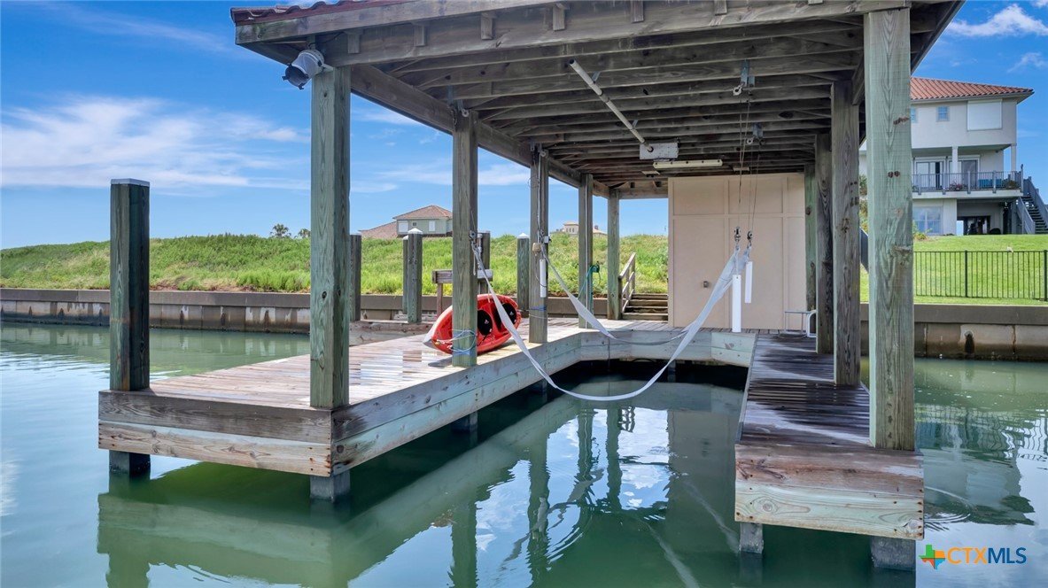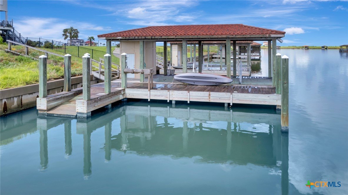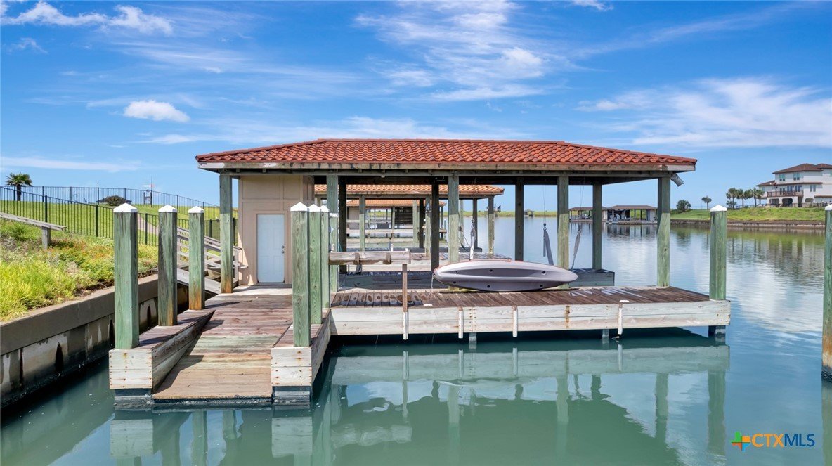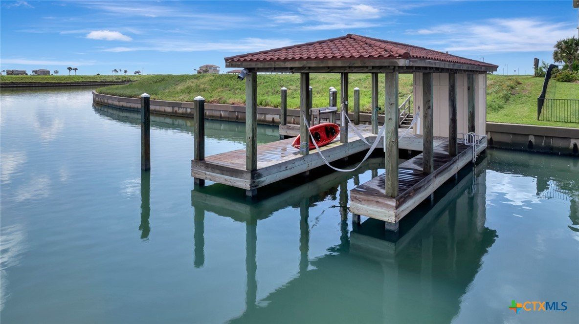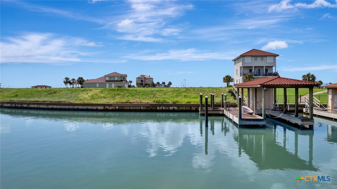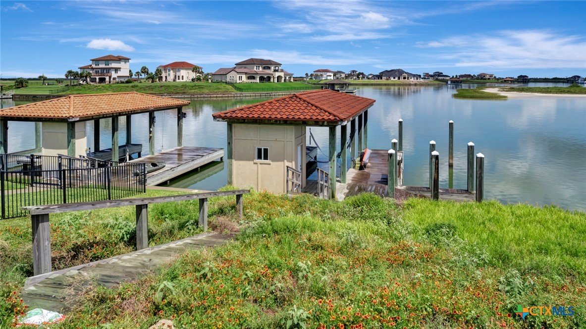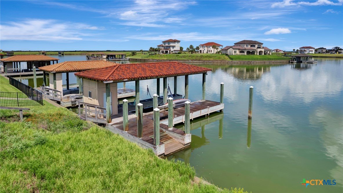 Don't miss this incredible opportunity to invest in a residential lot located in a gated and amenity-filled community with easy access to the waterway. This stunning property boasts a beautiful view of a small island teeming with birds and hermit crabs, providing a serene and picturesque backdrop to your daily life. Enjoy the delightful experience of watching dolphins come close to the dock every day, creating unforgettable moments right from your own backyard. The Sanctuary at Costa Grande offers access to a marina, clubhouse, swimming pool, tennis courts, and fishing piers. With a variety of activities to enjoy right at your doorstep, living on the Texas Gulf Coast doesn't get any better. Enjoy close proximity to both inshore and offshore fishing as well as birding. This property features a boat house with storage that has already been constructed. The fish cleaning table is ready for your daily catch, while the dock is equipped with a fresh waterline and electricity, ensuring all your boating needs are met. The boat lift is prepared to accommodate your boat, with an additional open space perfect for docking a yacht. Building your dream home in such a location would be a fantastic decision! Have you started considering the possibilities for your future home on this beautiful lot?