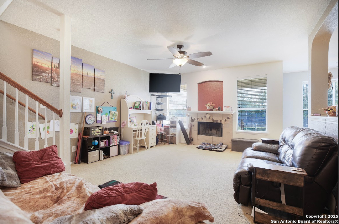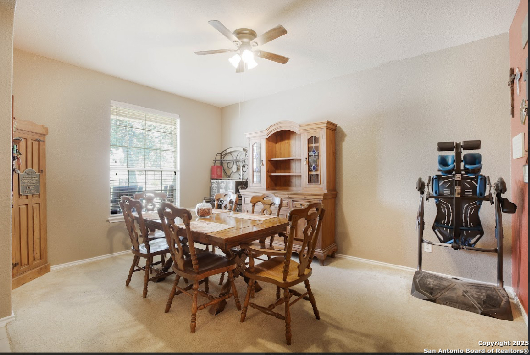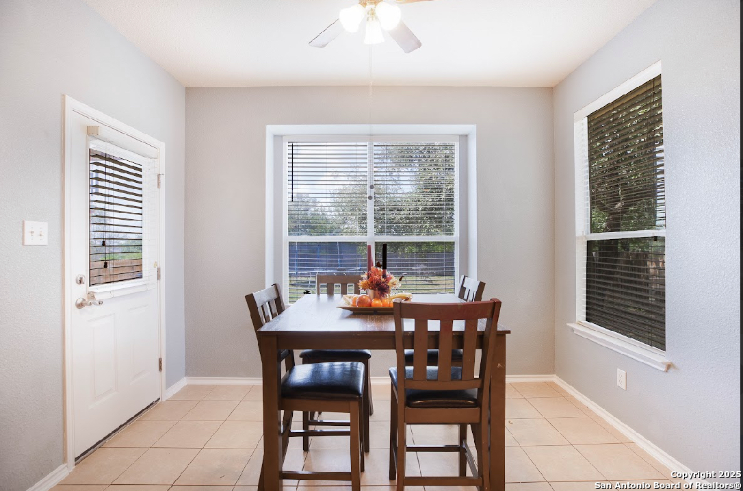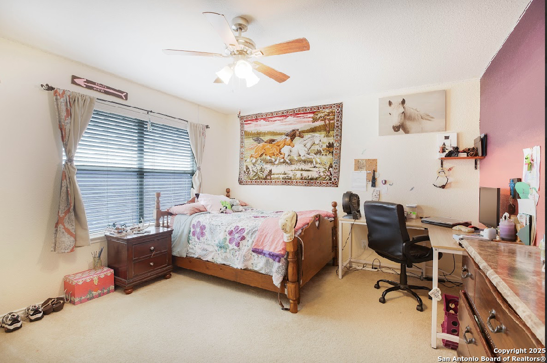 Beautiful, freshly painted 2-story 2,347 SqFt, 4 bedroom, 2.5 bath home situated on a .2 acre lot, nestled in a cul-de-sac on the far west side of San Antonio, offering a peaceful, suburban setting with easy access to a plethora of amenities! From the generous foyer and separate dining room, to the living room with a cozy fireplace and eat-in kitchen, highlight the well thought-out functionality of this home making it easy to entertain downstairs, while offering the privacy of all bedrooms and game room upstairs! Savor your favorite beverage on the front porch or your covered back patio, overlooking the large backyard (new fence on both sides; HOA to replace backside)! Superbly efficient home includes: solar panels and water softener (both owned); newer roof (2 yrs old); dishwasher and water heater (both 1 yr old); ice cold HVAC (7 yrs old), keeping utilities at bay, including a Wi-Fi engaged stove/oven (1-yr old) and garage door opener...and yes, the 55" flat screen in the living room, all ceiling fans and trampoline convey! Conveniently located in the highly-regarded Redbird Ranch Subdivision, known for its strong community involvement and peaceful environment. This community hosts year round events, such as seasonal festivals, holiday gatherings, and neighborhood markets, encouraging resident engagement, creating a welcoming atmosphere. Relish in the impressive lineup of amenities, including 2 large community pools, splash pad , clubhouse, fitness center, tennis courts, and walking trails; multiple parks and playgrounds scattered throughout the neighborhood, with tree-lined streets and thoughtfully planned green spaces add to its charm and appeal. The close knit community, highly regarded schools and close proximity to Lackland Air Force Base offer a lifestyle that's both comfortable and connected to everything San Antonio has to offer! Book your showing today! ***ASSUMABLE VA LOAN @2.375%!***