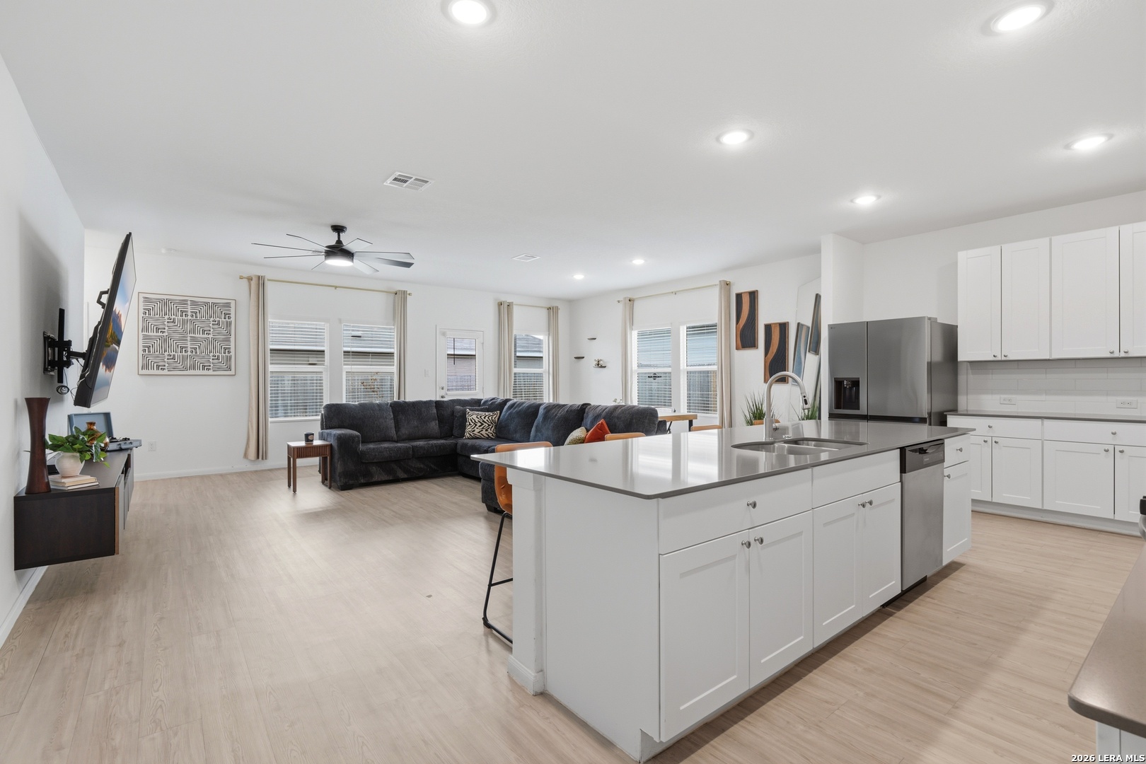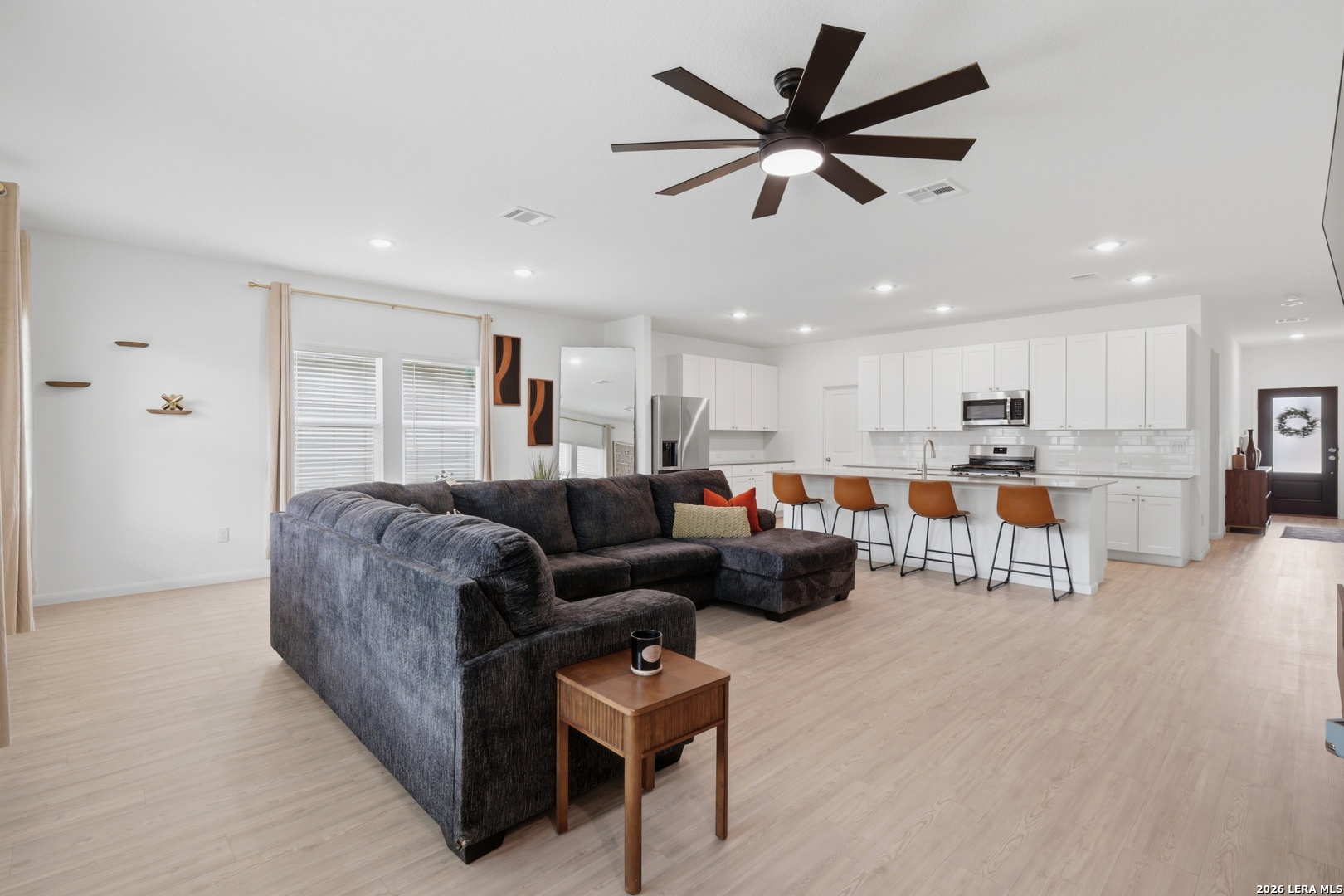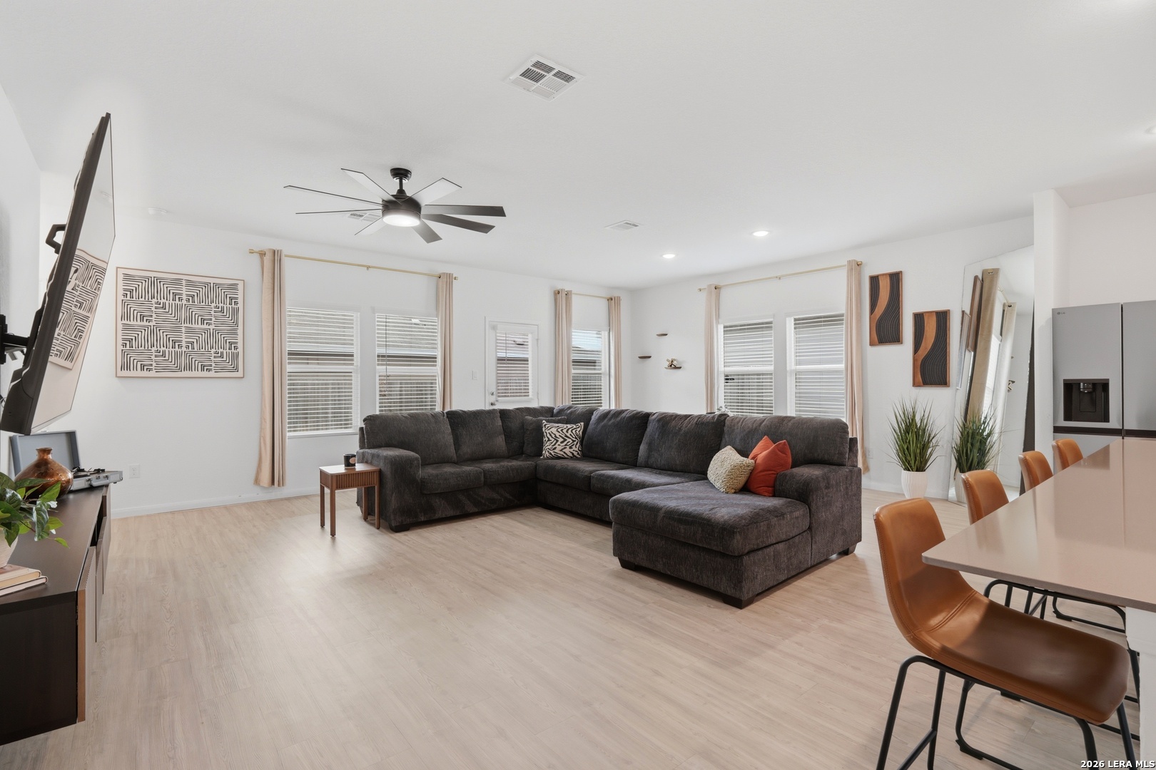 Welcome to this beautiful 3-bedroom, 2-bath home situated on a spacious corner lot in one of San Antonio's rapidly expanding and highly sought-after areas. This home offers an open-concept layout with HIGH ceilings, creating a bright and inviting space perfect for both everyday living and entertaining. Enjoy the convenience of being within walking distance to the brand-new community amenity center, opening this summer, and just down the street from the new East Central ISD high school. Plus, you're only 15 minutes from Downtown San Antonio, making commuting, dining, and entertainment easily accessible. The home comes move-in ready with washer, dryer, and refrigerator included. Furniture and TVs are negotiable, offering added flexibility for tenants.
