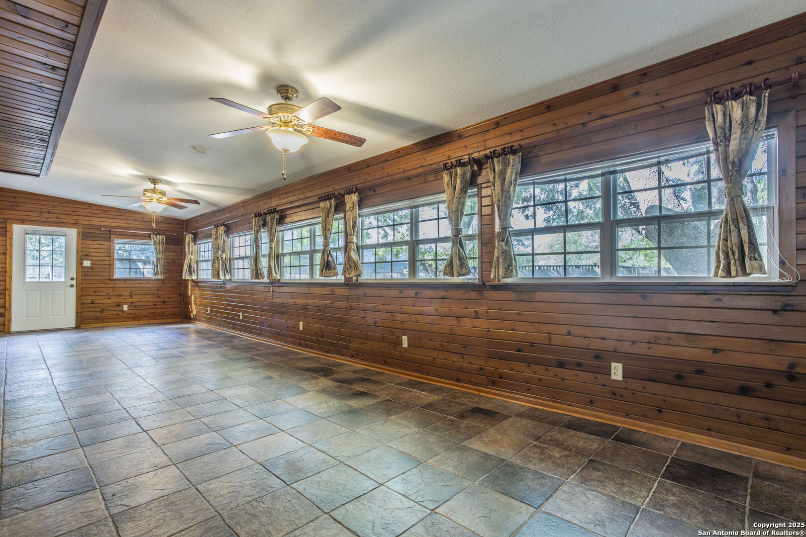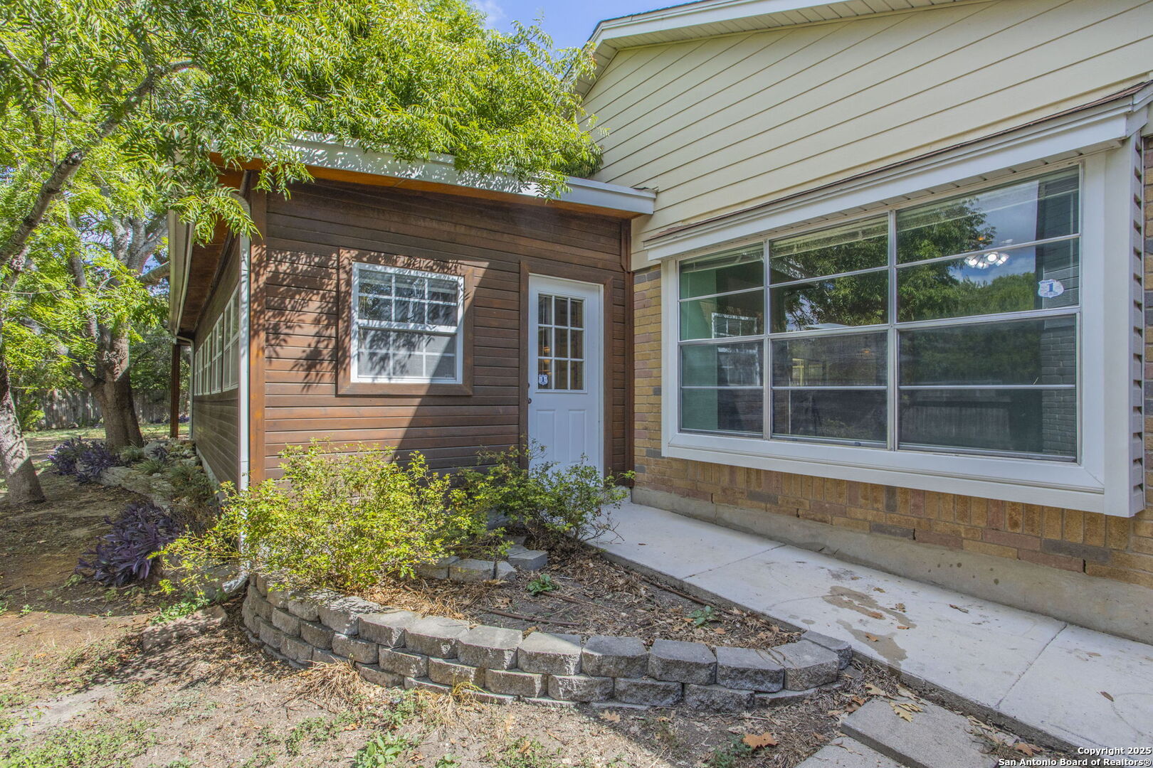 Perfect for entertaining and large gatherings inside and outdoors! Looking for a home that's spacious and has room to accommodate your family and friends for special occasions? Look no more. Check out the floor plan to see the scale of the grand, wood-paneled and wood-sided enclosed porch with access to the backyard at two points and two point of entry to the home. A second porch, also protected from the elements, is just off the dining room and leads to a covered outdoor area. Large windows provide abundant natural light and an open feeling throughout the home. There's plenty of storage in each area. This comfortable, secluded neighborhood with a strong sense of community is filled with beautiful tall, mature trees that provide shade and character is a desirable place to make your home. Enjoy a location convenient to Julian Yates Semmes Branch Library, a modern and architecturally appealing spot to spend a few hours for both young and old; Comanche Lookout Park, a lovely green space with extensive trails; H-E-B locations; Walmart; IKEA; and the Forum shopping center.