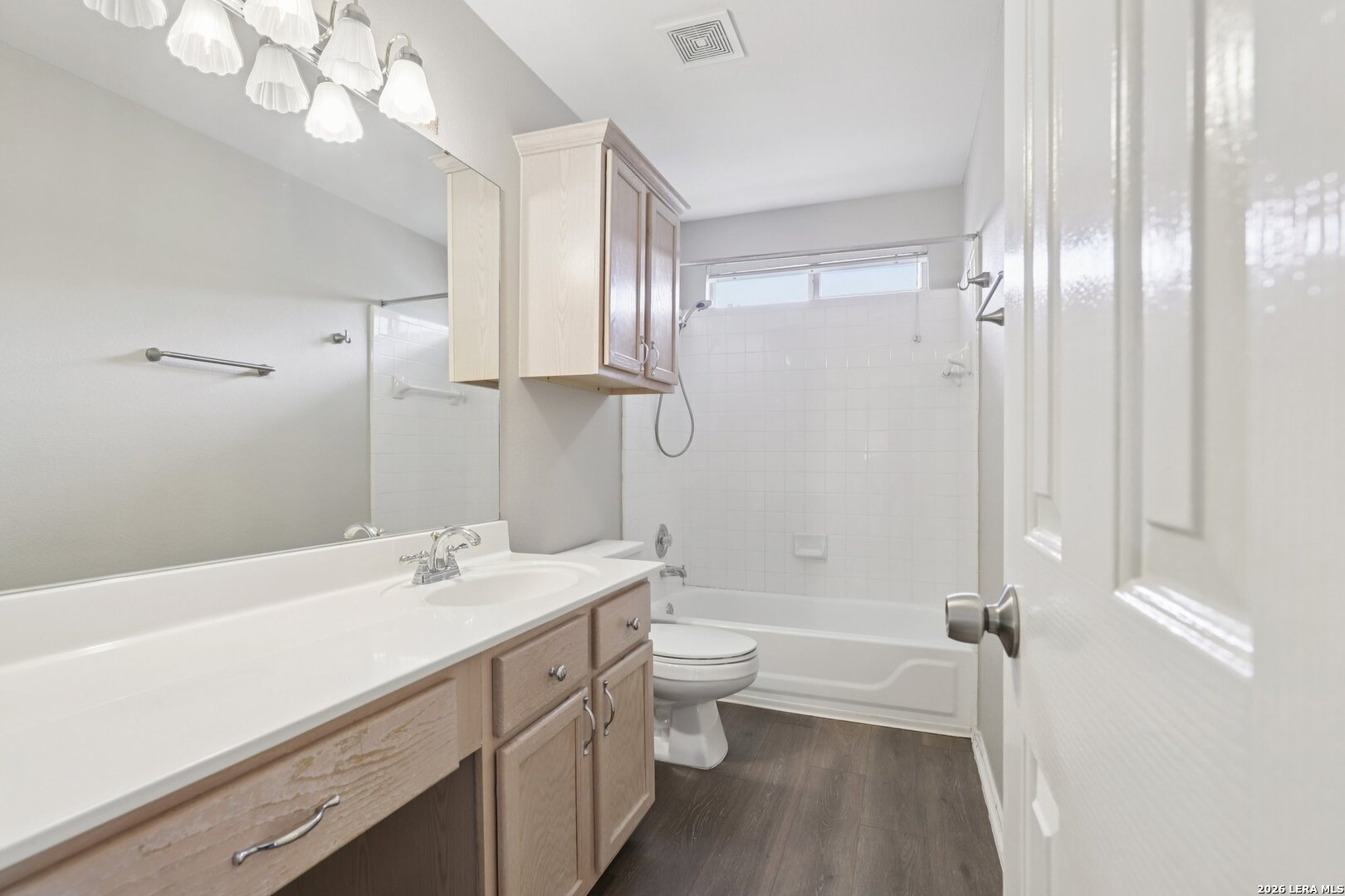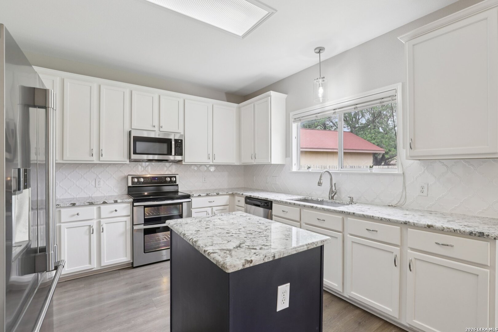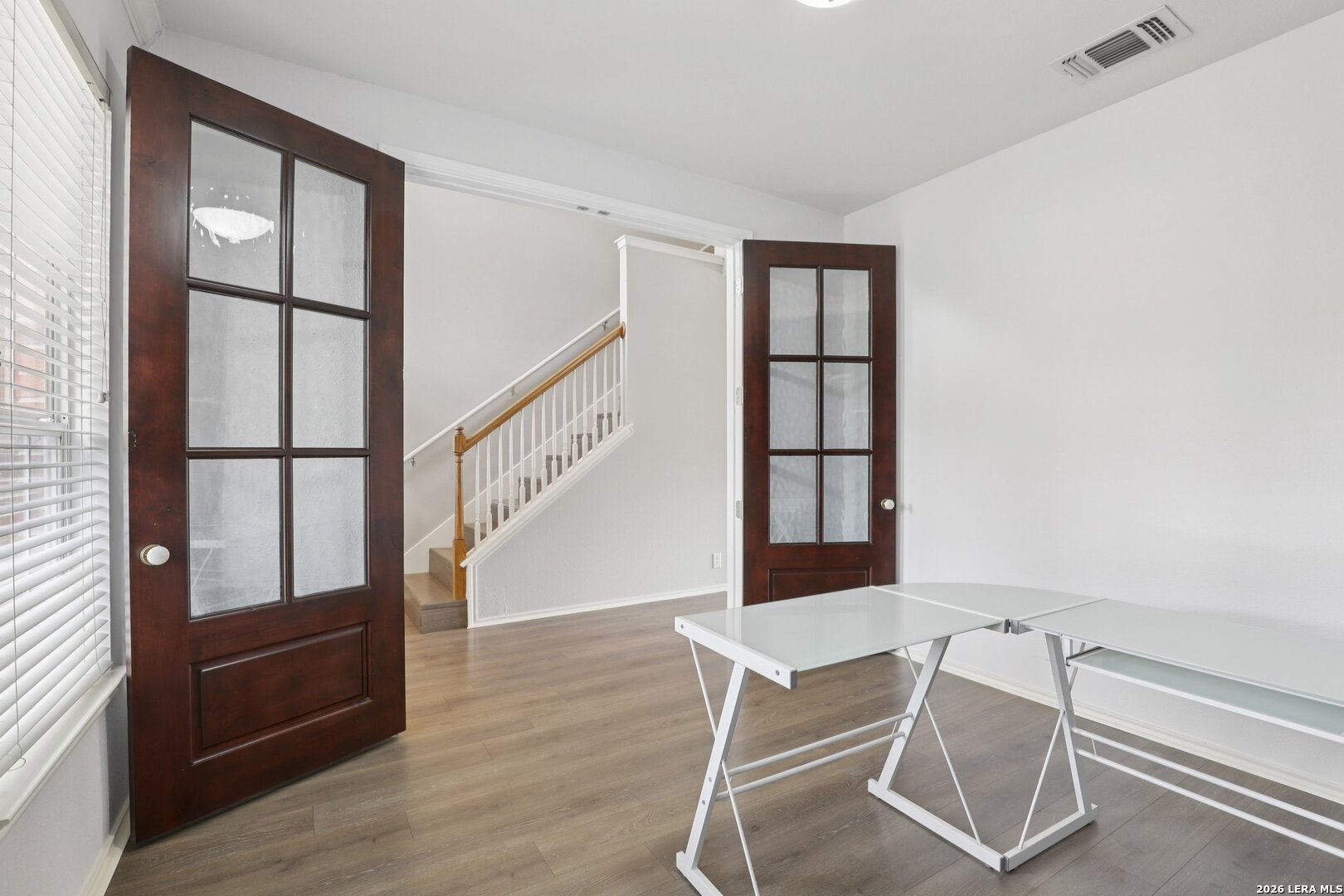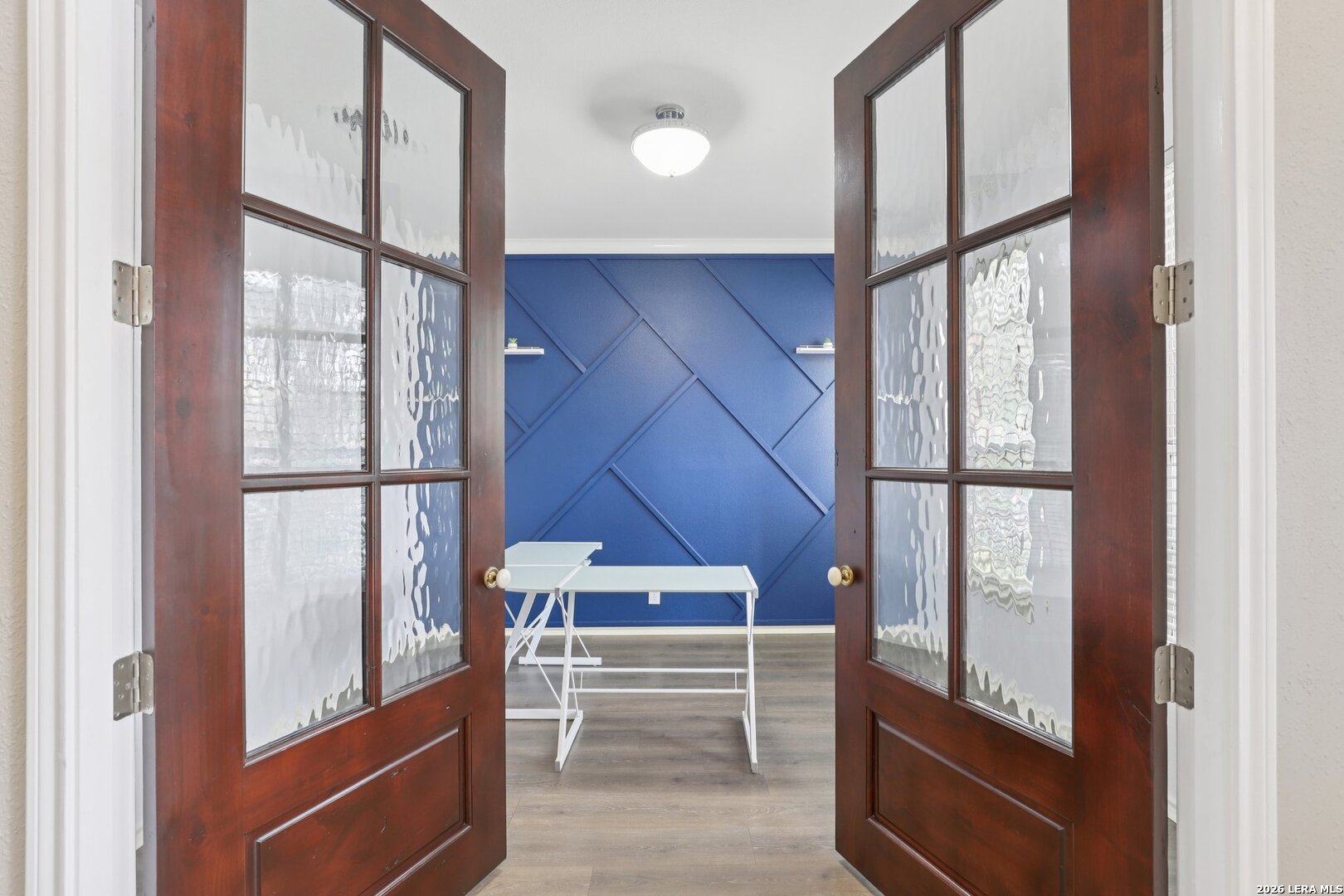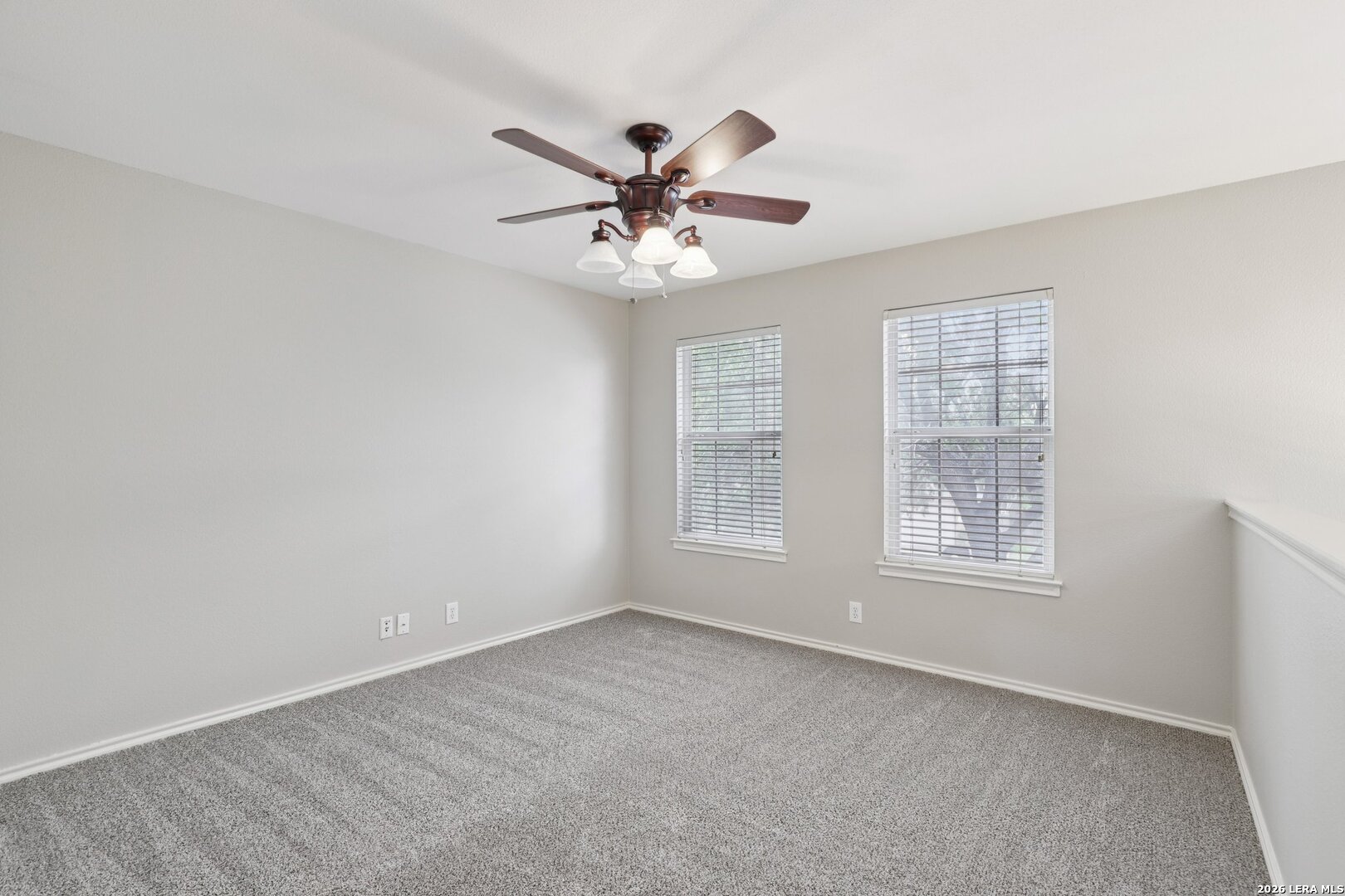 Move-in ready and well maintained, this 3-bedroom, 2.5-bath home with a dedicated office in the highly desirable Preston Hollow subdivision offers a functional layout, strong location, and tasteful updates in North East San Antonio. Ideally located just minutes from Loop 1604, US-281, and I-35, you'll enjoy quick access to major employers, shopping, dining, and everyday conveniences, all while being tucked into a quiet neighborhood setting within walking distance to McAllister Park and Mud Creek Park. Inside, the open-concept floor plan features durable luxury vinyl plank (LVP) flooring throughout the main living areas, decorative tile in the laundry room and half bath, and brand-new carpet upstairs for a fresh, move-in ready feel. A standout feature is the private office, thoughtfully upgraded with custom exterior-style doors featuring waterfall glass and a stylish decorative accent wall, creating a bright yet private workspace that truly stands out. The spacious island kitchen is designed for both daily living and entertaining, enhanced with granite countertops, 42-inch cabinets, stainless steel appliances, a double oven, and ample counter and storage space, all flowing seamlessly into the living and dining areas. Upstairs, you'll find a versatile game room along with a generously sized primary suite featuring dual oversized closets, a double vanity, garden tub, and separate shower-creating a comfortable and private retreat. Secondary bedrooms are well-sized and share a full bath with matching LVP flooring. Positioned on a premium corner lot with a cul-de-sac behind, the outdoor space offers added privacy and functionality, complete with a covered patio, newly installed privacy fence, and a Tuff Shed for extra storage. Mature oak trees provide shade in the front yard, while crape myrtles line the fence, enhancing the home's curb appeal. This is a great opportunity to own a well-located home with access to some of North East San Antonio's best parks, trails, and outdoor amenities.