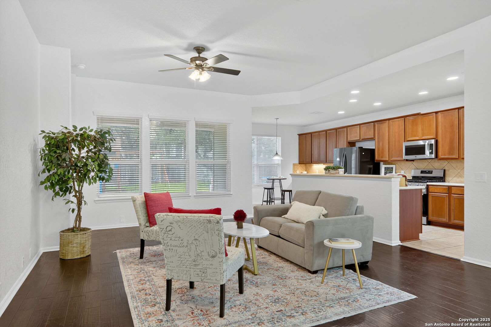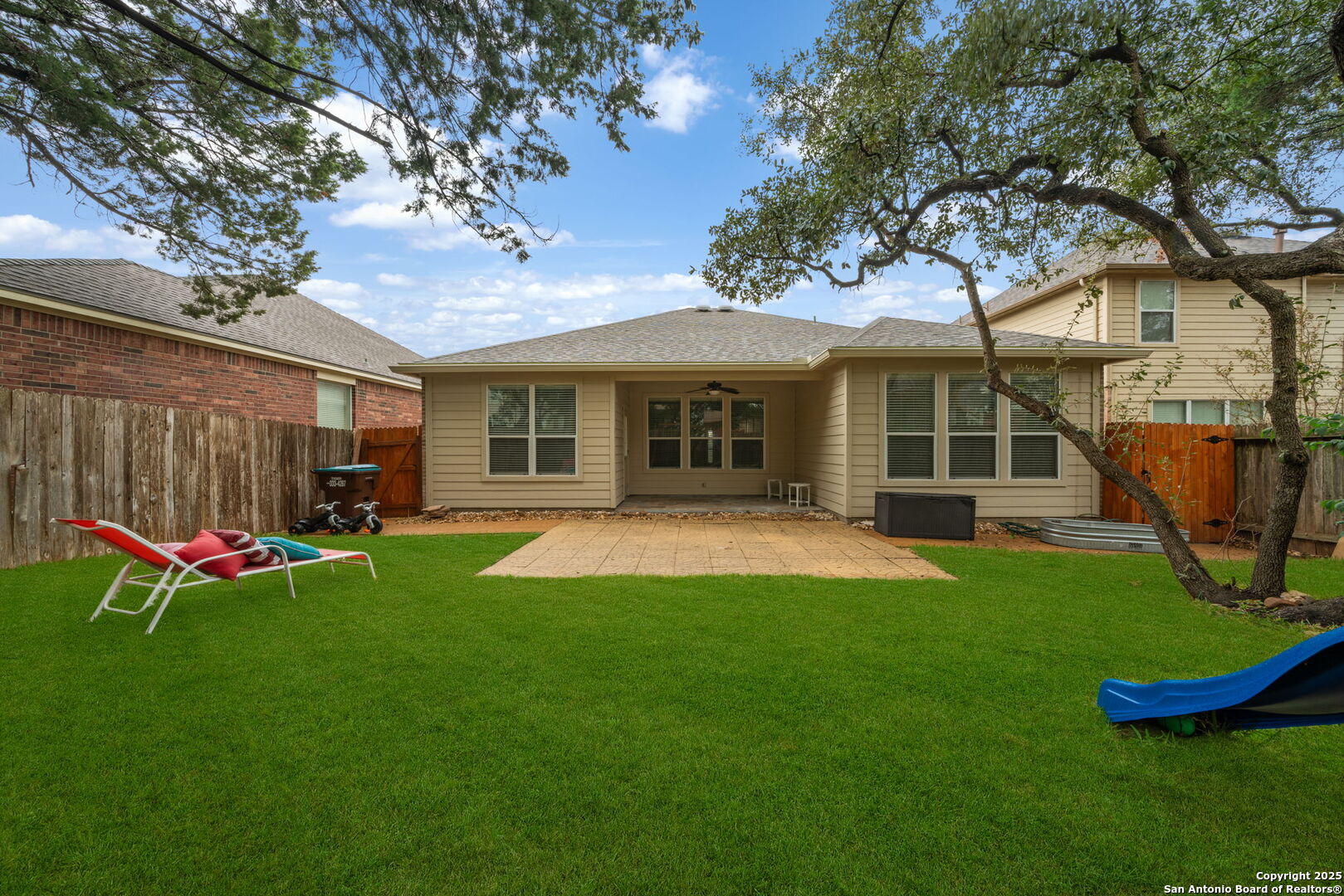 Welcome to this exceptional 3-bedroom, 2-bath single story home spanning 1,899 sq. ft., ideally situated within the highly sought-after, gated community of Lakeside at Canyon Springs. This freshly painted home offers an open floor plan with tall ceilings throughout. The kitchen is a chef's delight, featuring gas cooking, an abundance of cabinets, solid countertops, and a breakfast bar. Adjacent is a separate study, perfect for a home office or quiet retreat. The primary suite is a true sanctuary with elegant wood floors, tall ceilings, and a spa-like primary bath. Step outside to a privately fenced backyard and enjoy the serene 14 x 10 covered back patio.Key upgrades ensure peace of mind and comfort: A newly installed roof and gutters (November 2025), a whole-home 24KW generator, durable epoxy garage floors & water softener. The community amenities enhance the living experience with gated access, a sparkling pool, a park, and a playground. Located within the award-winning Comal ISD, the home is just a short drive from acclaimed schools, including the newly opened Bulverde Middle School and Pieper High School. This home is ready to impress!