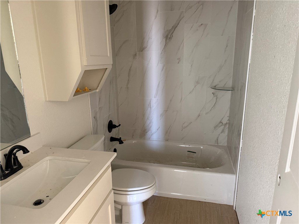 Welcome home to this beautiful 4-bedroom, 2-bath new construction in the heart of Temple, Texas. Thoughtfully designed with custom cabinetry, stainless steel appliances, and a spacious kitchen offering ample counter and cabinet space, perfect for everyday living and entertaining alike. Wood tile flooring flows throughout, complemented by tile in all wet areas for both style and durability. The oversized primary suite is a true retreat, featuring double vanities, a huge walk-in shower, and generous closet space. Three additional bedrooms are well-sized, offering flexibility for family, guests, or a home office. Conveniently located near Baylor Scott & White, shopping, dining, and major roadways, this home blends modern finishes, functionality, and prime location—everything you’re looking for in a new home.