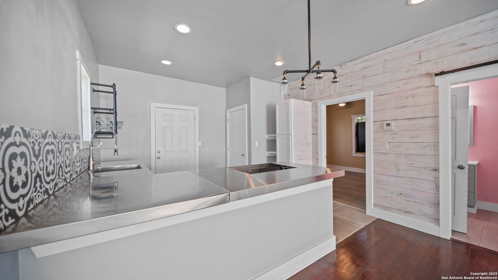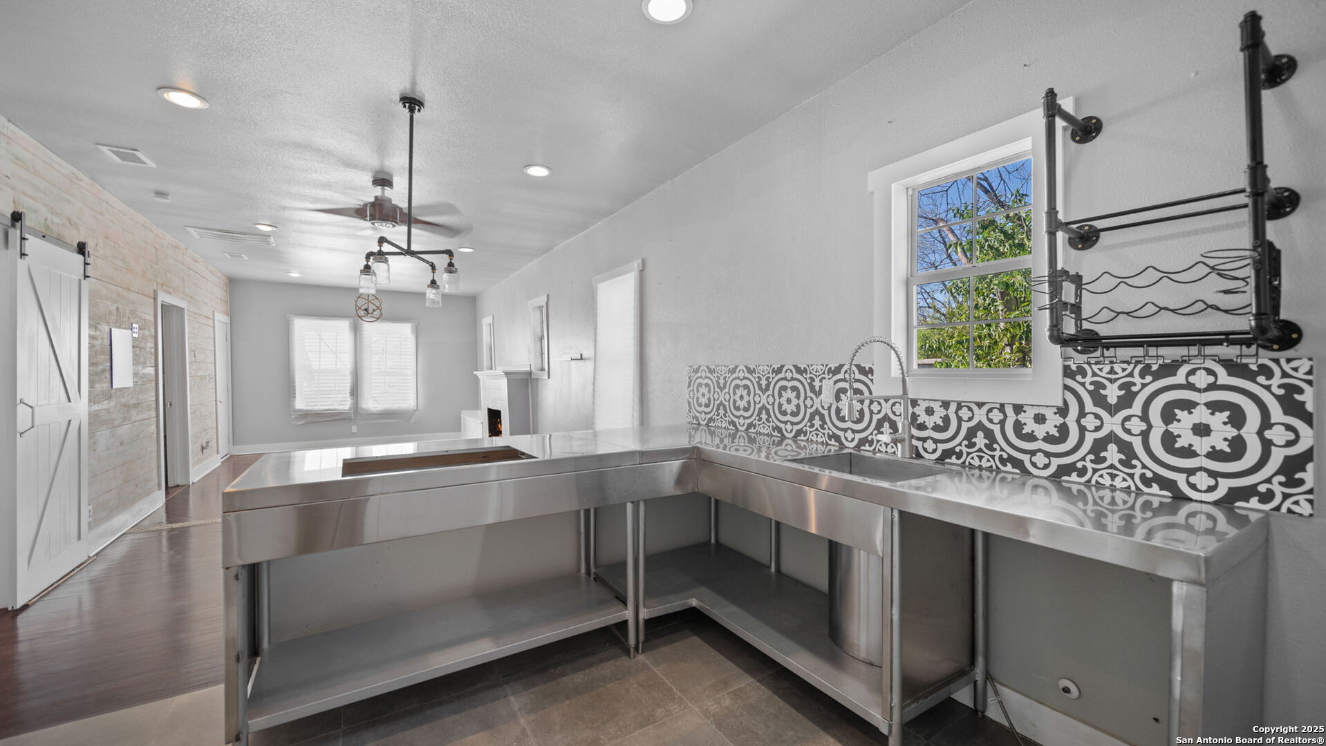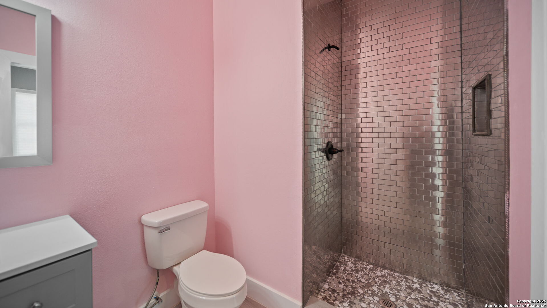 Perfectly positioned minutes from downtown, Fort Sam Houston, the AT&T Center, and the Alamodome, this fully renovated two-bed, two-bath home offers an excellent opportunity for a high-performing short-term rental in one of San Antonio's fastest-growing urban corridors. Sitting on an oversized corner lot with an additional half-lot included, the property provides a rare combination of privacy, space, and future expansion potential-ideal for maximizing rental income. The interior features an open floor plan with modern finishes, refinished 1940s hardwood floors, recessed lighting, and a bright, welcoming layout that photographs beautifully. Two private en-suite bedrooms give guests the comfort and flexibility STR travelers prefer, each with updated tilework and stylish bathroom designs. The industrial-style kitchen with stainless steel counters, custom cabinetry, and open flow is both durable and eye-catching, perfect for hosting guests and for long-term maintenance ease. Additional upgrades include new electrical, plumbing, HVAC, windows, doors, flooring, and a rebuilt front porch and rear porch. Outside, the property offers exceptional privacy thanks to an 8-ft cinder-block and wood perimeter fence, along with a custom iron-and-wood gate that allows secure parking for 1-2 vehicles. The huge backyard and separate utilities on the extra lot create clear potential for adding a casita, garage apartment, or studio, significantly increasing revenue possibilities.
